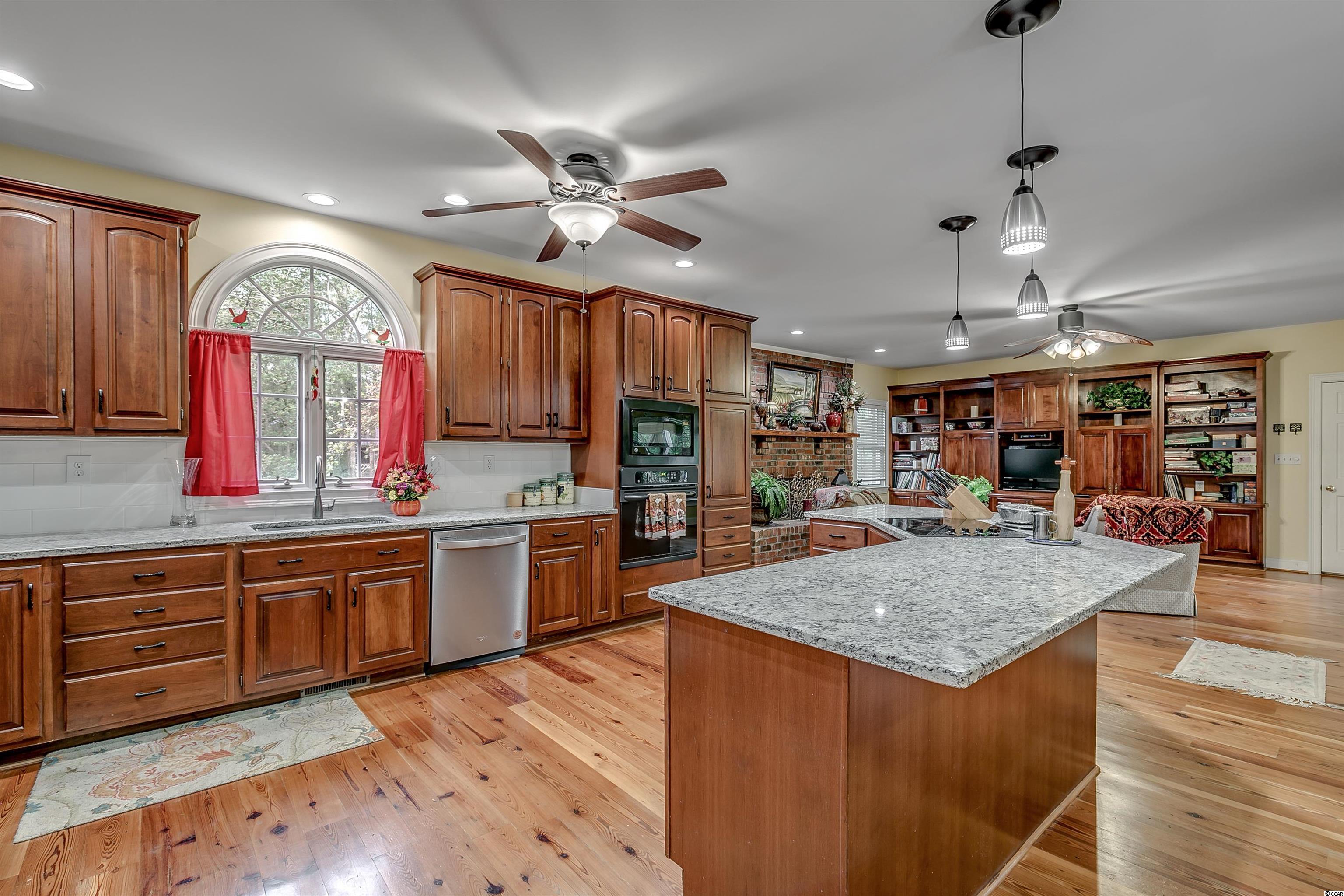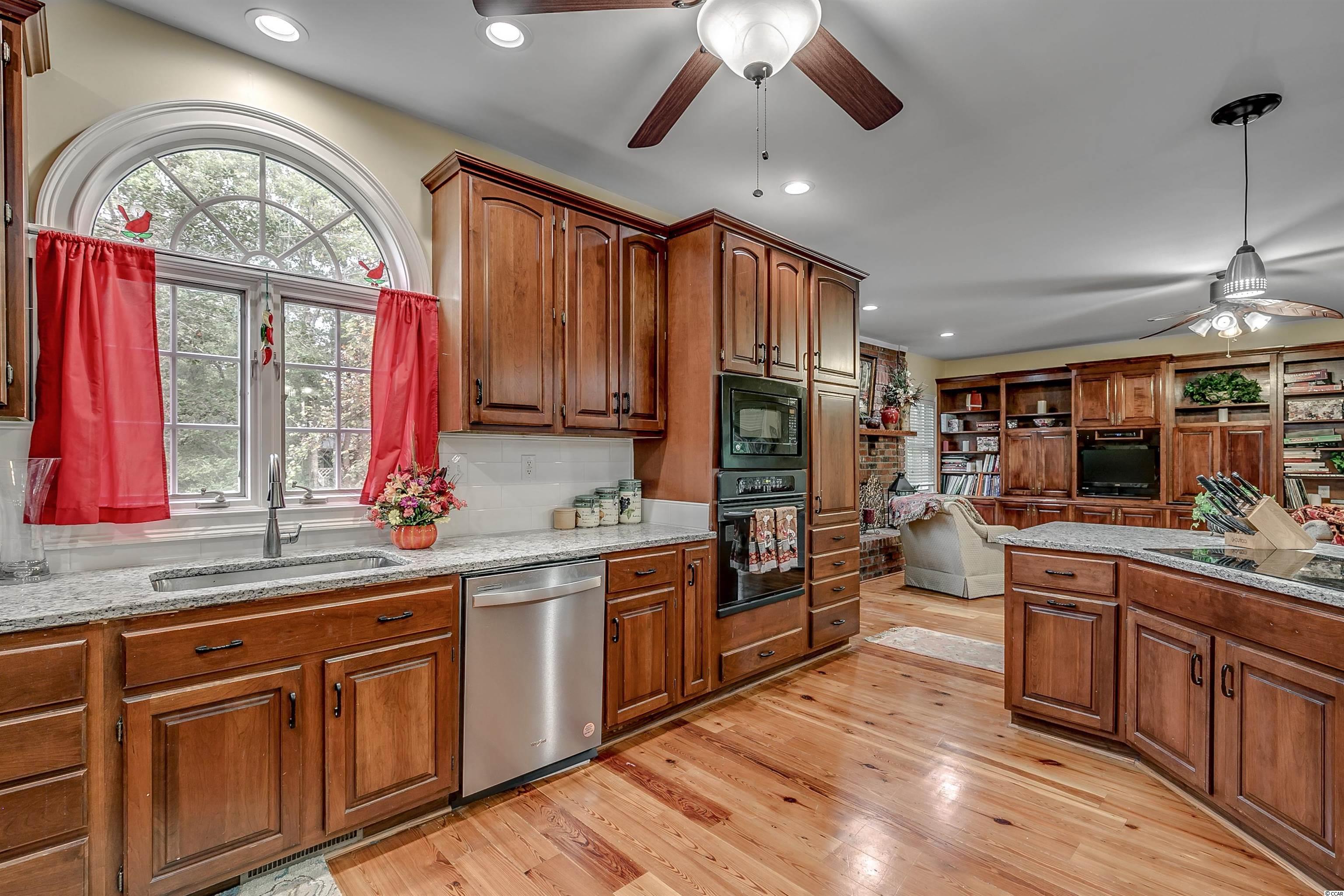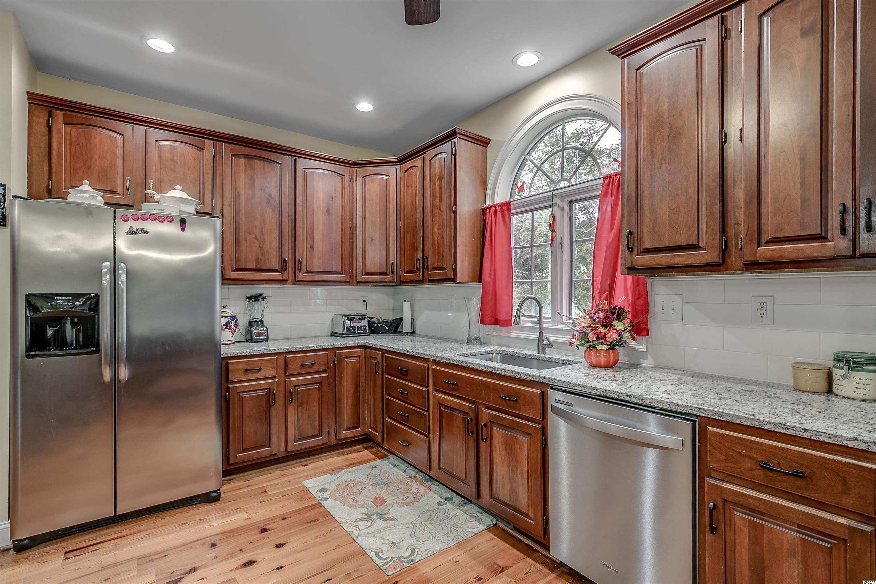 Stately 5 bedroom, 4 1/2 bath, brick home located in sought after, gated community, Wachesaw Plantation. Such a beautiful intra-coastal community overlooking the Wachesaw River with Live Oaks throughout. Over 4400 heated square feet that includes a large kitchen with granite counter tops and tile backsplash (2021), extensive cabinetry, work island, breakfast bar, pantry, and an eat-in kitchen area. Great room off of kitchen with built-in cabinets and a gas fireplace. Formal living room and formal dining room both off of kitchen and perfect for hosting family and friends. Large laundry room with sink, cabinets, and extra storage space. Access to the covered back porch (8x33) from the master bedroom and living room, overlooking the large fenced in back yard. Large upstairs bonus room with vaulted ceilings, ceiling fan with light, and additional storage in multiple eaves. 2 bedrooms upstairs with their own full bathrooms and additional rooms off of each bedroom. Plenty of parking with a circular driveway in the front of the house and a two car side loading garage. Crawlspace was incapsulated in 2021 as well. Wachesaw Plantation Club has a private 18 hole championship golf course, swimming pool, and tennis courts that you would have the option of becoming a member. Neighborhood is just minutes from Wache Wache Marina if you are looking for a spot to launch your boat. Also close to area beaches, other championship golf course, shopping, and plenty of dining and night life at the infamous Marsh Walk on water front Murrells Inlet.