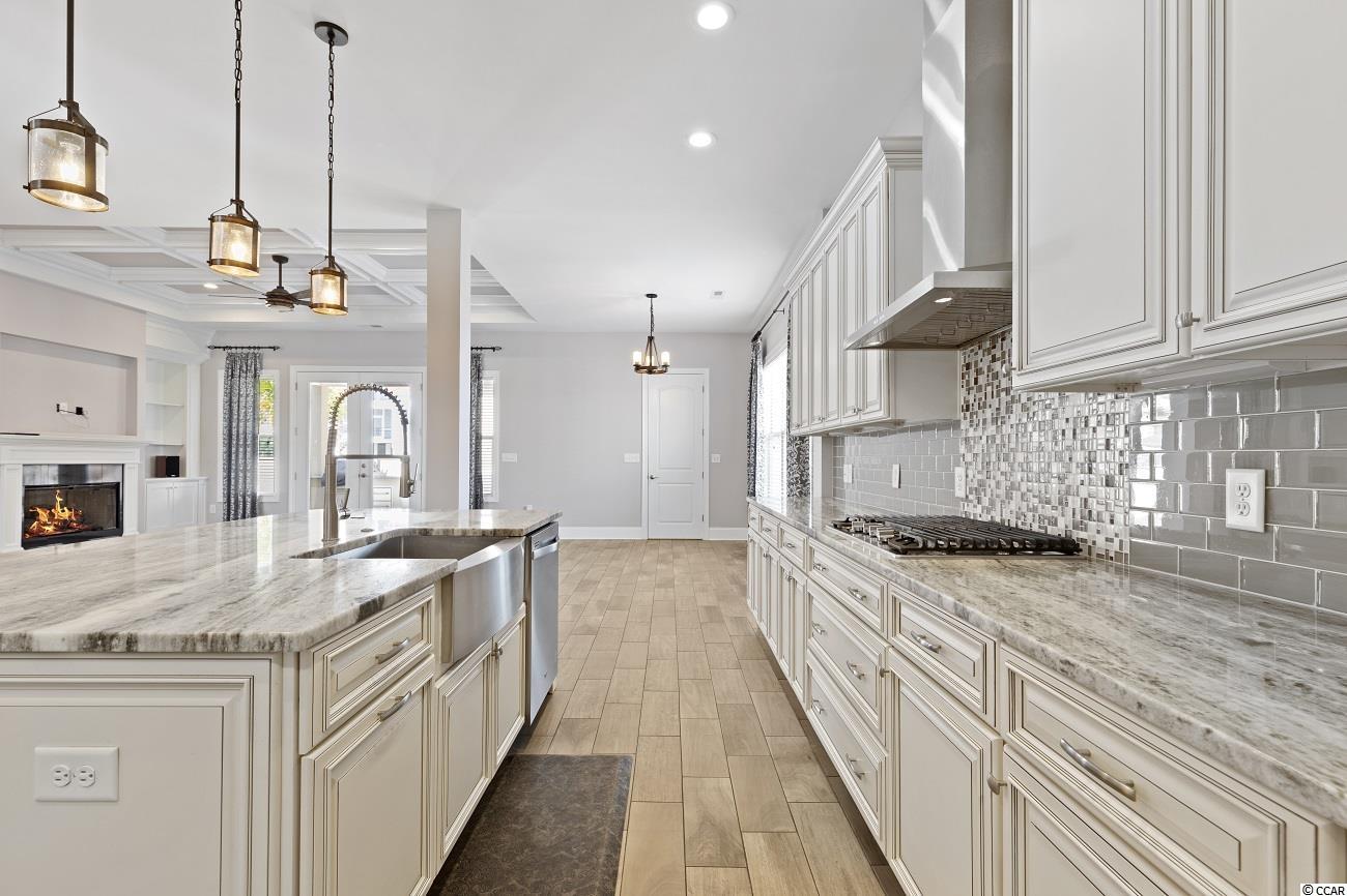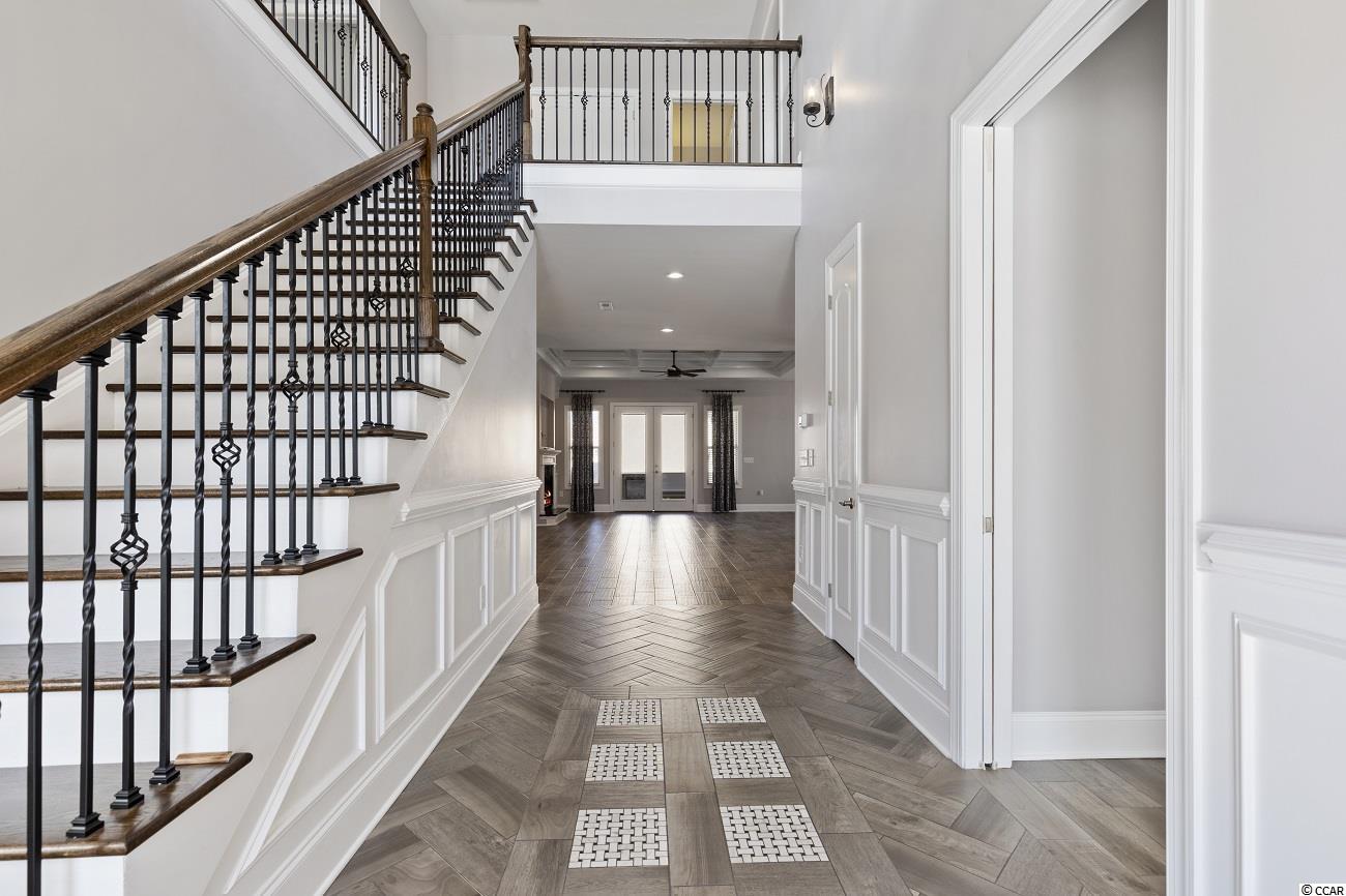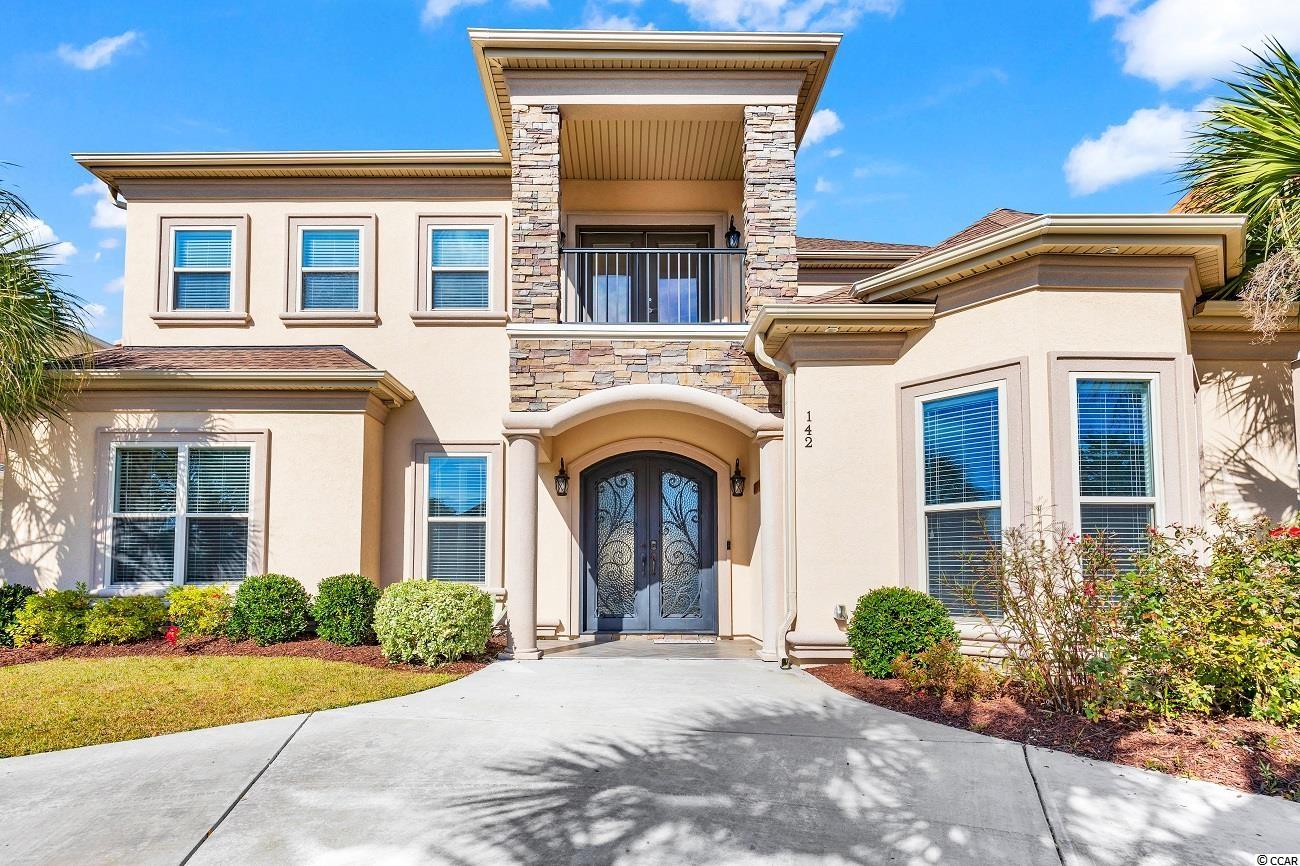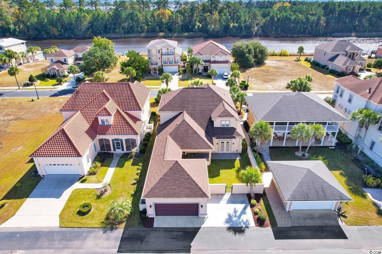 Located in the prestigious gated neighborhood of The Bluffs is this beautiful Mediterranean style home located on the second row with Intracoastal waterway views. In this 6 bed, 4.5 bath home you will find a very spacious and open floor plan that's perfect for your family and entertaining. Your first floor Master Bedroom has trey ceilings, large walk-in closet with custom shelving, Master Bathroom offers his and her sinks and large walk-in shower & large garden tub. Other additional features include a custom kitchen with island, dining area, large pantry, great room with coffered ceiling and fireplace. Your private covered lanai with outdoor kitchen & stucco fenced in backyard is perfect for the amazing sunsets. The Bluffs is conveniently located to schools, shopping, hospitals, major roads and a 10 min drive to the beach. The community has 2 private clubhouses (one directly on the ICW), resort-style pool, childrens pool, two tennis courts, playground, boat/RV storage, and boat launch ramp which is only a quick 35 minute ride to the Atlantic Ocean! Additionally there are stocked ponds for fishing, as well as walking and biking areas. You don't want to miss this rare home in one of the top Myrtle Beach neighborhoods.