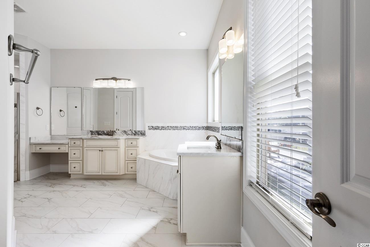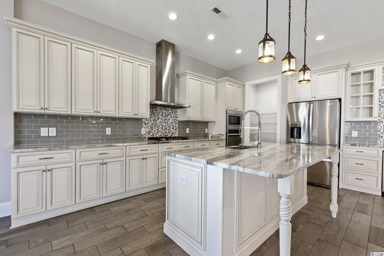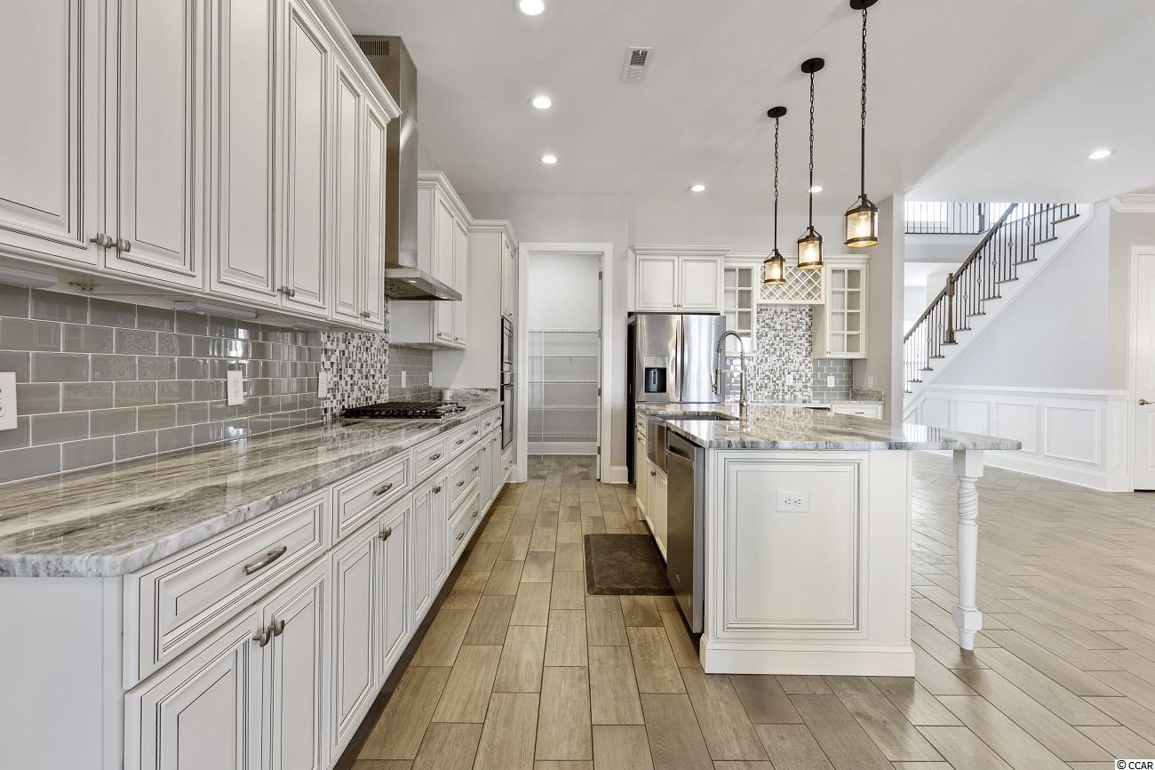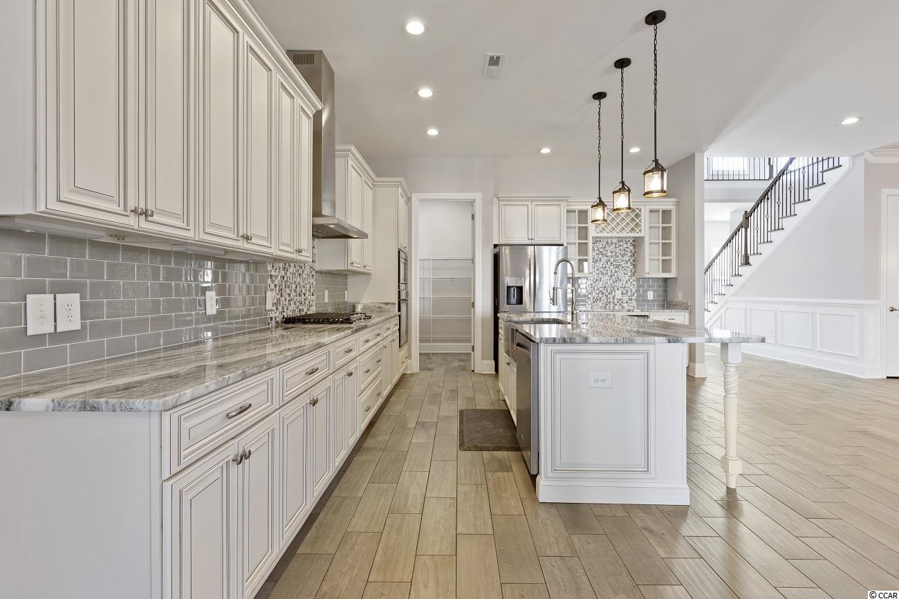 Located in the prestigious gated neighborhood of The Bluffs is this beautiful Mediterranean style home located on the second row with Intracoastal waterway views. In this 6 bed, 4.5 bath home you will find a very spacious and open floor plan that's perfect for your family and entertaining. Your first floor Master Bedroom has trey ceilings, large walk-in closet with custom shelving, Master Bathroom offers his and her sinks and large walk-in shower & large garden tub. Other additional features include a custom kitchen with island, dining area, large pantry, great room with coffered ceiling and fireplace. Your private covered lanai with outdoor kitchen & stucco fenced in backyard is perfect for the amazing sunsets. The Bluffs is conveniently located to schools, shopping, hospitals, major roads and a 10 min drive to the beach. The community has 2 private clubhouses (one directly on the ICW), resort-style pool, childrens pool, two tennis courts, playground, boat/RV storage, and boat launch ramp which is only a quick 35 minute ride to the Atlantic Ocean! Additionally there are stocked ponds for fishing, as well as walking and biking areas. You don't want to miss this rare home in one of the top Myrtle Beach neighborhoods.