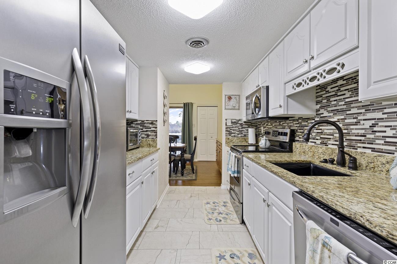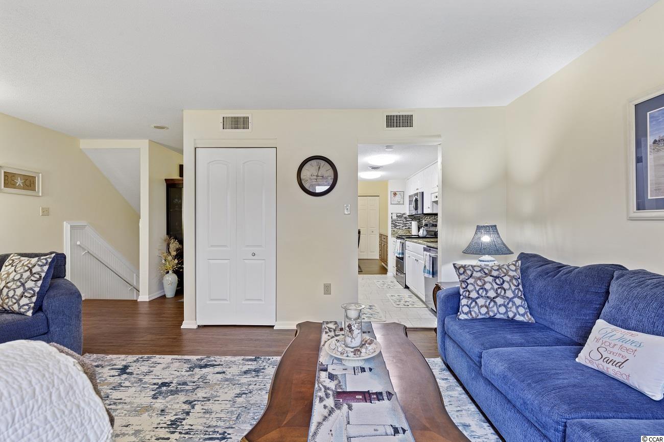 EXCEPTIONAL LOCATION EAST OF HWY 17 IN N. MYRTLE BEACH in Tilghman Estates at The Pines where you can easily take your golf cart to the beach, shopping, restaurants and more! This STUNNING 3 BR, 3.5 BA at The Pines is beautifully decorated and selling mostly furnished with a fantastic location within the community. Showing like a model, this large, spacious unit boasts upgraded LVT flooring in the main living area and kitchen. Stainless appliances were installed in 2017 as was a new HVAC unit in 2017. Two mini splits were added in 2019 and 2021 to offer additional comfort of heating/cooling to first level and top level bedrooms. Service maintenance for main heat pump and two split systems has been paid in advance for spring service by Hewitt Htg. and Air. Kitchen counter tops are granite with newly installed backsplash. All 3 bedrooms have their own private bathroom, and a powder room is conveniently situated in hallway near the main living area living room. Closet space galore is sure to please, and two attached outdoor closets are ideal for a variety of storage items. Seeing is believing. . . This truly is a beautifully furnished, updated townhome style condo just an easy golf cart ride or stroll to the ocean in a most desirable location. Community pool is extremely well kept as is the entire community. New roofing installed a few years ago. HOA fee includes lawn maintenance, pool maintenance, exterior maintenance and exterior insurance. Short term rentals are not permitted. Don't miss out on this fabulous opportunity!