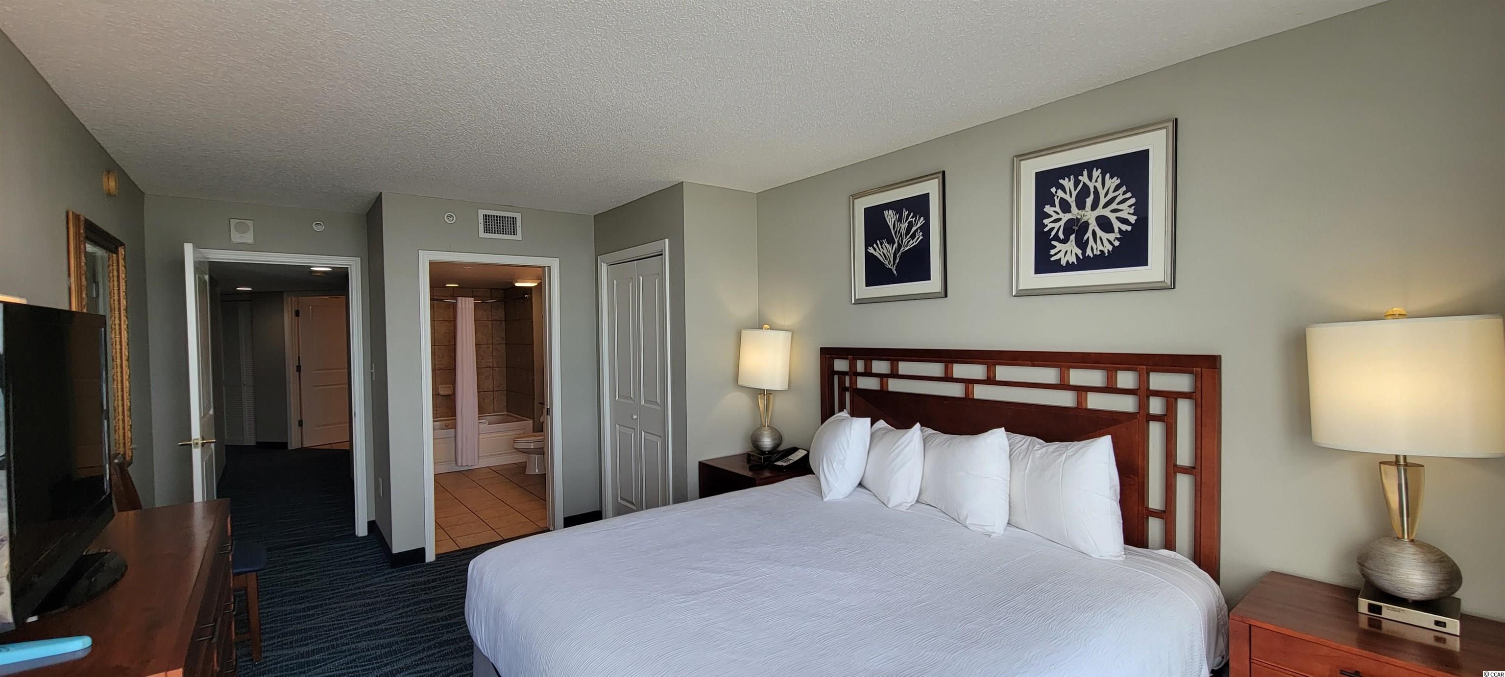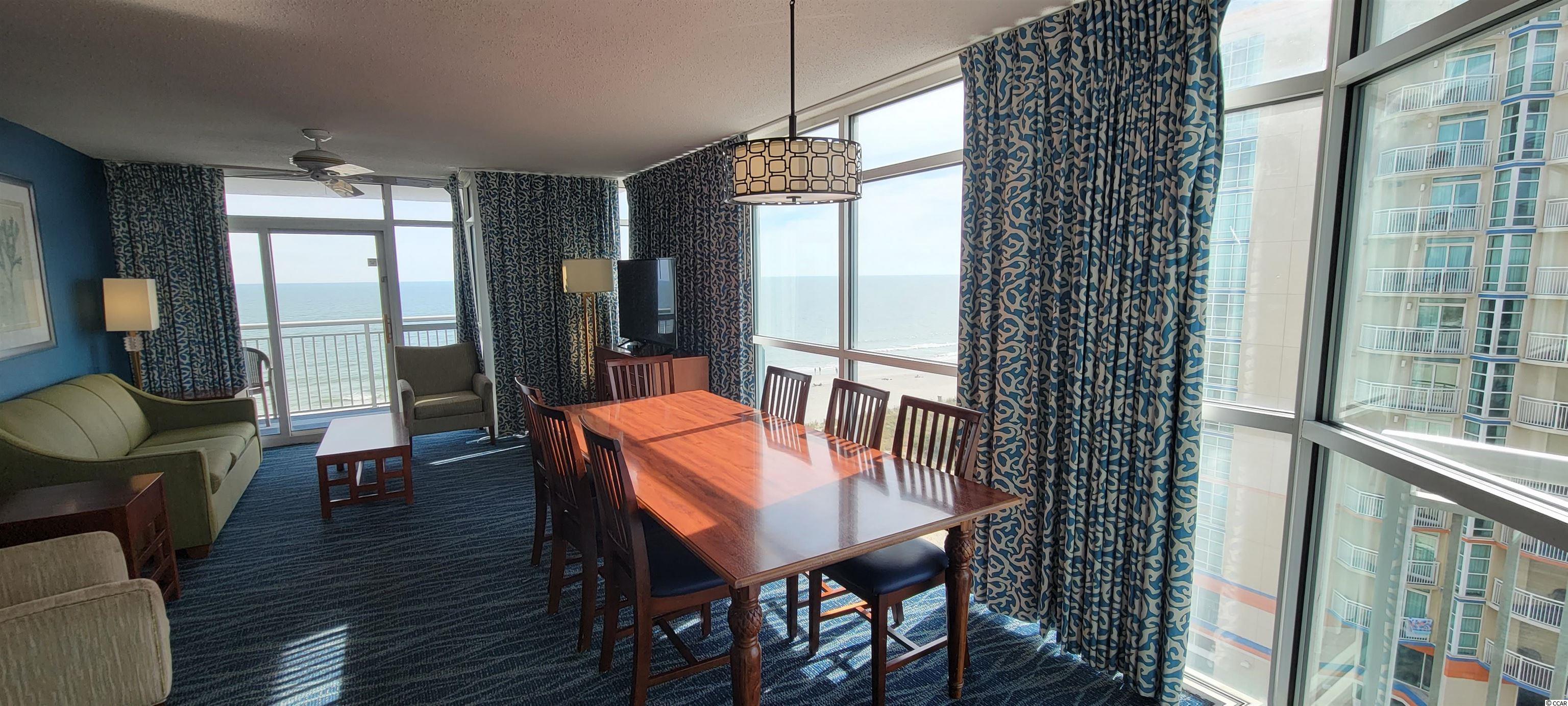 Completely updated 4 bedroom 4 bath oceanfront villa. The views from your unit will amaze you. With oceanfront floor to ceiling glass in the living room, master bedroom and a second bedroom you will be able to enjoy the beautiful views of the beach, and Atlantic Ocean from most every room in the condo, but if you want to get an even better view, enjoy the spacious balcony off the master bedroom, second bedroom and living area, plus, the third bedroom offers an ocean view and a private balcony. As you enter the villa you will find a full-size side by side washer and dryer and a private owners closet. Your first bedroom offers two queen beds, private bath and ocean view balcony, the second bedroom has two queen beds and a Jack and Jill bath that has access from the hallway as well. The third bedroom is oceanfront with two queen beds and private bath with walk-in shower. Next is your master bedroom, oceanfront with a king bed and ensuite bath featuring a jetted tub. Your living area features a full kitchen with all the appliances and granite counter tops, a dinning area and oceanfront living room with a queen size sofa sleeper. This unit will sleep 16 people. This is a perfect home away from home or great investment property with excellent rental income. The award-winning resort features amenities that includes two indoor water parks, with pools, lazy rivers, hot tubs, kids splash and play areas plus four indoor waterslides. The fun continues with a year -round activities department, tennis courts, basketball courts, beach Volleyball court, Putt Putt course and a NEW playground for 2019. While the family enjoys the water parks, relax and get a massage in the onsite Spa or workout in the exercise room. The resort also offers two restaurants, a full bar, and Coffee Shop featuring Starbucks coffee. The Dunes Village Resort has been awarded the #1 family resort in Myrtle Beach, as well as the #4 family resort in the entire U.S by the Today Show and TripAdvisor. If you ever find time to leave this amazing property you will find many of Myrtle Beach's top attractions, restaurants, and dining within a short drive. Don't miss out on this property. Make sure you call today for a showing.