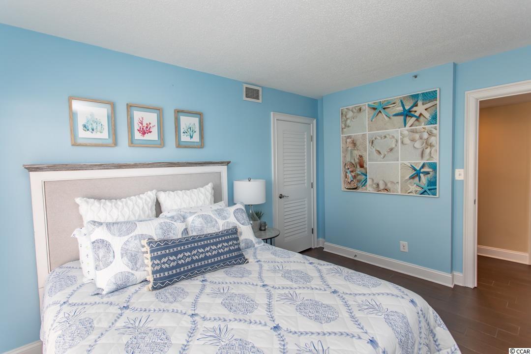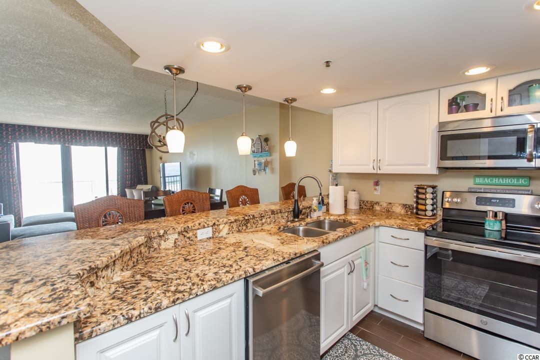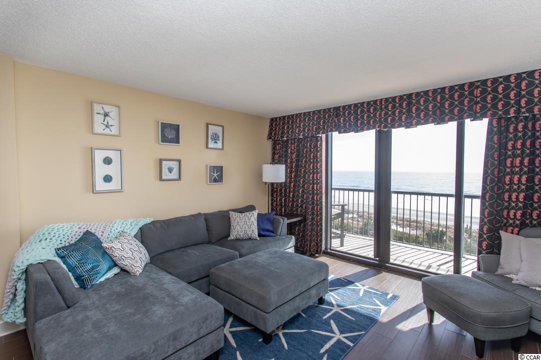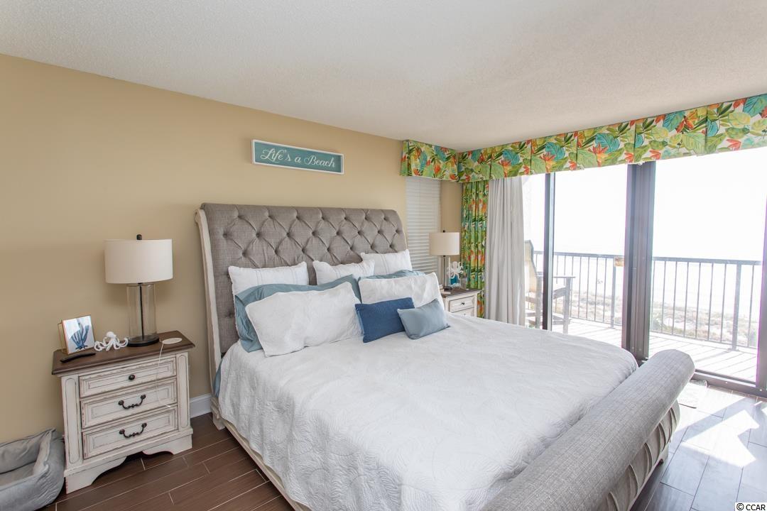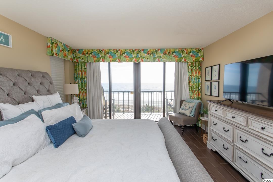 Breathtaking unobstructed views from the direct oceanfront balcony with floor to ceiling glass sliders with an expansive oceanfront balcony accessible through both the living room and the master suite of this gorgeous rare 4 bedroom 3 bath end unit condo. This corner unit has a spectacular view of the beach and the ocean to the north and to the south. Picture yourself relaxing and enjoying the breathtaking sights and the calming sounds of the ocean from the large balcony. Start your day with your morning coffee or mimosa while watching the sunrise and complete your day with a cocktail gazing at the beautiful ocean. Aside from gorgeous views, this 4 bedroom/3 bath unit has been completely renovated. Tile flows throughout the entire unit. The kitchen features upgraded cabinets with granite counters and high end appointed stainless steel appliances. The master suite has direct access to the balcony allowing you to open the doors while you sleep and hear the sounds of crashing waves, with the en-suite bath featuring a custom tile shower, and upgraded dual sink vanity. The other two baths have been upgraded also. One bathroom has a custom tile shower and the other has a tile shower with tub surround. This amazing floor plan is very spacious with room for everyone in your family to enjoy as well as have their own space. Beach Colony features an indoor and outdoor pool, lazy river, exercise room, courts arcade and more. Located on the north end of Myrtle Beach it is close to fine dining, shopping, entertainment and much more. Come make this gorgeous condo at Beach Colony your new home, vacation getaway or investment property.