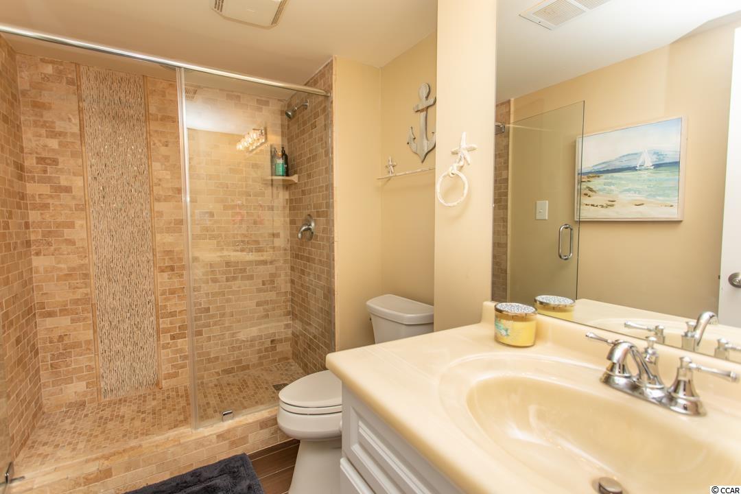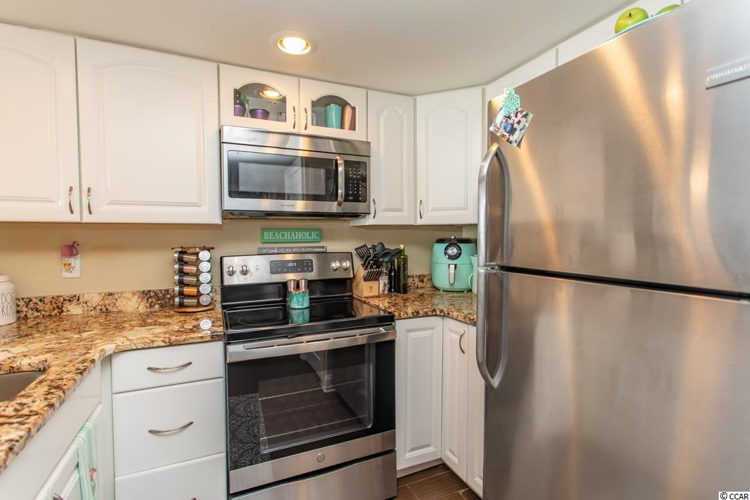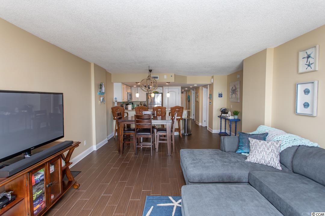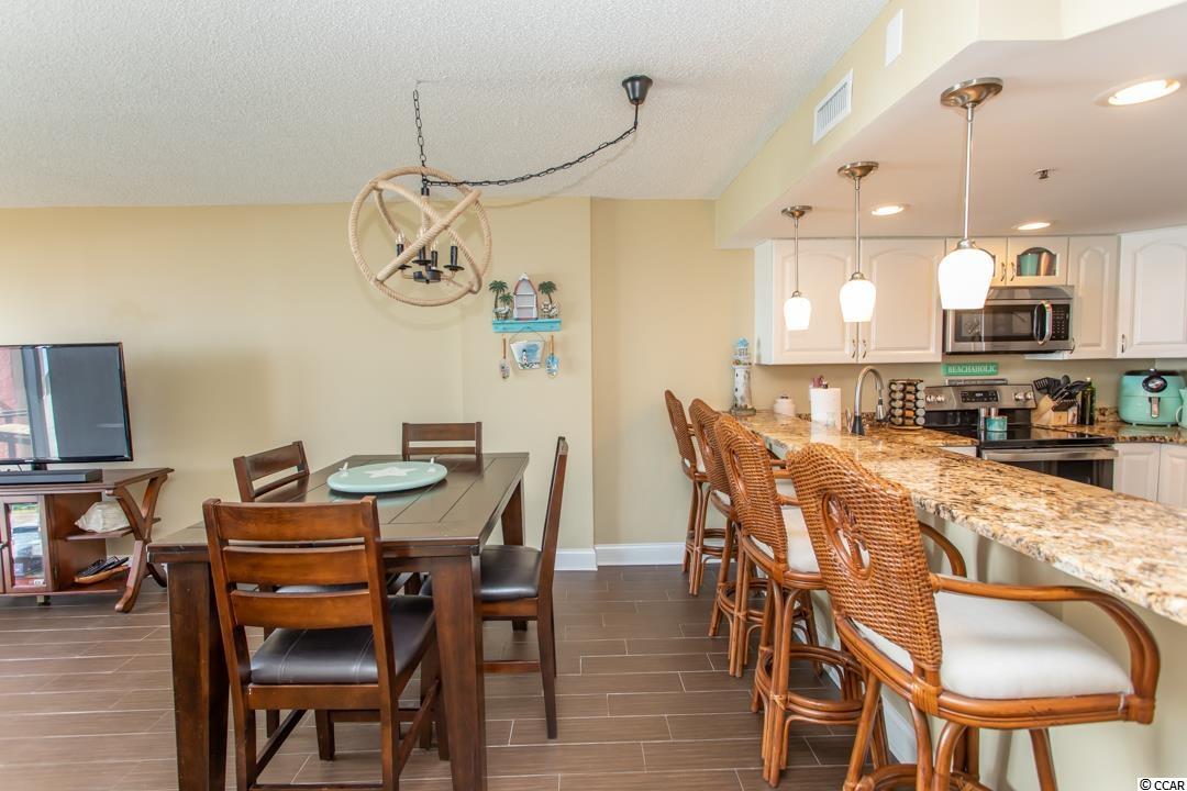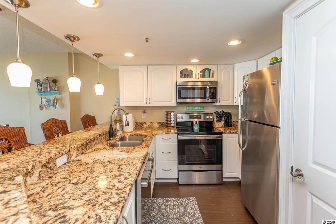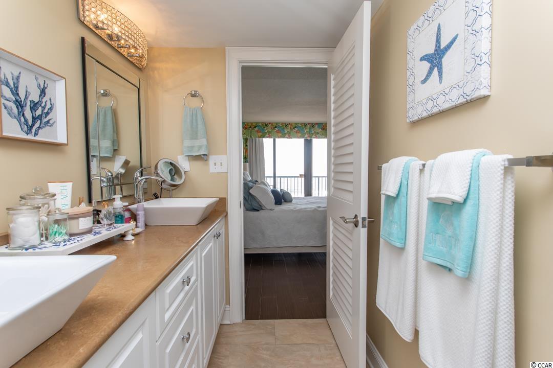 Breathtaking unobstructed views from the direct oceanfront balcony with floor to ceiling glass sliders with an expansive oceanfront balcony accessible through both the living room and the master suite of this gorgeous rare 4 bedroom 3 bath end unit condo. This corner unit has a spectacular view of the beach and the ocean to the north and to the south. Picture yourself relaxing and enjoying the breathtaking sights and the calming sounds of the ocean from the large balcony. Start your day with your morning coffee or mimosa while watching the sunrise and complete your day with a cocktail gazing at the beautiful ocean. Aside from gorgeous views, this 4 bedroom/3 bath unit has been completely renovated. Tile flows throughout the entire unit. The kitchen features upgraded cabinets with granite counters and high end appointed stainless steel appliances. The master suite has direct access to the balcony allowing you to open the doors while you sleep and hear the sounds of crashing waves, with the en-suite bath featuring a custom tile shower, and upgraded dual sink vanity. The other two baths have been upgraded also. One bathroom has a custom tile shower and the other has a tile shower with tub surround. This amazing floor plan is very spacious with room for everyone in your family to enjoy as well as have their own space. Beach Colony features an indoor and outdoor pool, lazy river, exercise room, courts arcade and more. Located on the north end of Myrtle Beach it is close to fine dining, shopping, entertainment and much more. Come make this gorgeous condo at Beach Colony your new home, vacation getaway or investment property.