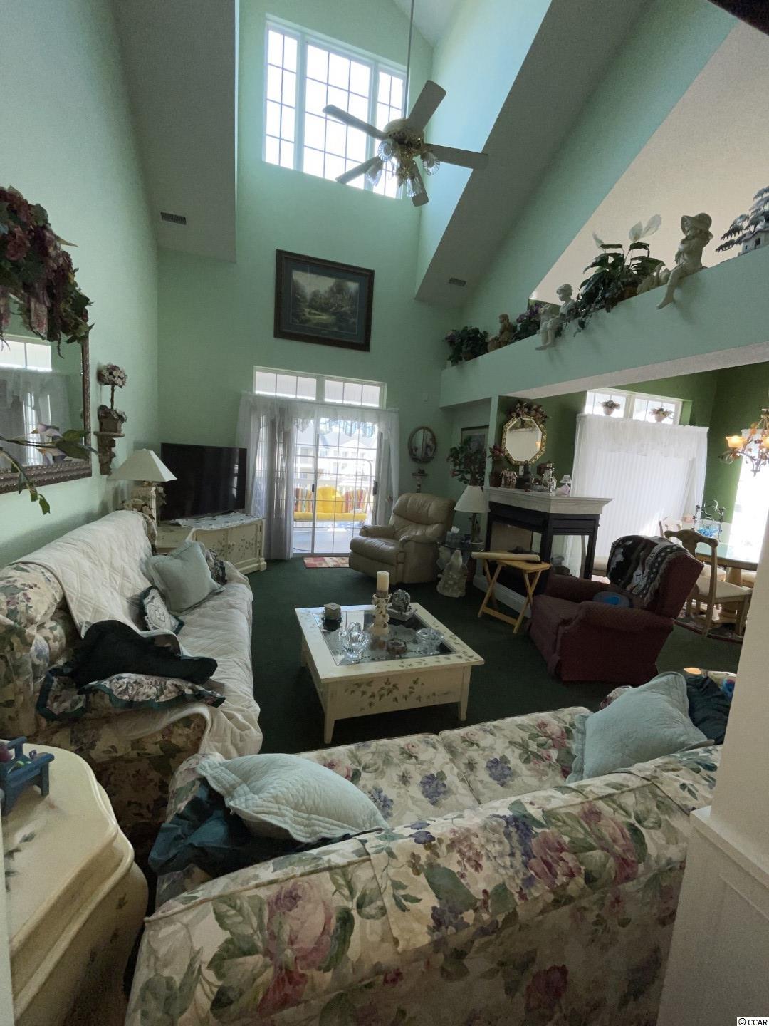 You do not want to miss out on this luxury rare 4 bedroom 3 bath condo in the Windsor Green Community. As you enter the condo you will be amazed at the foyer with high tray ceiling and beautiful chandelier. Master bedroom is on first floor featuring walk in closet, tray ceiling, sliding doors to screened in porch and large master bathroom. Master bath features double vanity, separate shower and whirlpool tub. Two additional bedrooms and a full bath also on first floor. Second floor features another guest bedroom and full bath along with a den/sitting room/office. Upstairs hallway is open to living area below. A two side fireplace separates the living room and dining area. Living room has sliding doors leading out to a large screened in porch. Windsor Green Community has a club house, outdoor pool, grilling area and a playground. Close to everything Myrtle Beach has to offer. This condo is a Gem! All measurements and square footage are approximate. Buyer responsible to verification.