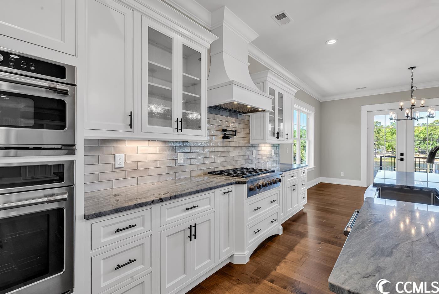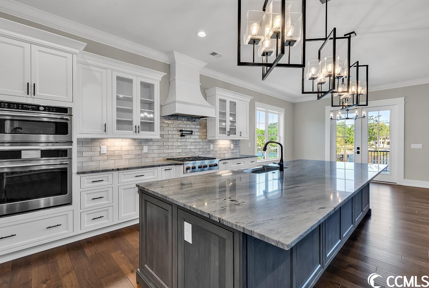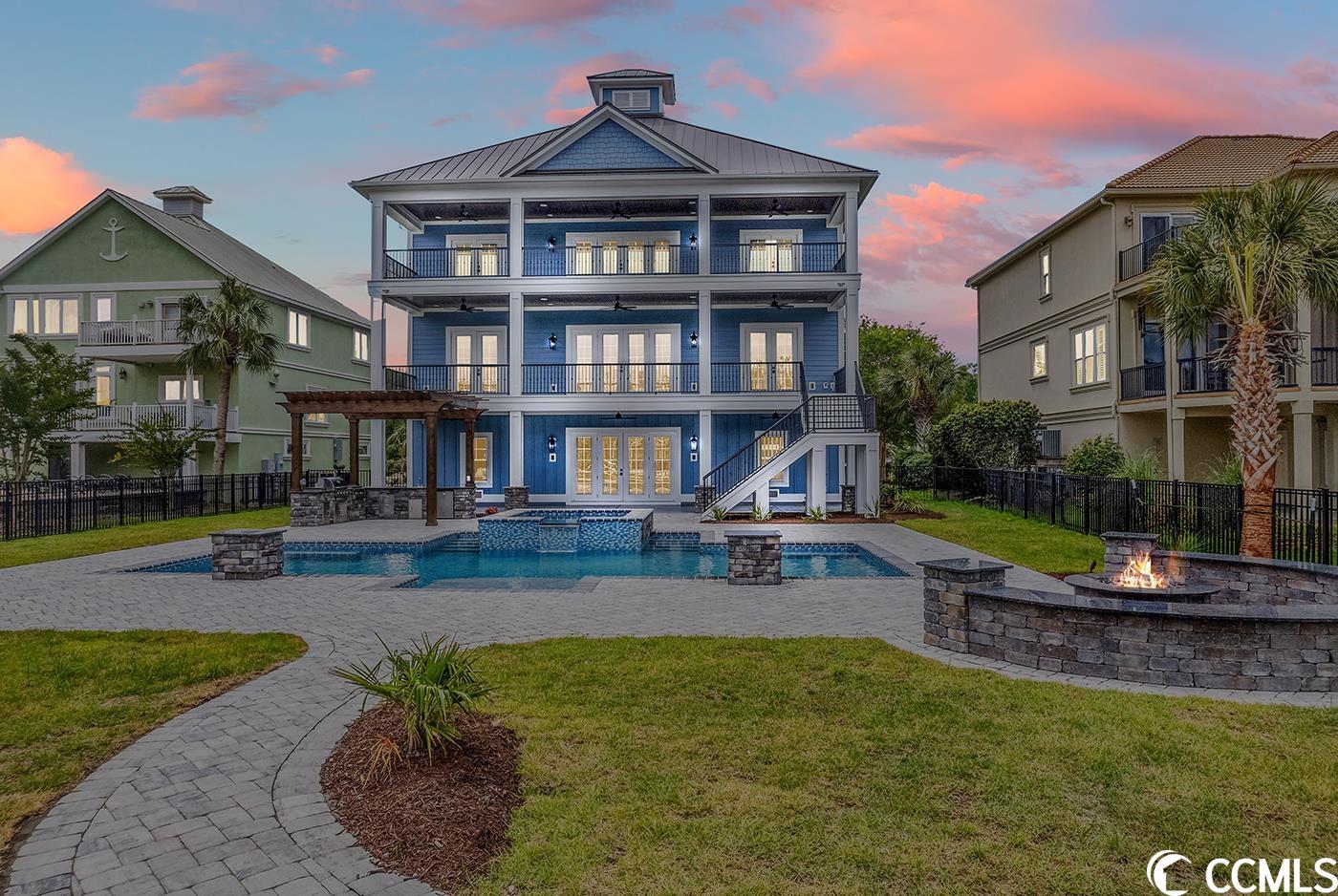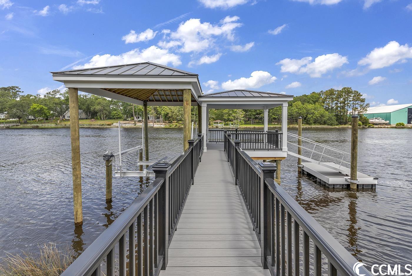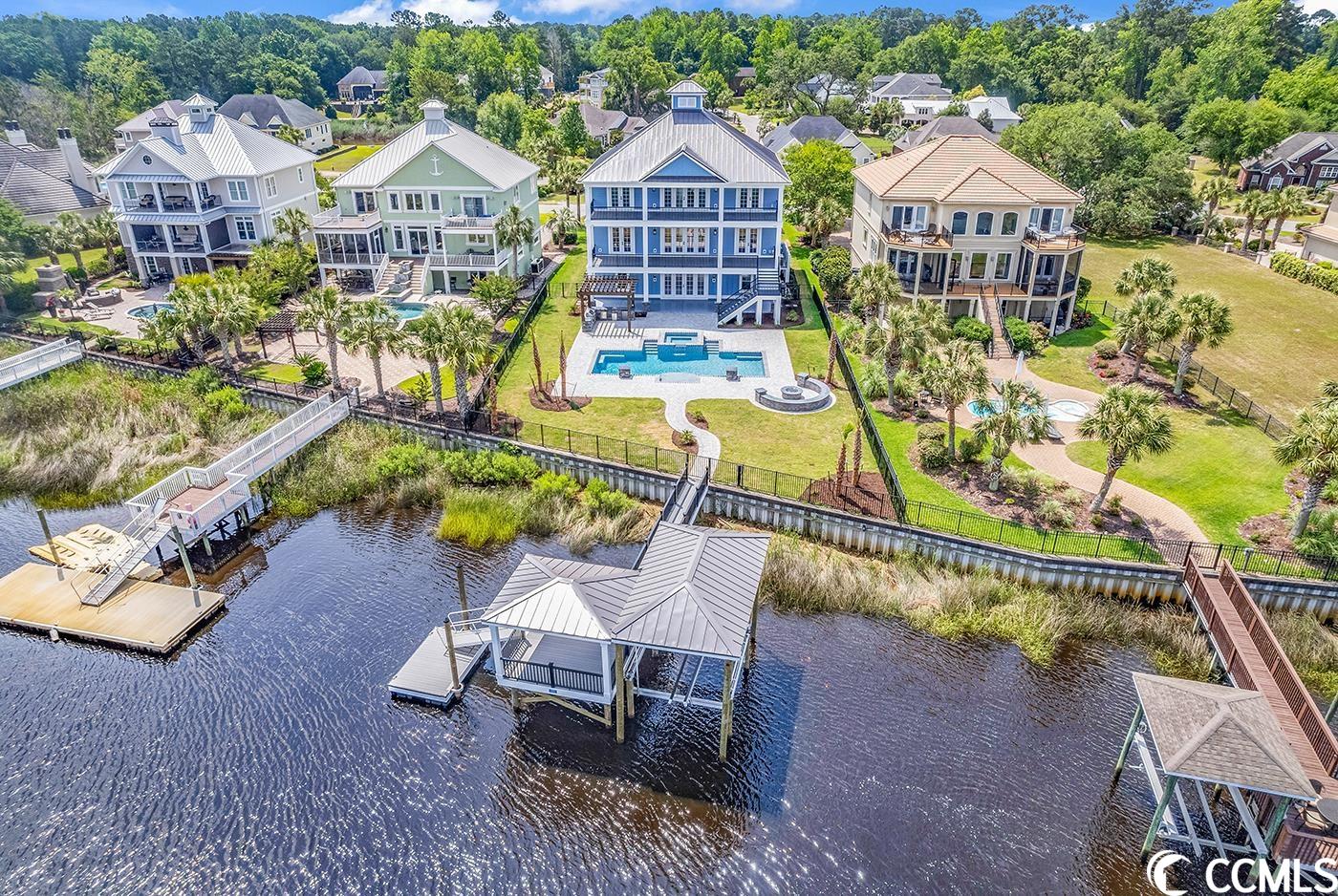 If you are looking for CUSTOM, this luxury New Construction is the absolute depiction of craftsman coastal beauty at its finest! Located right on the intercoastal waterway in prestigious Harbor Watch in much-desired North Myrtle Beach. Built for the taste of sophistication. Intimate detail abounds thru out this open floor plan. Heaps of natural light flows thru this 5 BR/7 BA home surrounding a multitude of the finest selections, and an elevator servicing all 3 floors. Plank tile, ceramic tile and hardwood flooring span the home with an oak staircase and beautiful custom railings. Soaring 10 ft ceilings on the main floor showcase the luxurious kitchen with all it offers. High-end GE Caf stainless-steel appliances feature a 48 Refrigerator, gas cooktop with decorative vented hood, wall oven and microwave, and wet bar including wine cooler and wine rack for all your entertaining delights. Farmhouse sink centers the entertaining island that seats up to 6 people- High end countertops with custom cabinets, spacious walk-in pantry finishes out the stunning kitchen that opens to the dining and living area. LR features stunning coffered ceilings, crown molding, and a floor to ceiling stone gas fireplace and custom built-in cabinets encasing it, and double French doors accessing the sprawling back porch. The main level owners suite offers privacy with intimate views of water and serene scenery. MB features tiled walk-in shower, giant soaking tub, dual vanities with custom cabinetry, water closet, and a master closet- all conveniently attached to laundry room with no features left behind. The laundry is detailed with solid surface counter tops, sink, and inlayed custom cabinets! 2nd BR on main level with full private bath. And an additional powder room adjoining the front foyer. Upstairs features 9 ft ceilings- A luxurious owners suite spans length of the home featuring tray ceilings with French doors to another stunning 3rd floor waterway view. An enormous walk-in closet with ample space, a large MB featuring a Zero entry tiled shower, water closet, double vanity, and a two-person soaker tub. 2 additional BR each with a full private bath each offering views of the waterway, one with porch access. Recreation area with tray ceiling, a custom wet bar with icemaker, beverage fridge, and beautiful glass front custom cabinets. Additional laundry upstairs for your convenience! The exterior gets even better- Board & Batten, shaker, lap siding and standing seam roof highlight the home with gorgeous stone that makes this home absolutely breath taking! Covered rocking chair front porch and back porches with tile flooring, detailed craftsman columns, wood ceiling accents, and custom black aluminum railings. The back porches run the entire length of the home with end-to-end ceiling fans. Two car oversize garage, with additional golf cart garage and extra storage to put all your toys, and equipment under the home. Setting the tone for the backyard oasis, featuring a saltwater pool and spa with swim up sitting area, lounge area enclosed with a black iron fence and custom firepit, all while cooking in the full outdoor kitchen with ss appliances, drawers, and cabinets. Just a few steps away your Private covered fixed dock with a covered boat lift and additional floating docks permit direct access to the waterway and all it has to offer. Pavers surround the pool and patio area, as well as the entire front driveway. Additional standout features: Two 16 Seer HVAC systems with LIFETIME warranty on the condenser for the original owner, TANKLESS hot water heater, whole house generator, full landscape package with irrigation. Harbor Watch is set apart on distinction and pride of ownership in the homes built here with NO HOA. Best of all, luxury living on the intercoastal waterway!! An absolute paradise for any water enthusiast, or someone wanting to enjoy the coastal lifestyle!!!