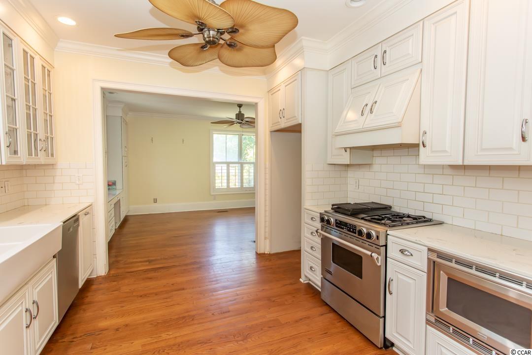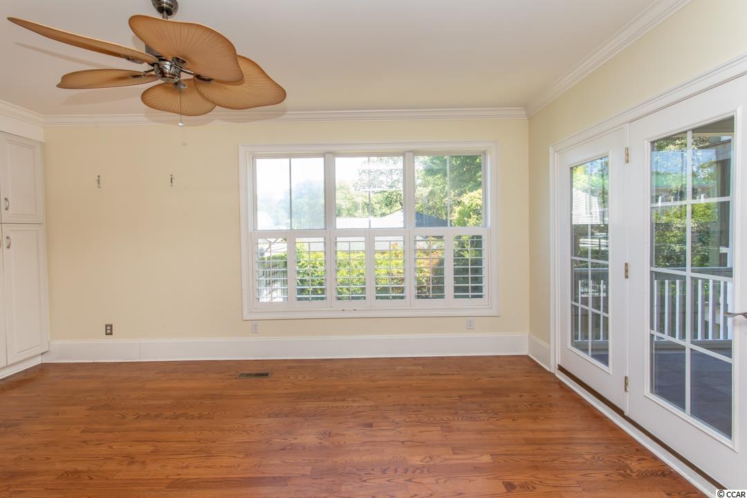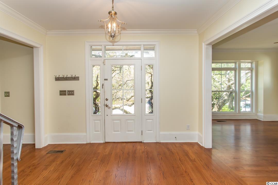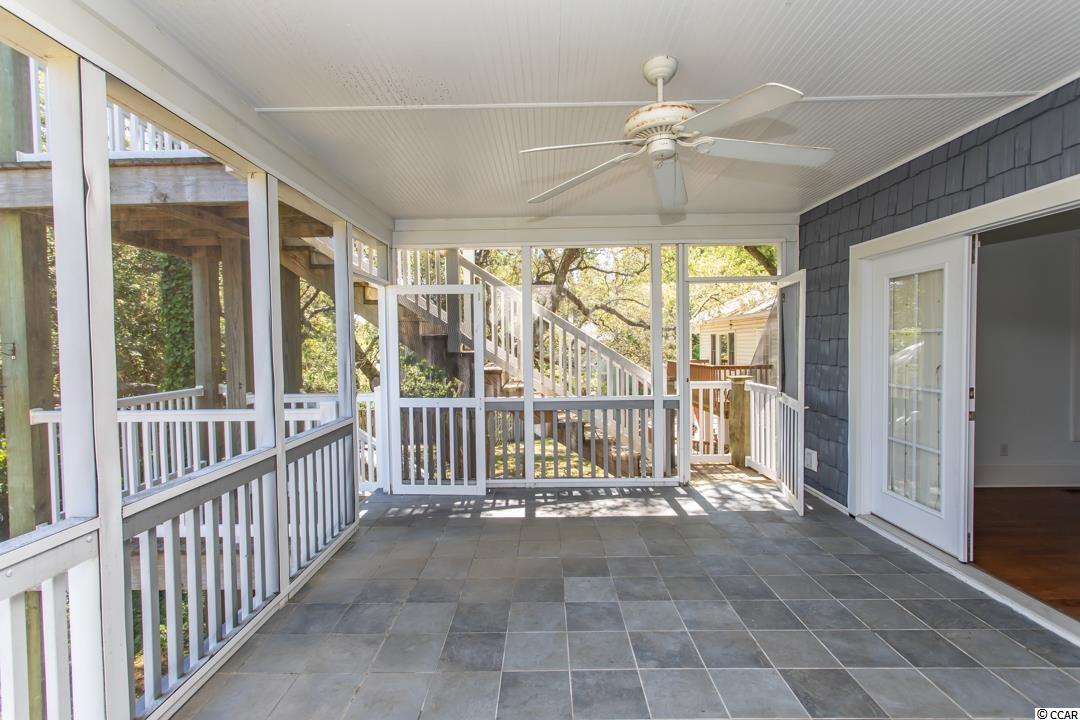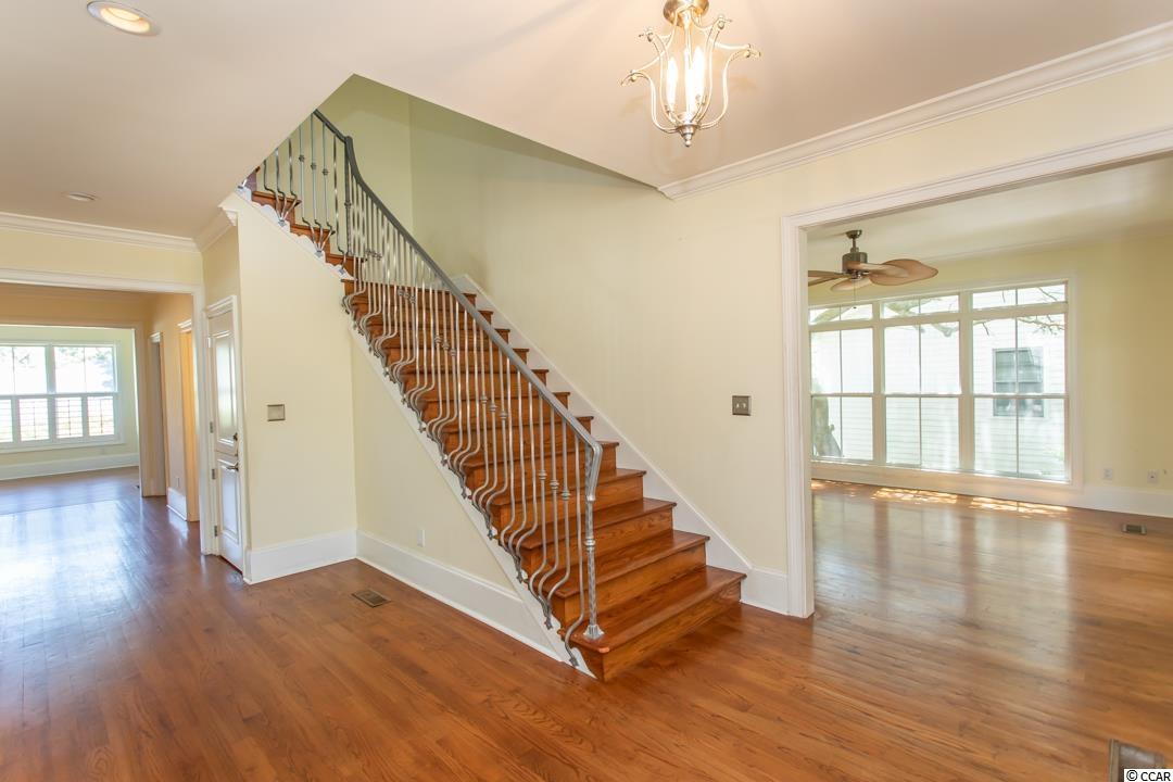 Location, location, location!!! This 3 level raised beach home that is just steps to the Atlantic Ocean is located in the most desirable area in Myrtle Beach!! This 5 bedrooms, 6.5 bath beauty boasts an in-law, housekeeper, or caretaker suite on the first level. Has 4 open porches to let you take advantage of the cool ocean breazes with one large screened-in porch. Flanked with plantation shutters this home has a gasfireplace, ornamental crown molding and an enhanced stairwell leading to the upstairs. Custom cabinets, hardwood floors, and a gourmet kitchen is offered along with a large master suit with a his and hers bath, and 2 walk-in closets. This home also offers a 2 car garage with plenty of storage space, workshop, and an outside shower that you will use often. This is the home you've been waiting on!! SQFT needs to be verifued by purchaser.