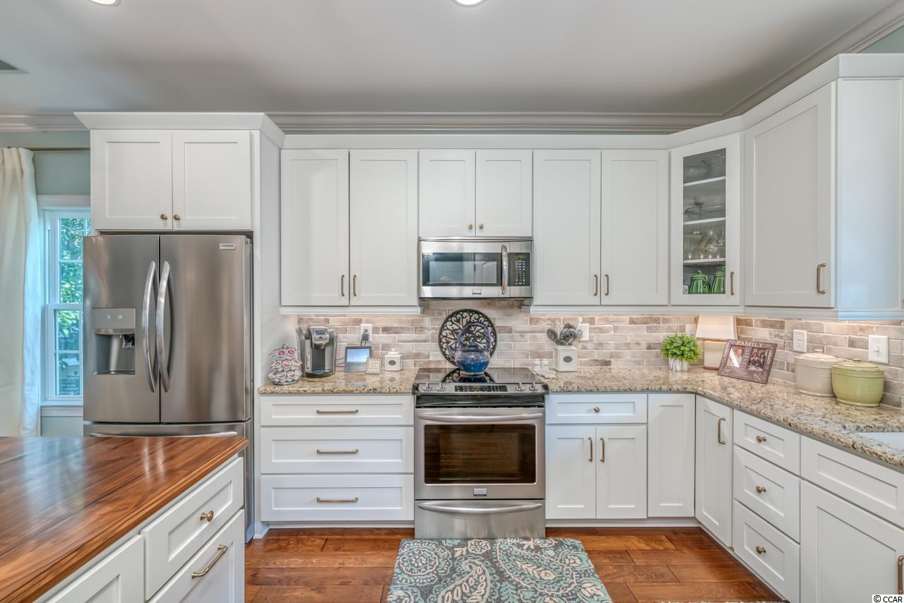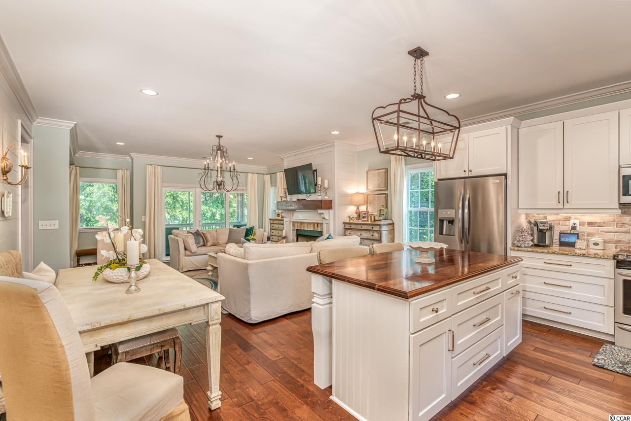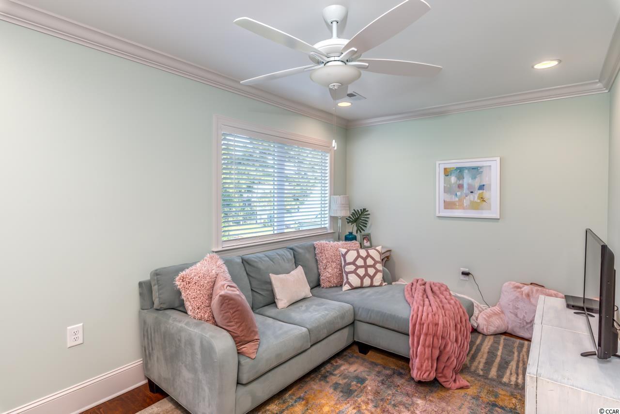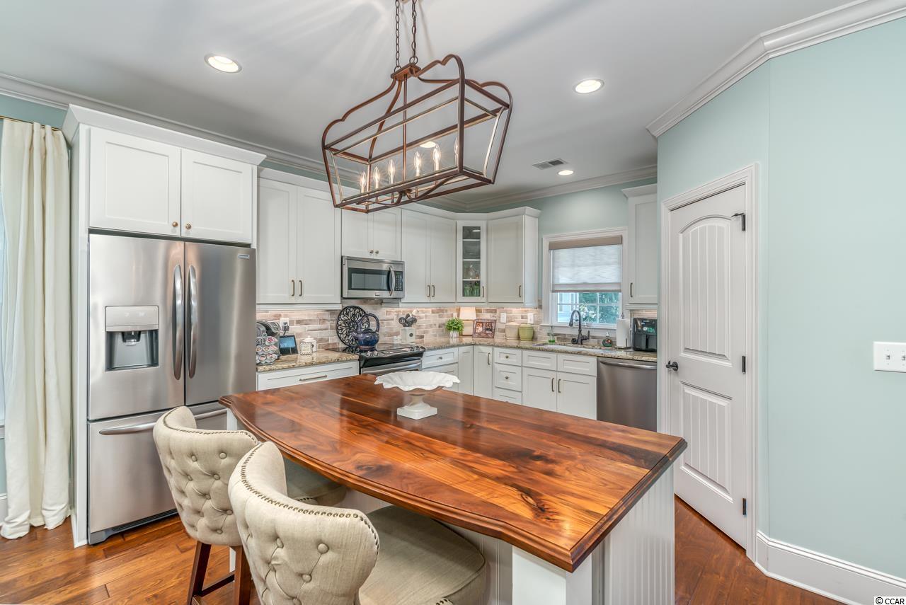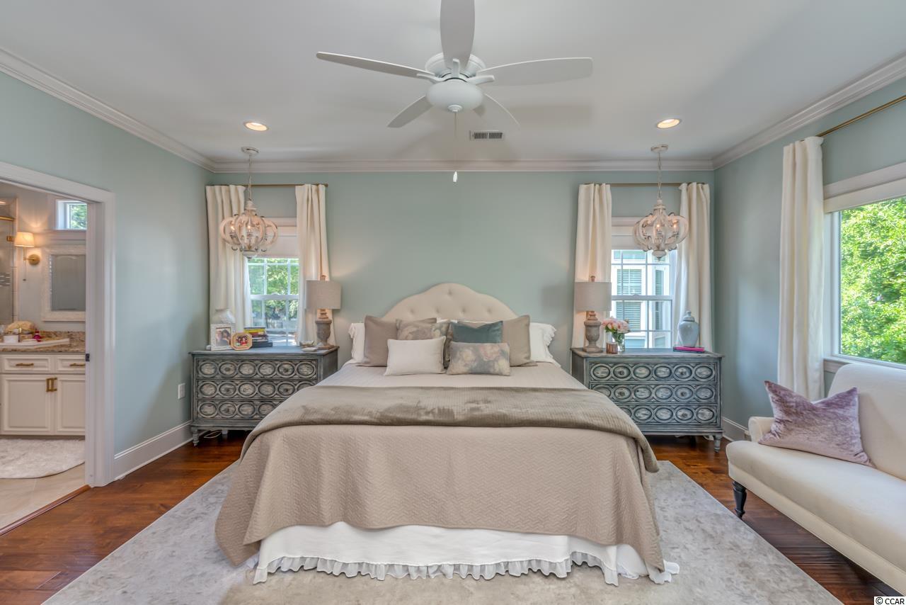 Gated. Small community and private. Short golf cart ride to Litchfield Beach. Relatively new home built in 2018. Backyard overlooks the community pond. Easy in and easy out in the community. Property is on a secondary road with less traffic. Front and back porches. Ground floor has finished heated living space that includes a Master suite. Not all bedrooms are conforming; contact agent for full bedroom details. The other ground floor bedroom is a non-conforming bedroom. Two separate garages. Space for a golf cart in the garage. Elevator shaft already in place. Open floor plan includes the kitchen, dining area, and great room. Very spacious laundry room. Spacious kitchen. Beautiful, custom hand-made walnut top on the island bar in the kitchen. Area dining room for formal entertaining. Gas fireplace in the den area. LP propane tank is buried in the back yard. Large Master suite on the first floor with plenty of natural light. Large Master bathroom and a walk-in closet. Master bathroom is connected to the spacious laundry room. Two extra bedrooms upstairs with private bathrooms and walk-in closets. The second floor also has a sitting area between the two bedrooms. In total, four master bedrooms, one extra finished room on the ground floor that is heated and cooled and perfect for controlled storage or a bonus room for an office. It has a half bath powder room for guest on the first/main floor. Each floor has it's own HVAC unit allowing maximum efficiency in energy use. It also has a yard sprinkler, an outdoor shower, and a backyard overlooking the community pond. Very low maintenance.