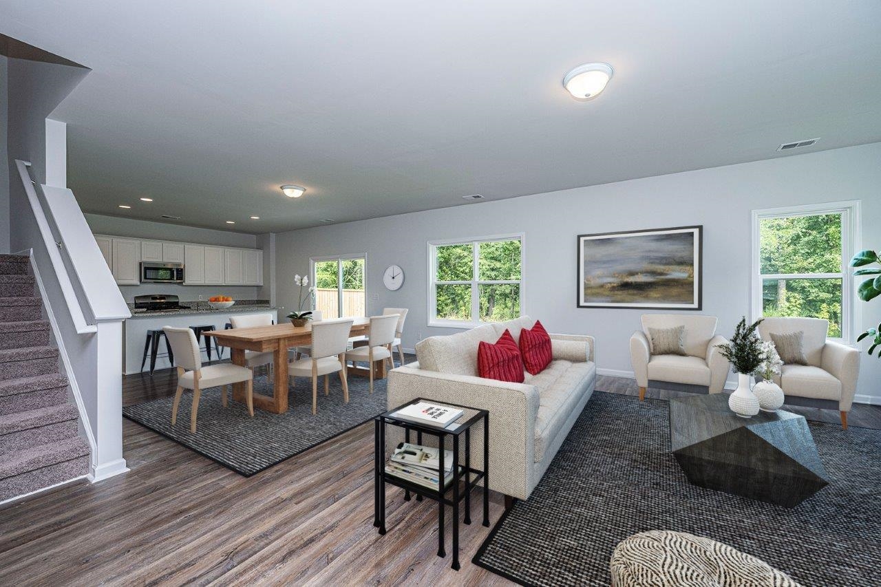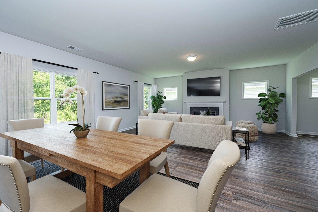 Welcome home to the Turner! This two-story home features six bedrooms, including a guest suite on the first floor, four full and one-half baths, and a covered back porch. The kitchen comes equipped with white cabinets, granite countertops, a walk-in pantry and GE stainless steel appliances, includes gas range and a refrigerator. The open-concept kitchen, living room, and dining room make entertaining easy. Upstairs you'll find the primary bedroom with tray ceiling and en suite featuring a raised vanity with dual sinks and quartz countertop, two linen closets and a large walk-in closet. The remaining four bedrooms upstairs share two full baths, both with dual sinks. A loft, perfect for hanging out, and a conveniently located laundry room round out the top floor. Photos are of the actual home, except for virtual staged photos.