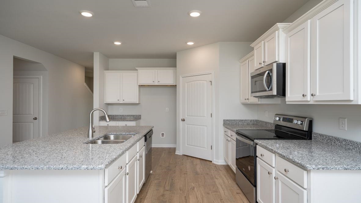 This Elle floorplan is oversized with plenty of room for everyone. Upon entry is a flex room that could be the perfect home office, game room, or even a formal dining room. The great room layout is wide open with a large kitchen that over looks the living and dining space. Granite countertops, painted cabinetry, a walk-in pantry, and stainless appliances. Sliding glass doors off the dining area lead to the rear porch overlooking the pond. The primary bedroom on the first floor is very convenient! Upstairs features four great sized bedrooms, two full bathrooms, the laundry room, and a versatile loft space! All of our homes include D.R. Horton's Home is Connected package, an industry leading suite of smart home products that keeps homeowners connected with the people and place they value the most. The technology allows homeowners to monitor and control their home from the couch or across the globe. Photos are from other Elle home. (Home and community information, including pricing, included features, terms, availability and amenities, are subject to change prior to sale at any time without notice or obligation. Square footages are approximate. Pictures, photographs, colors, features, and sizes are for illustration purposes only and will vary from the homes as built. Equal housing opportunity builder.)