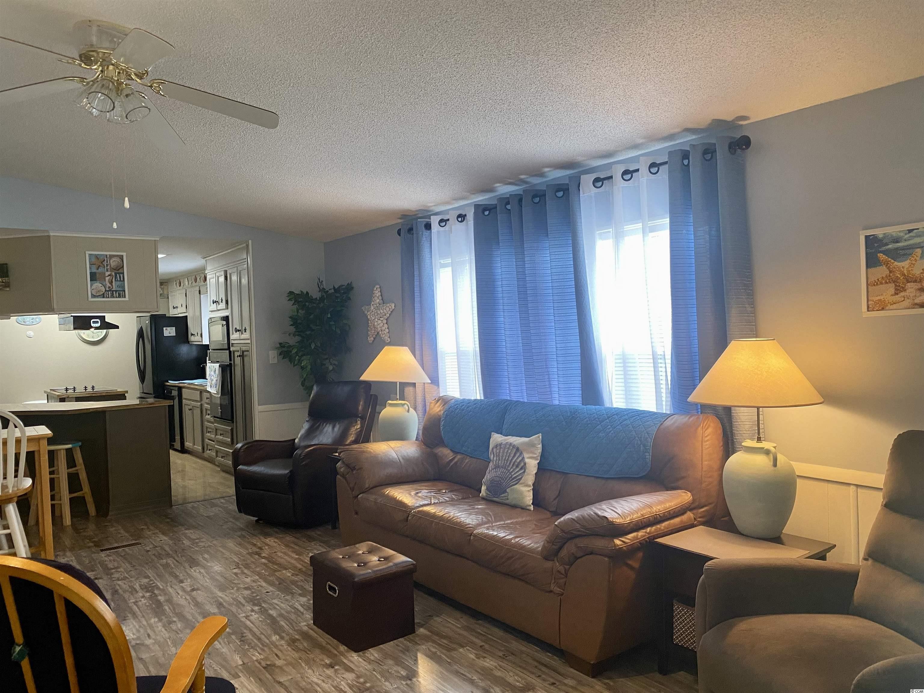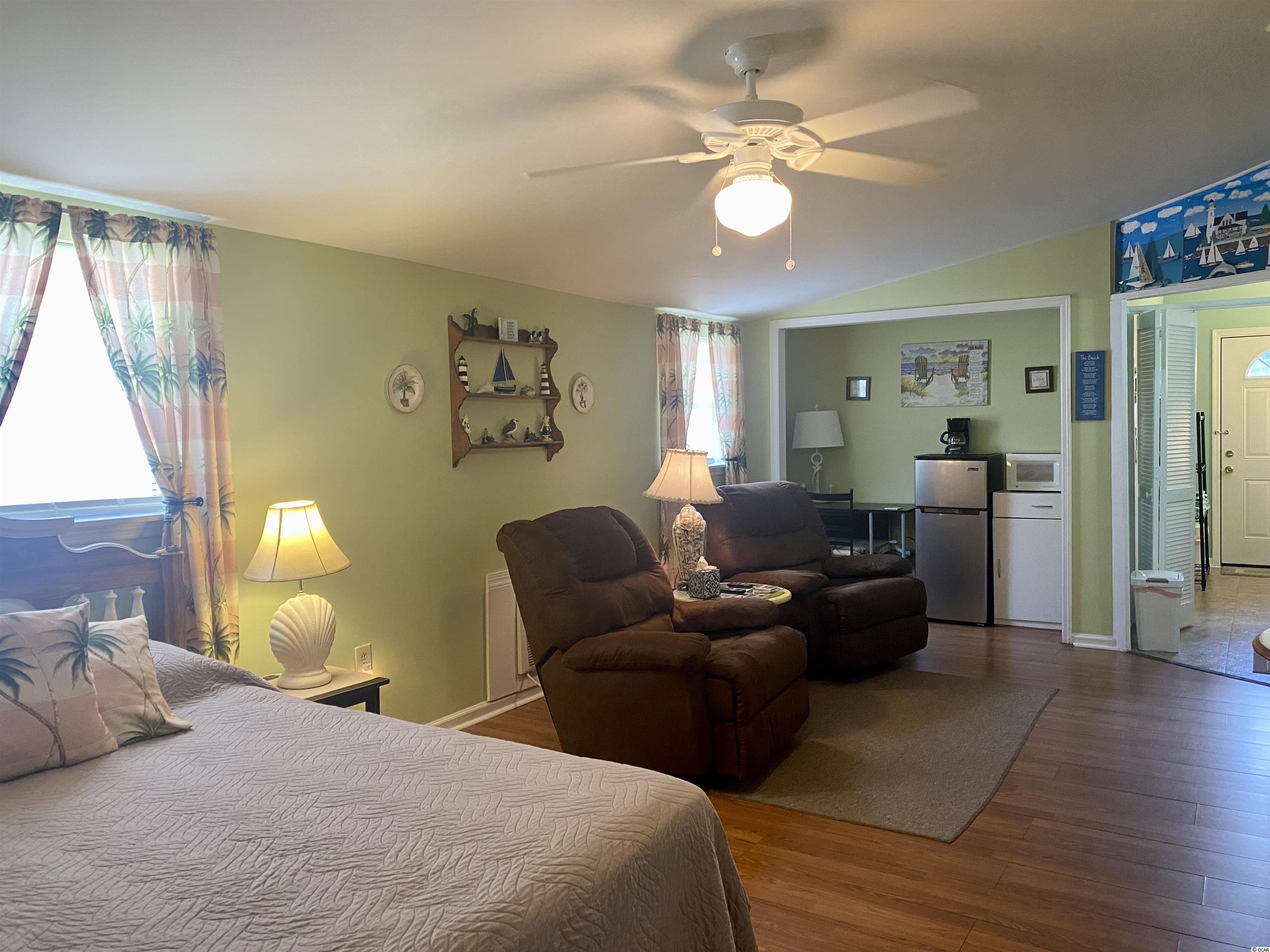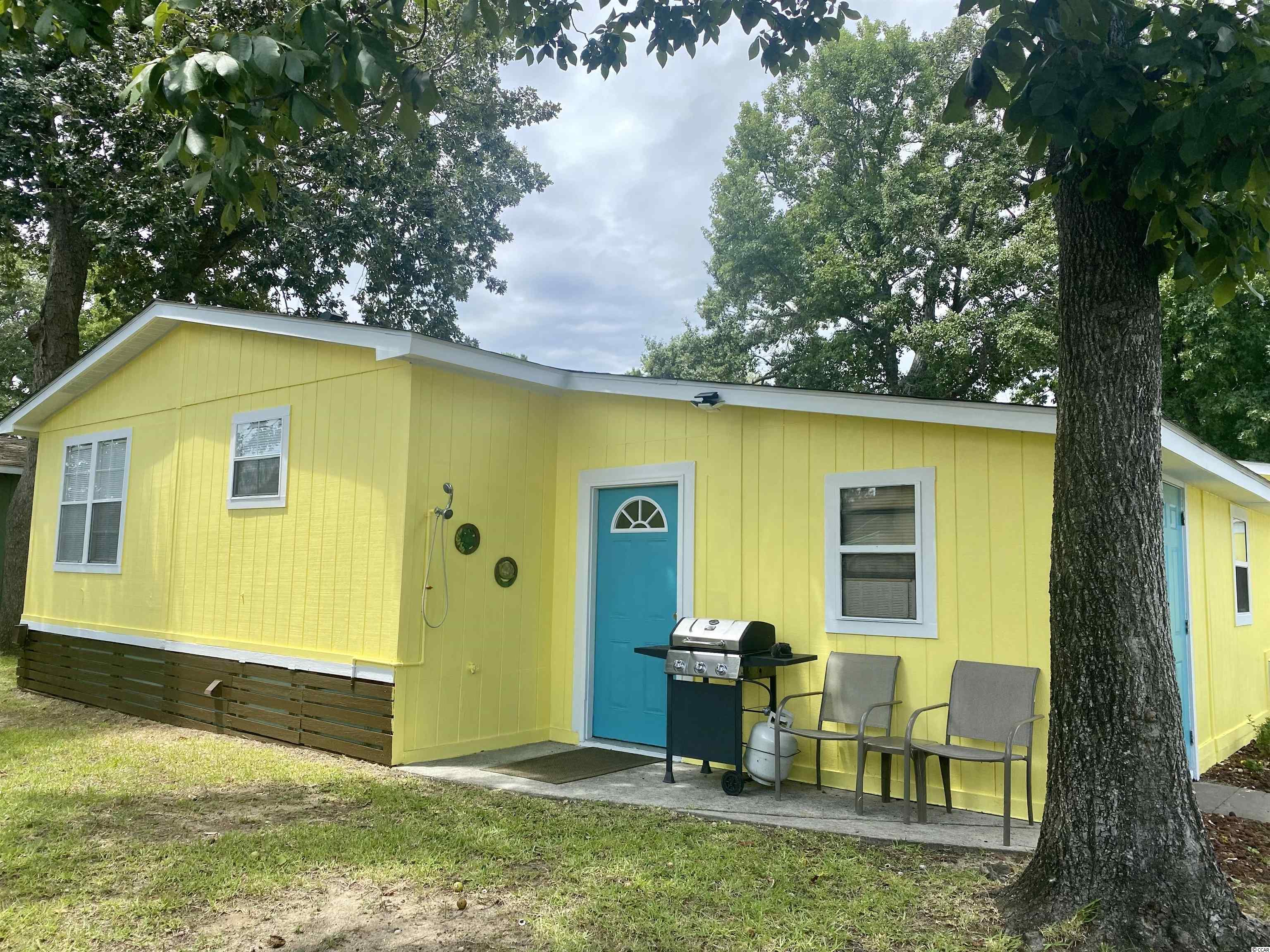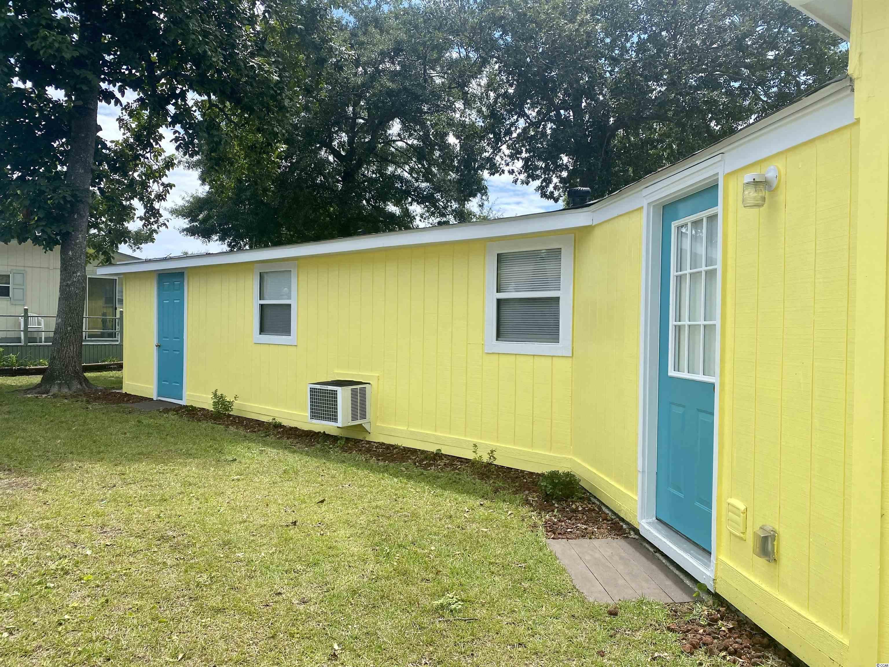 This well maintained home is located east of 17 inside the gated golf cart community of Oceanside Village. Located on a larger lot with beautiful mature trees. This home encompasses 3 bedrooms, 2 baths and a studio apartment . This home features an all seasons porch where you are sure to spend most of your time. The studio apartment is equipped with a small kitchenette with mini frig, microwave, and large toaster oven as well as seperate entrance. Updates include laminate flooring in main living areas, roof 2021, home has been encapsulated, and much more. Oceanside Village offers something for everyone inlcuding indoor & outdoor pools,kids splash pad, tennis, bocce & pickle ball, bark park,private beach front parking and much more!