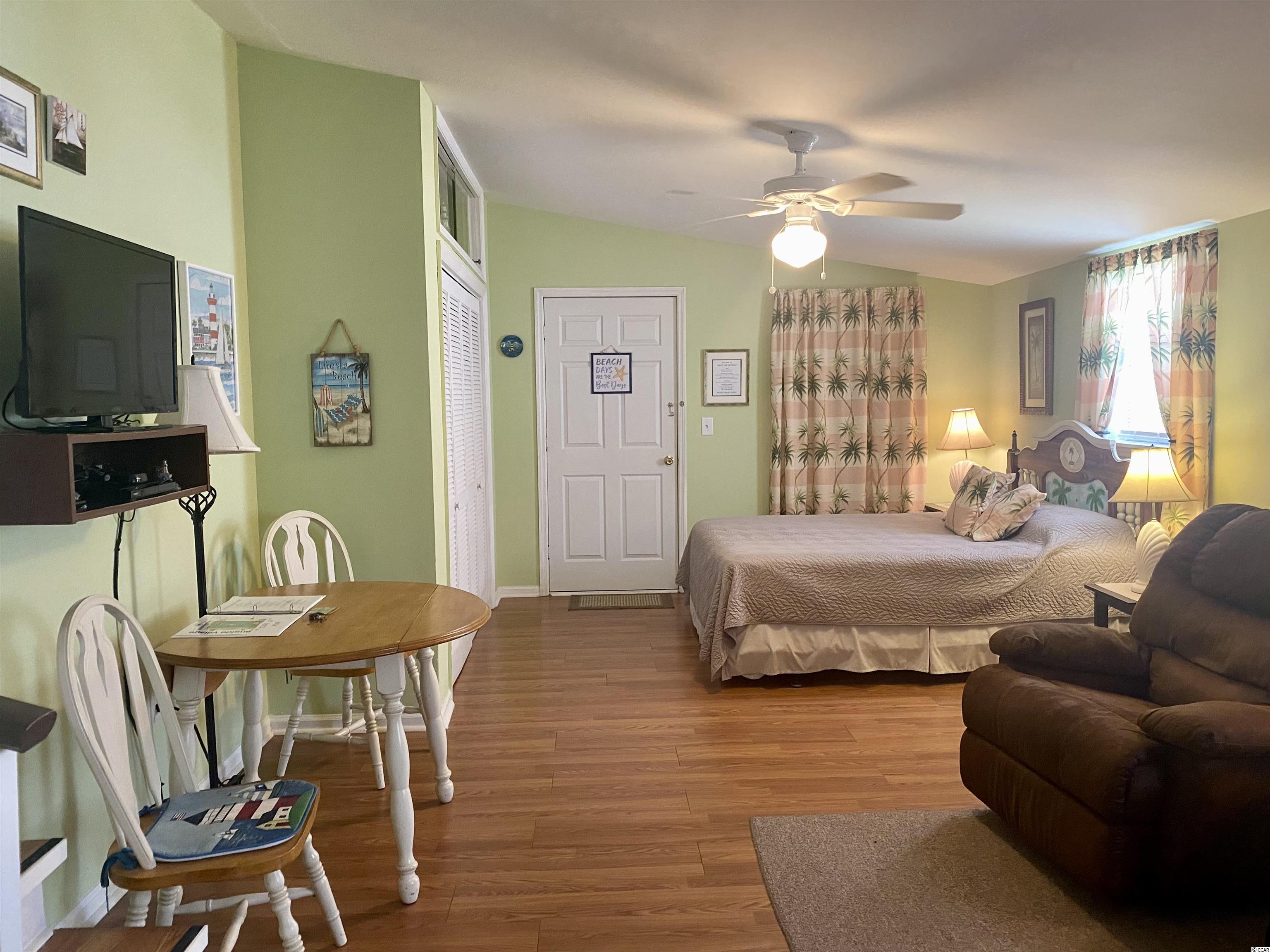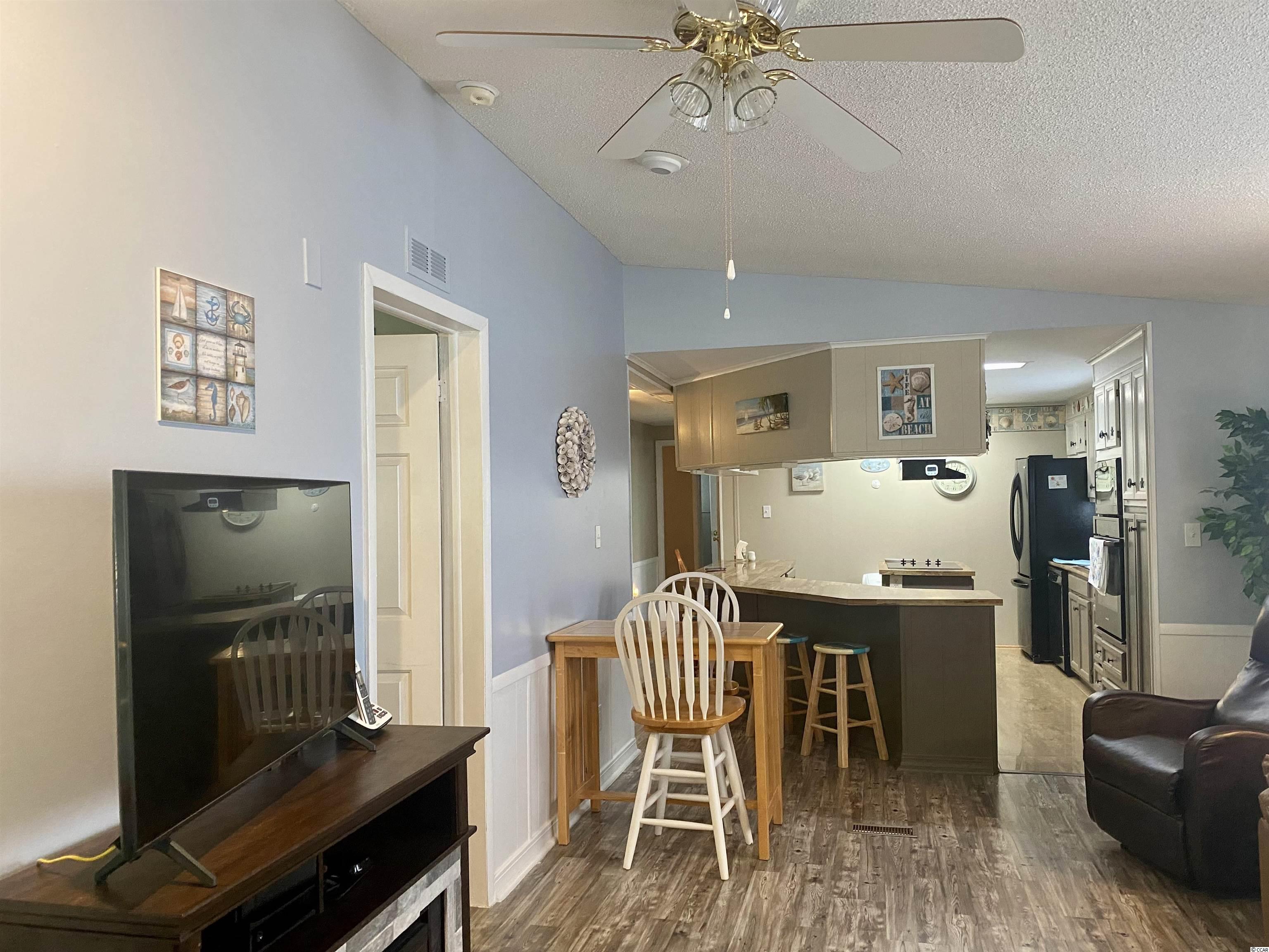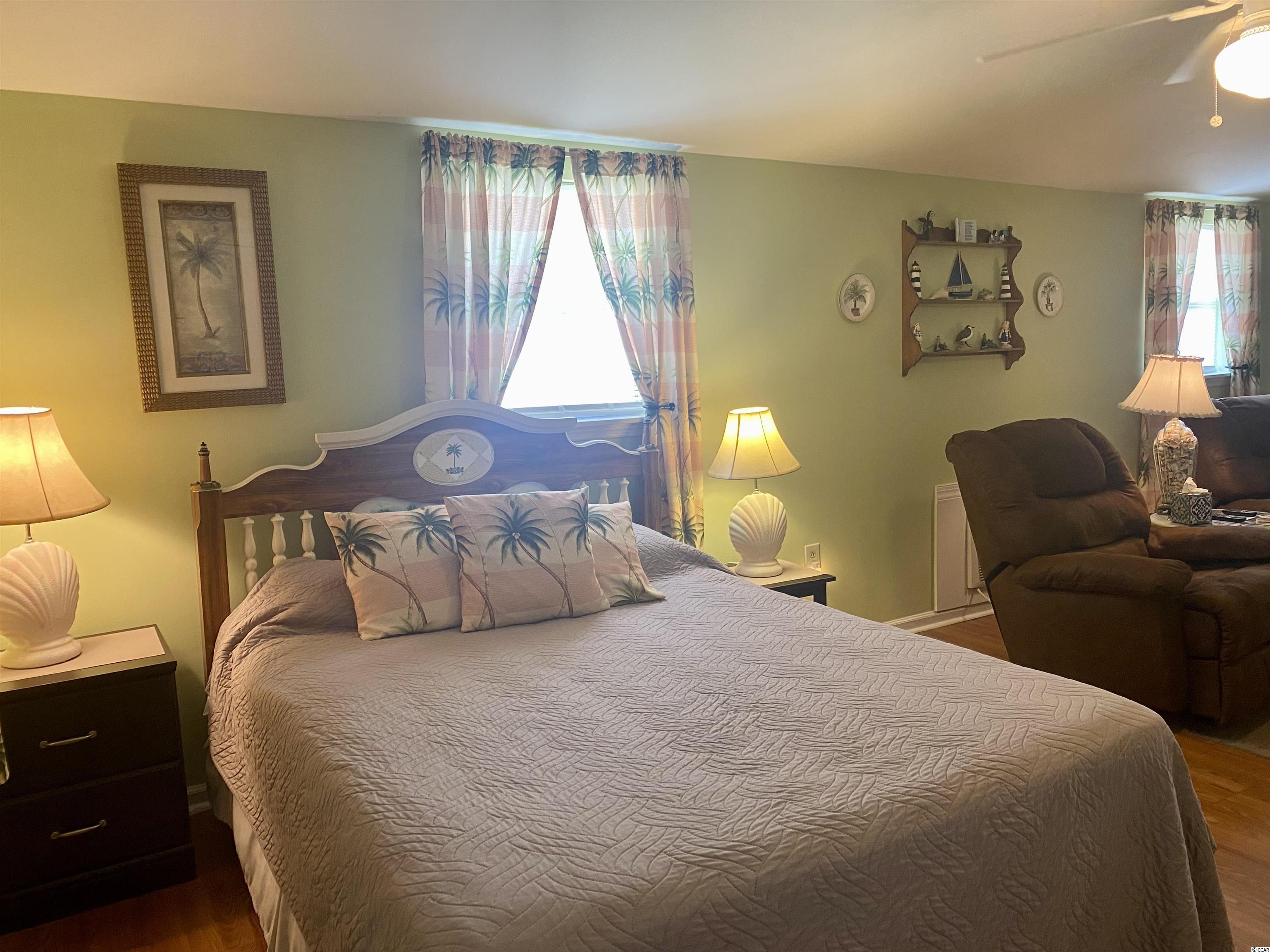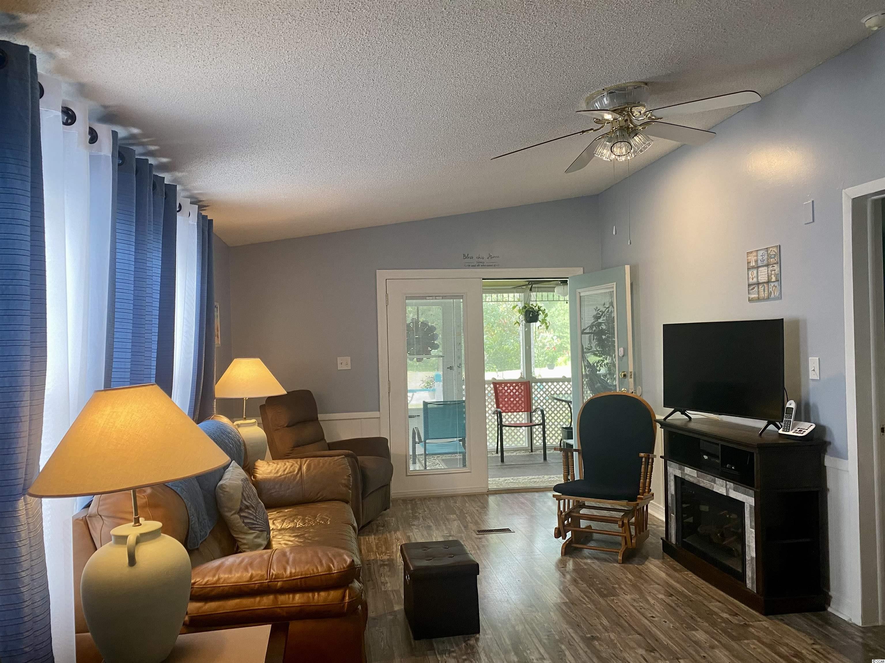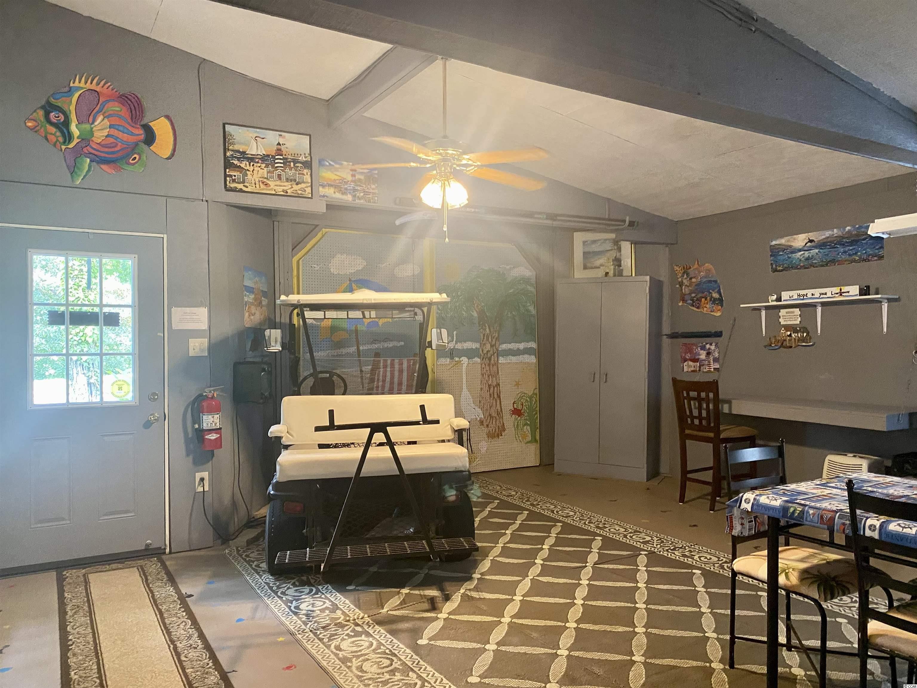 This well maintained home is located east of 17 inside the gated golf cart community of Oceanside Village. Located on a larger lot with beautiful mature trees. This home encompasses 3 bedrooms, 2 baths and a studio apartment . This home features an all seasons porch where you are sure to spend most of your time. The studio apartment is equipped with a small kitchenette with mini frig, microwave, and large toaster oven as well as seperate entrance. Updates include laminate flooring in main living areas, roof 2021, home has been encapsulated, and much more. Oceanside Village offers something for everyone inlcuding indoor & outdoor pools,kids splash pad, tennis, bocce & pickle ball, bark park,private beach front parking and much more!