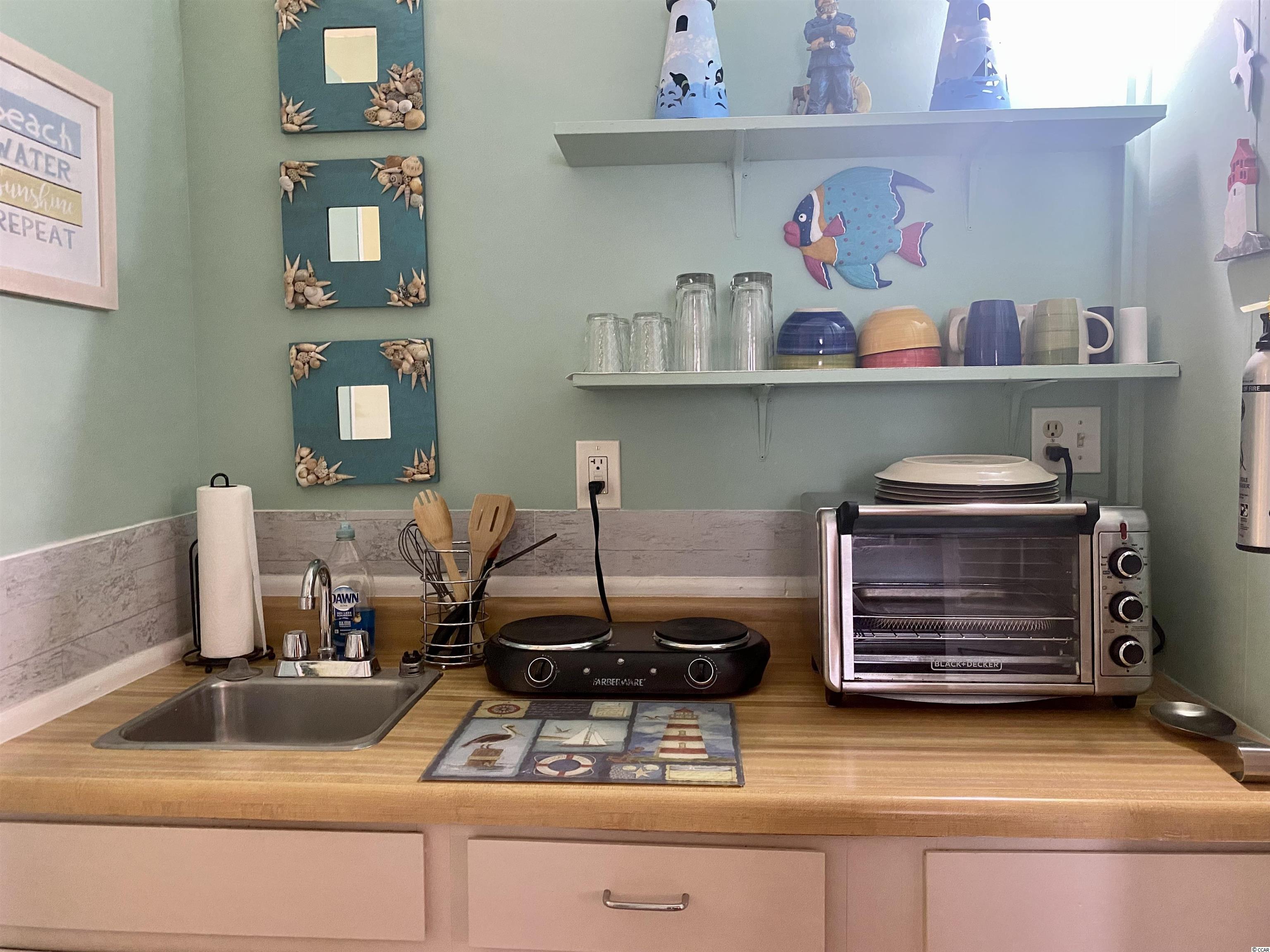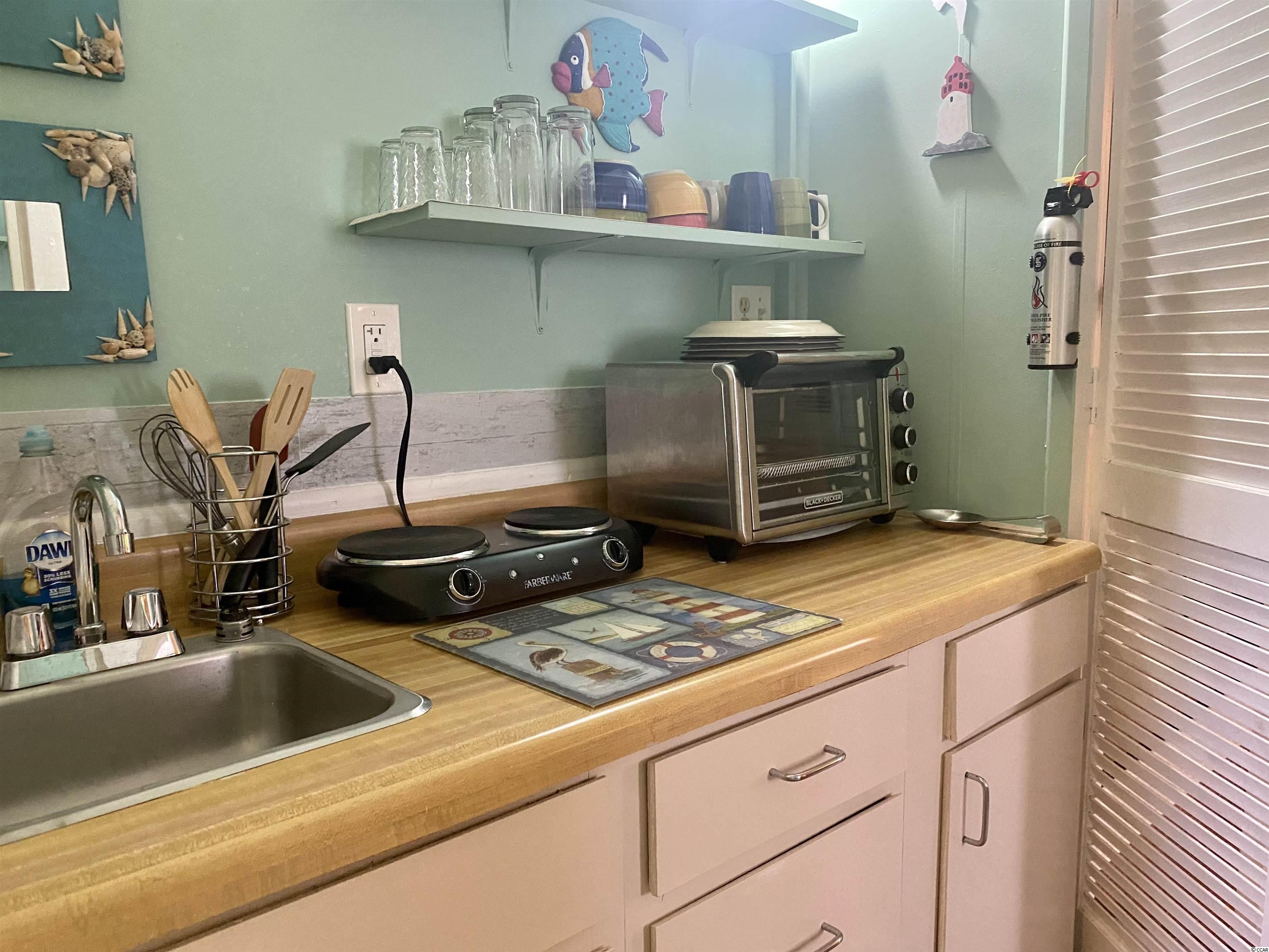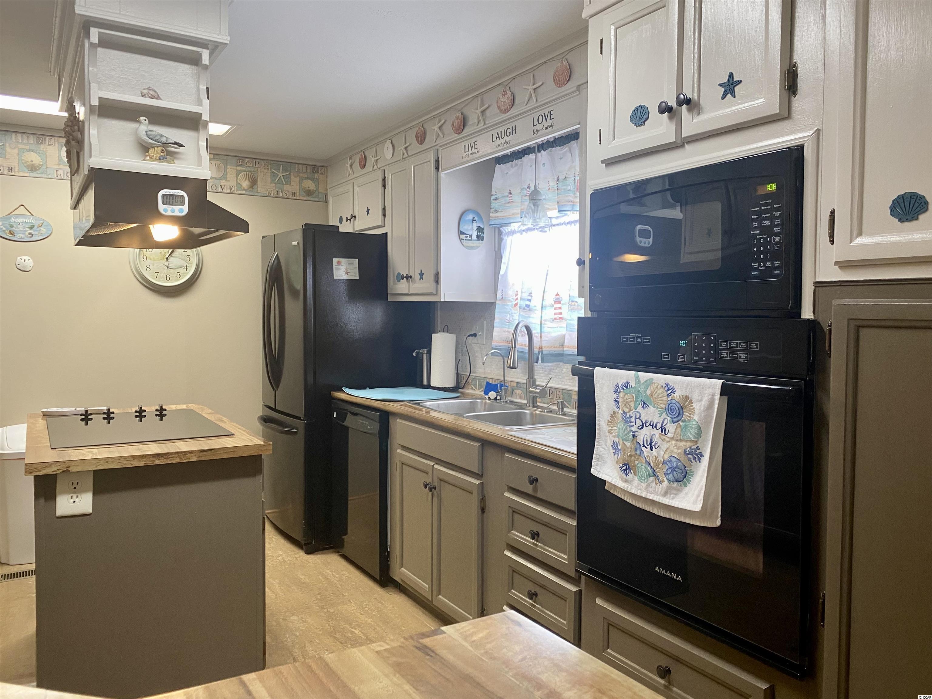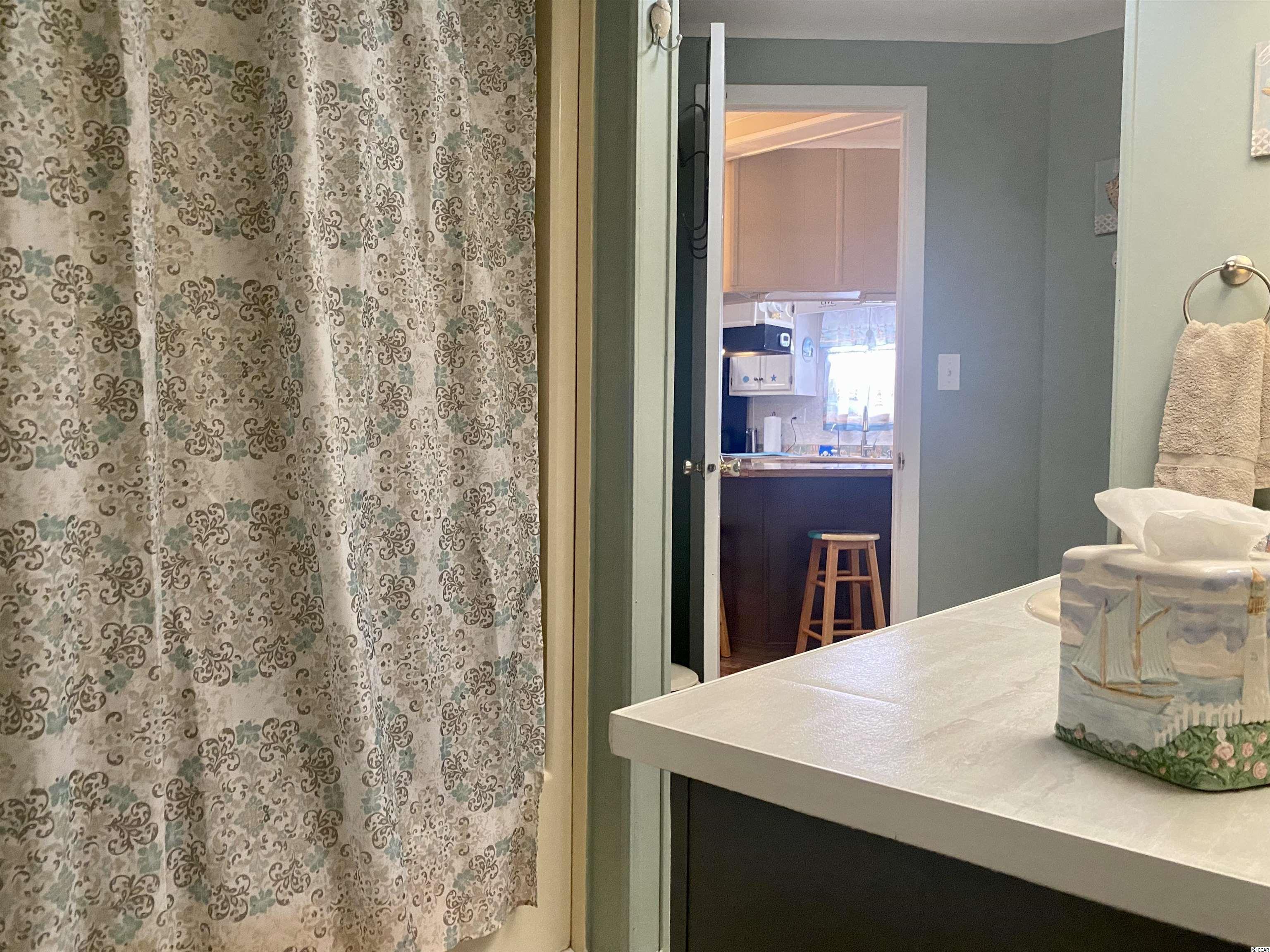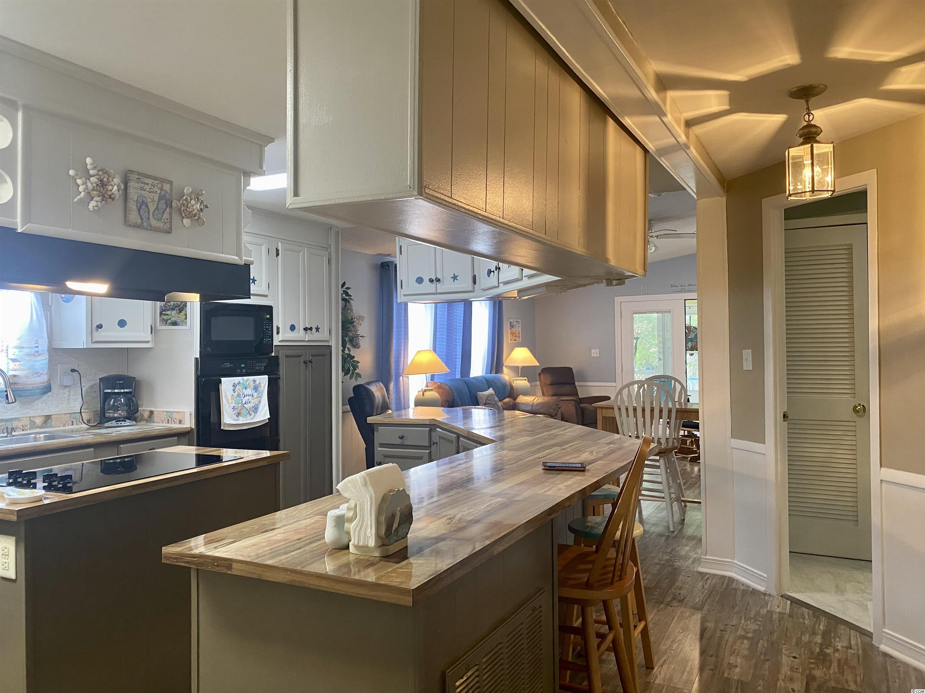 This well maintained home is located east of 17 inside the gated golf cart community of Oceanside Village. Located on a larger lot with beautiful mature trees. This home encompasses 3 bedrooms, 2 baths and a studio apartment . This home features an all seasons porch where you are sure to spend most of your time. The studio apartment is equipped with a small kitchenette with mini frig, microwave, and large toaster oven as well as seperate entrance. Updates include laminate flooring in main living areas, roof 2021, home has been encapsulated, and much more. Oceanside Village offers something for everyone inlcuding indoor & outdoor pools,kids splash pad, tennis, bocce & pickle ball, bark park,private beach front parking and much more!