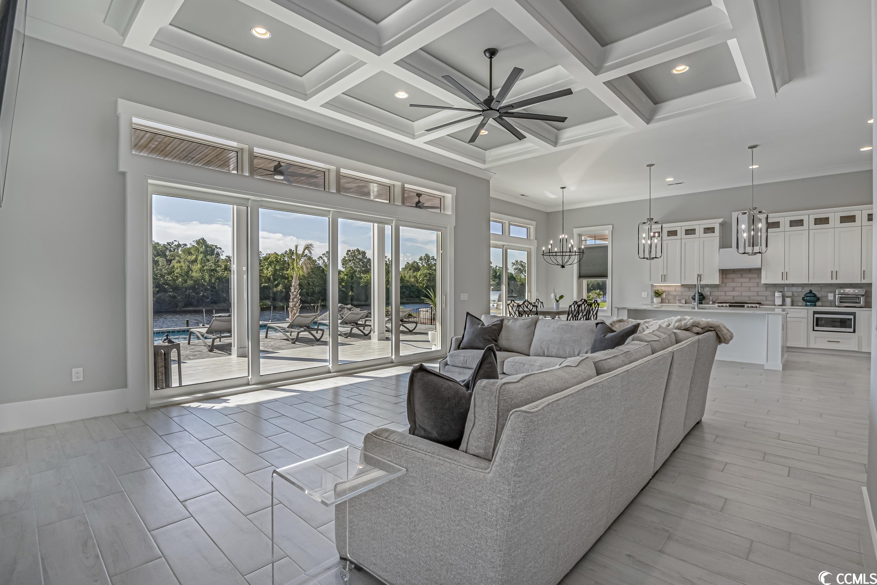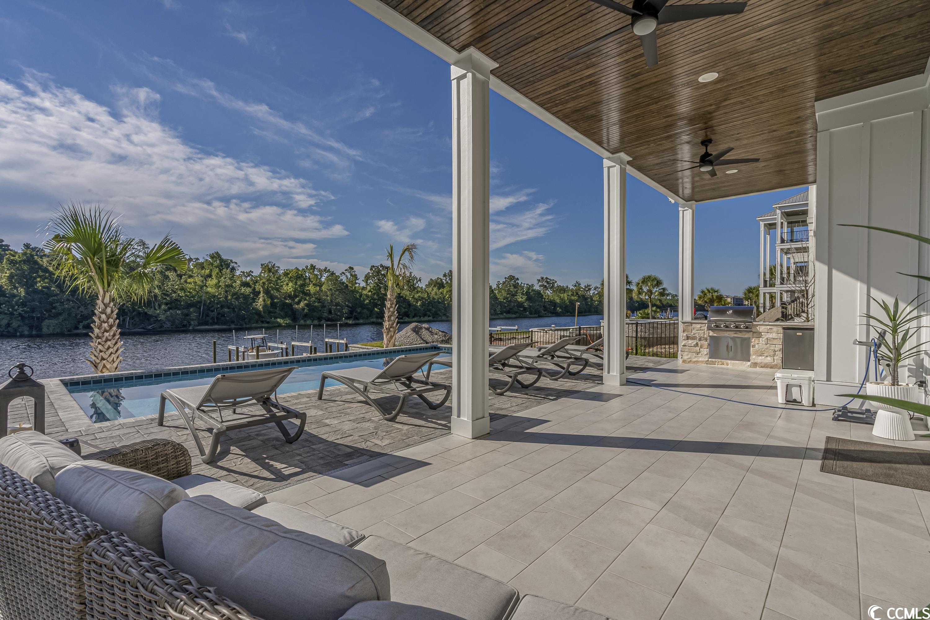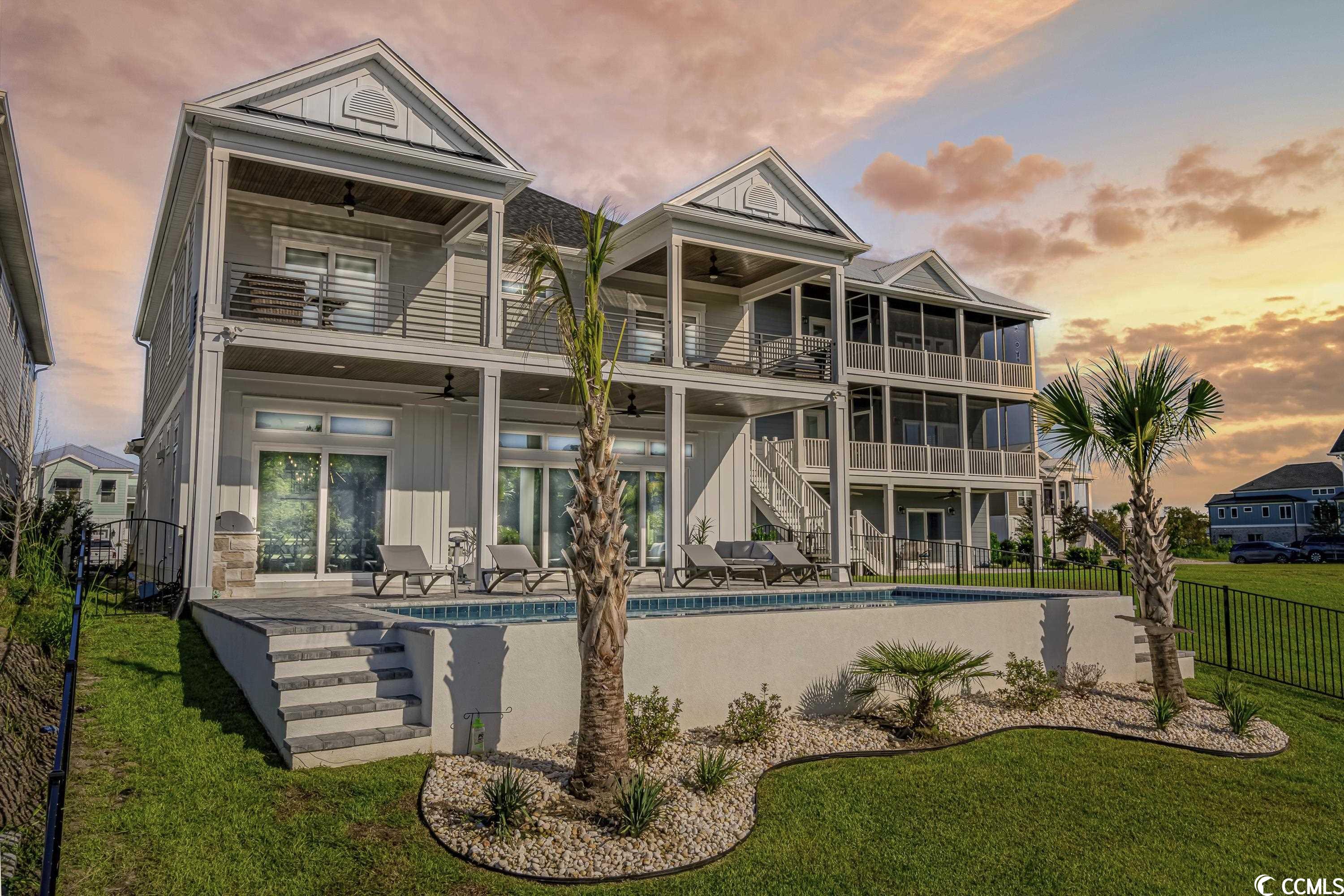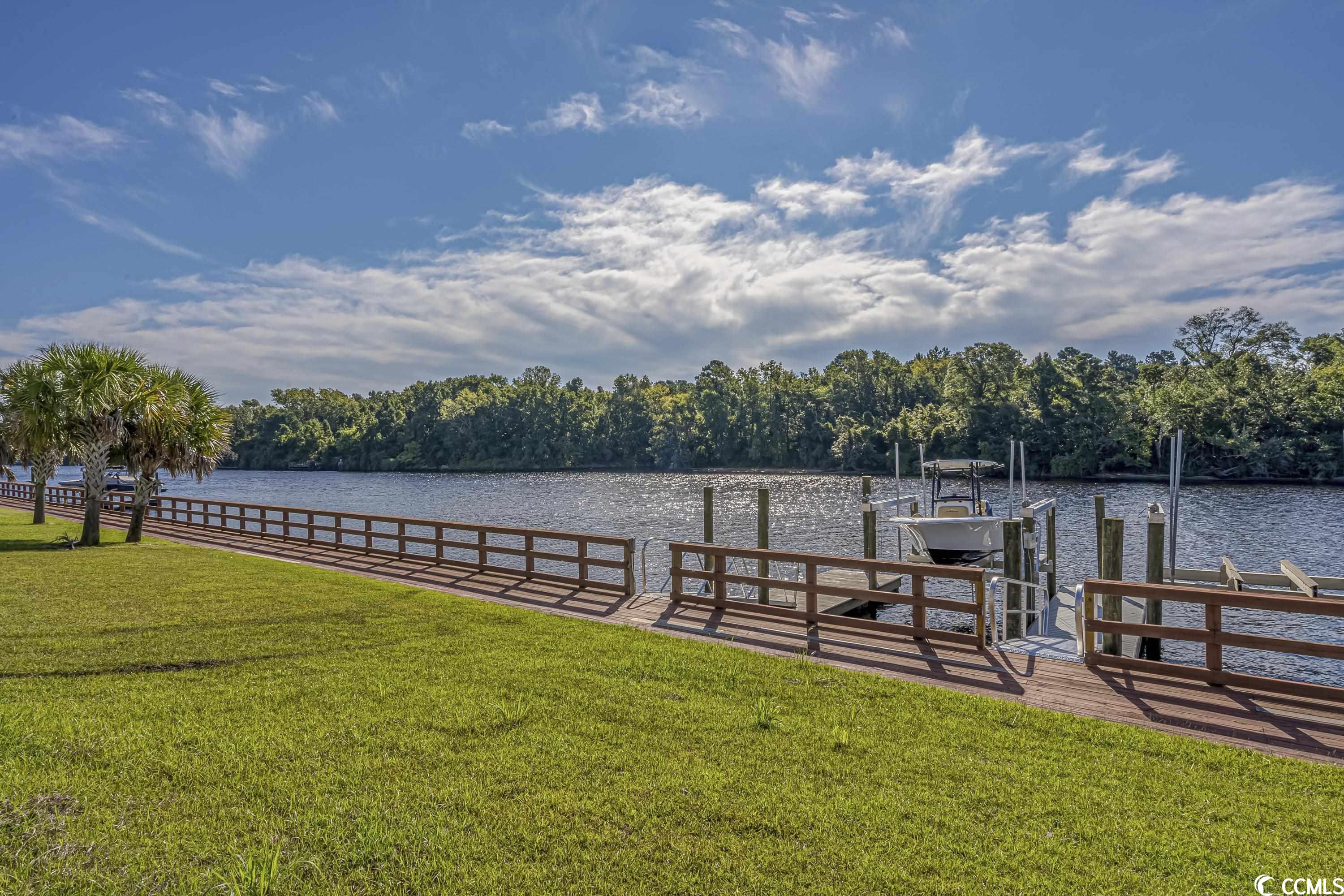 Absolutely stunning 5 bedroom 4.5 bath custom built home that has it all! Built in 2021! This home is located directly on the Intracoastal Waterway in the prestigious & gated community of Boardwalk on the Waterway. This captivating home has stunning views of the waterway in both directions from your dual covered and tiled 12X40 decks and porches! Enjoy your open floor plan with waterway views from almost every room in the home. Between the outdoor cooking and entertaining area, salt water pool overlooking the waterway, boat dock with an electric lift you will live everyday like you are on vacation! The gorgeouskitchen is any chef's dream with luxury white and brushed bronze Cafe' Collection appliances, quartz countertops, custom cabinetry and large walk-in pantry. First floor ceilings are 14' with custom trimming including coffered ceiling with a modern fireplace in the main living area.The downstairs features a guest master suite with built in closets and a beautifully designed modern walk-in shower. Additional guest room/office is located in front of the unique custom wine rack. Walking upstairs you can't help but notice that all 3 bedrooms are on suites! Every bathroom is finished with tile and includes built in closets. The master includes a sliding glass door showcasing the view of the Intercoastal Waterway. The master also boasts double tray ceilings, 3 closets, double vanity sinks with a make-up corner, a rain shower, and a beautiful freestanding tub with custom light fixtures throughout. The Boardwalk on the Waterway community includes a boardwalk running the full length of the community on the Intracoastal Waterway, gazebo, private boat ramp, day dock, and gated outdoor boat storage. This home affords you easy access to the beach and golfing along with all of the other activities Myrtle Beach has to offer including fun eateries, award winning shows and shopping. Conveniently located to your everyday needs, including grocery stores, banks, post offices, medical centers and doctors' offices.