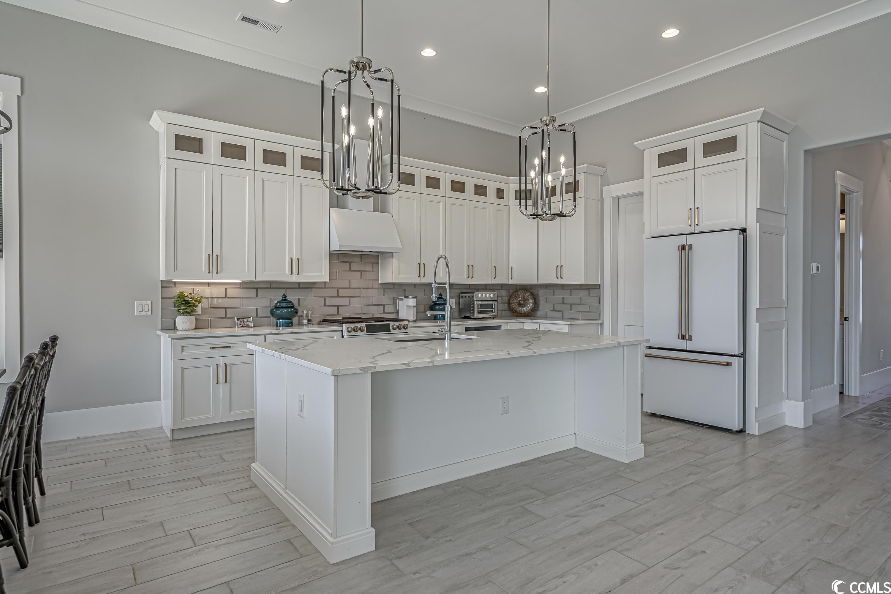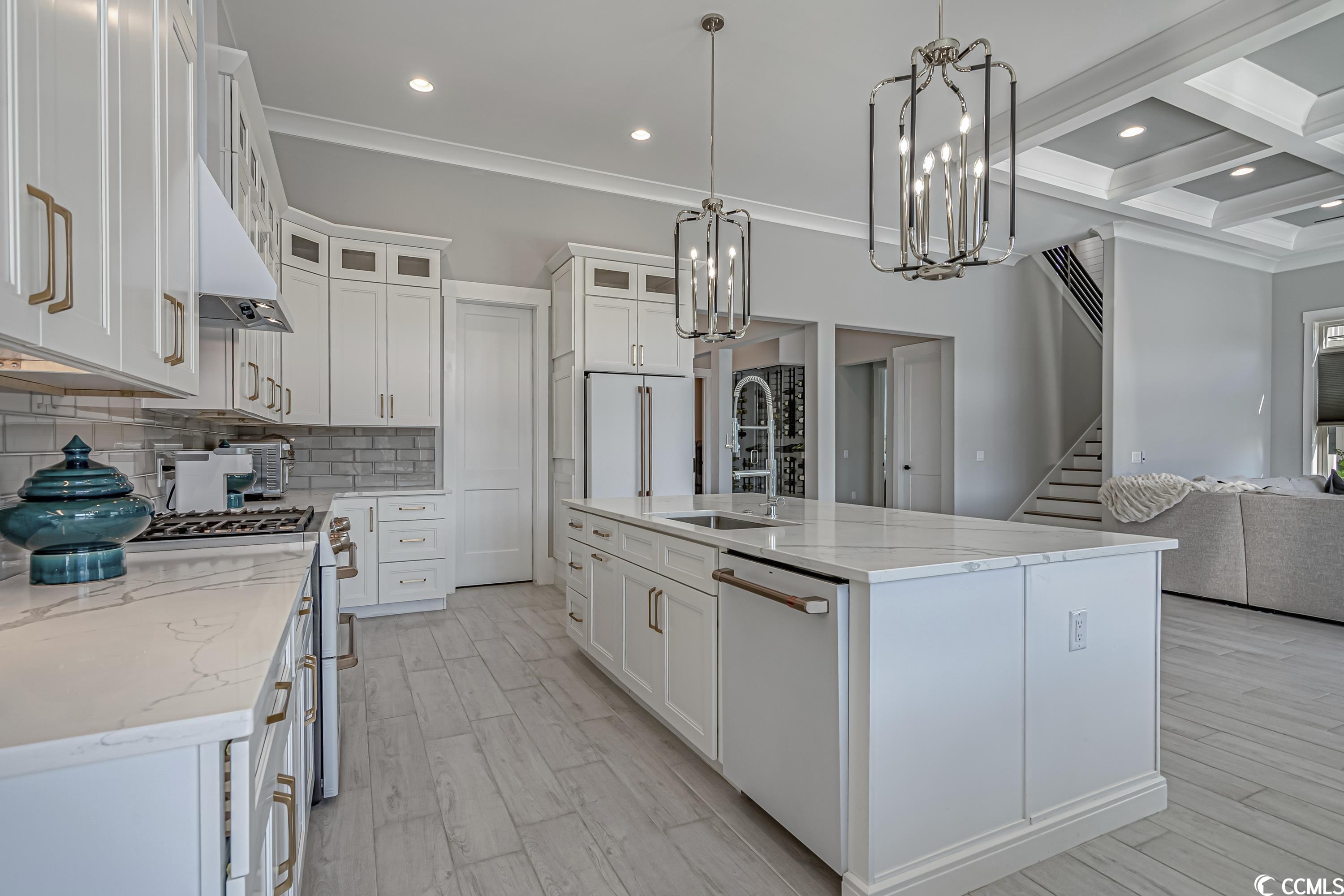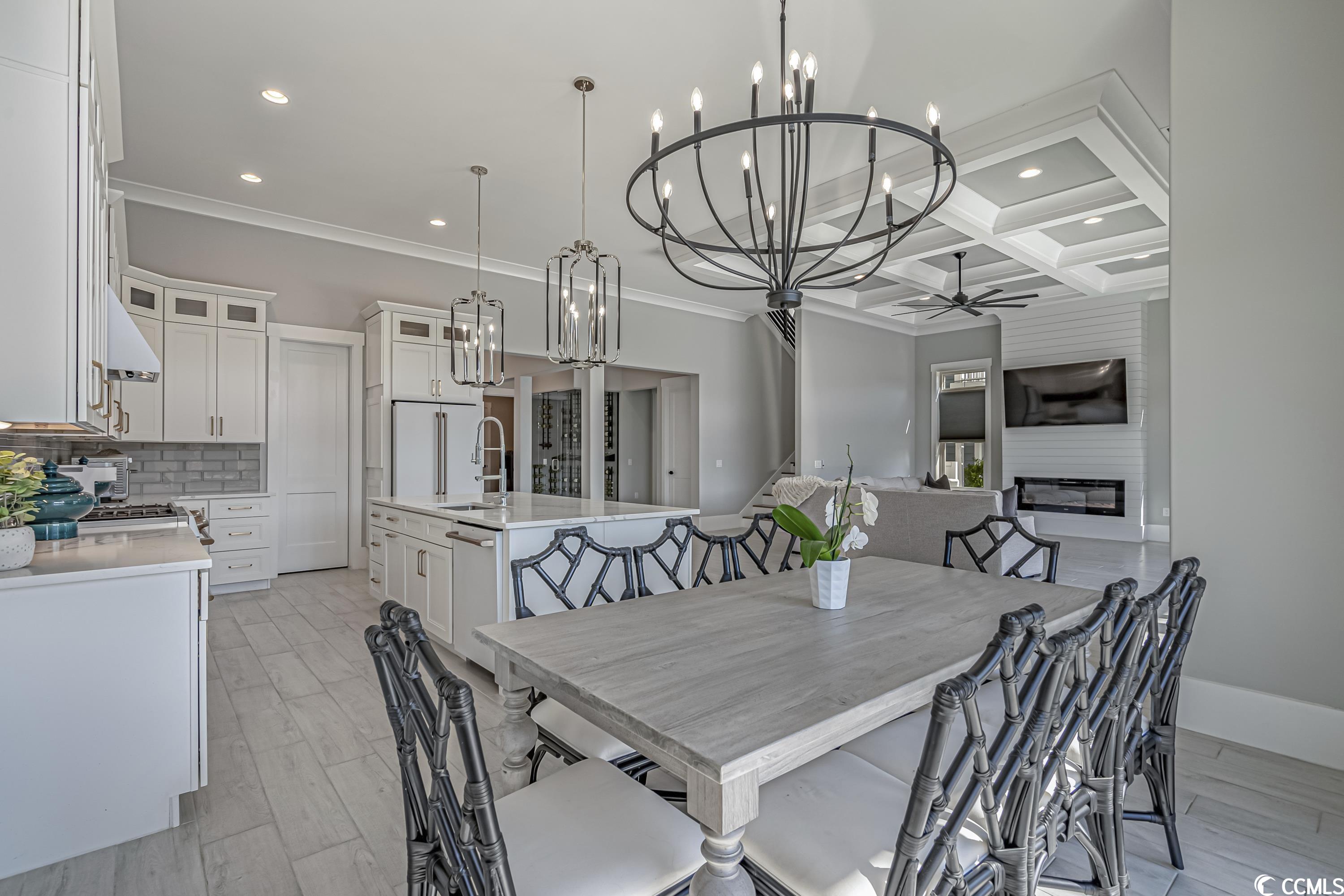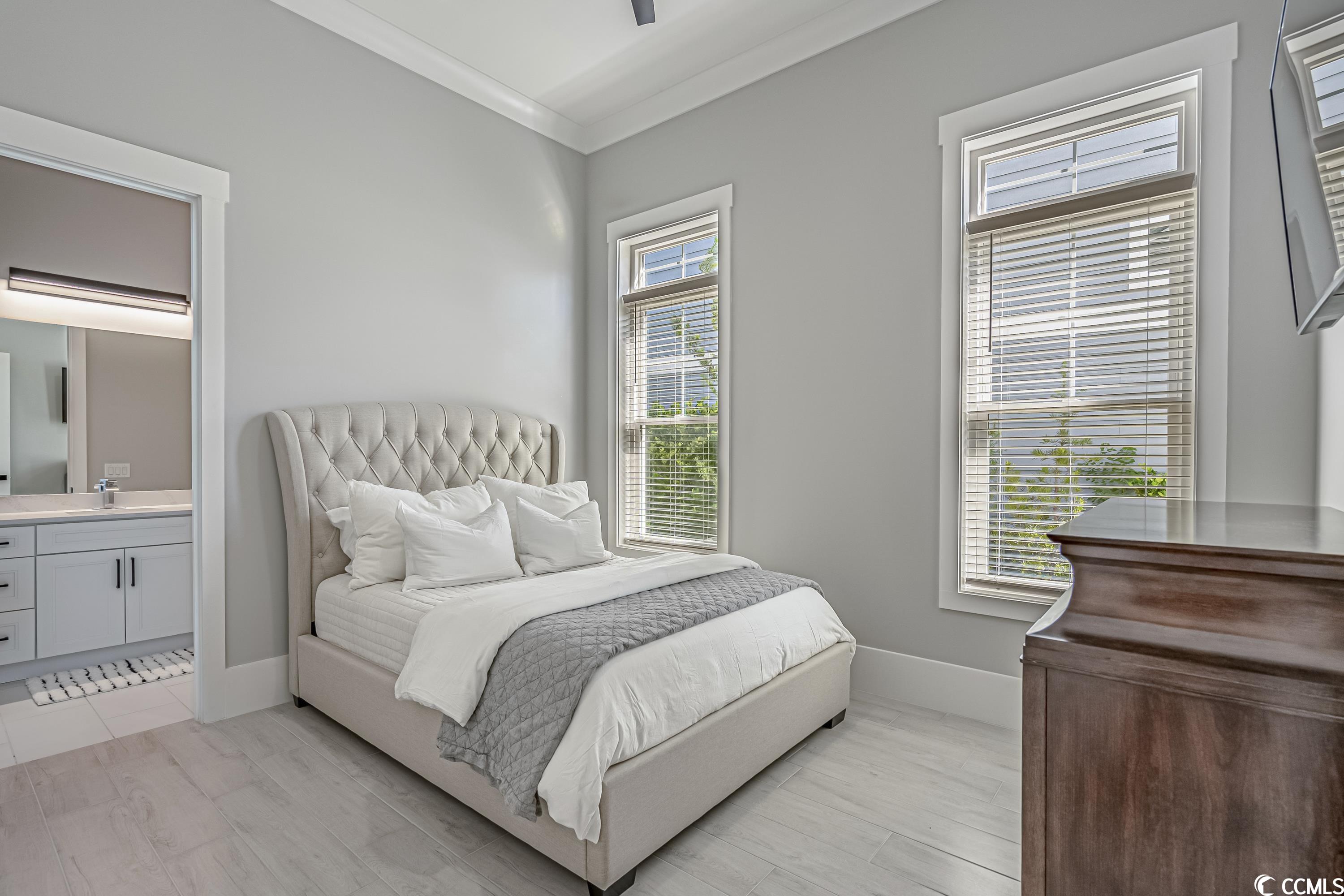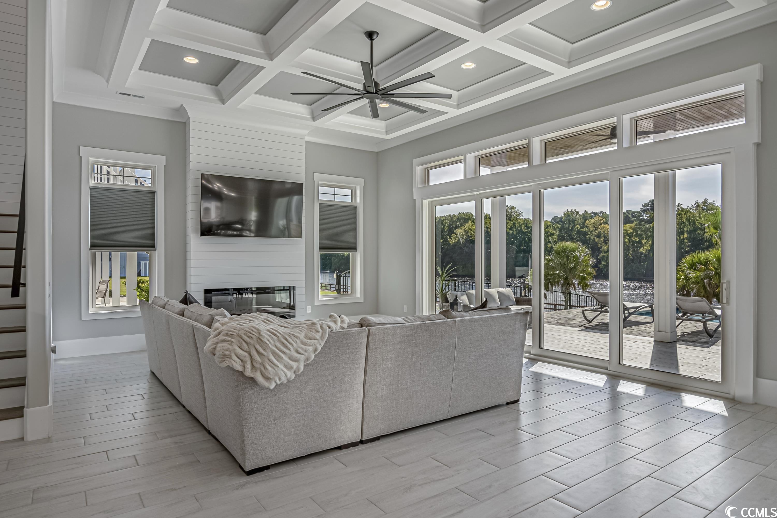 Absolutely stunning 5 bedroom 4.5 bath custom built home that has it all! Built in 2021! This home is located directly on the Intracoastal Waterway in the prestigious & gated community of Boardwalk on the Waterway. This captivating home has stunning views of the waterway in both directions from your dual covered and tiled 12X40 decks and porches! Enjoy your open floor plan with waterway views from almost every room in the home. Between the outdoor cooking and entertaining area, salt water pool overlooking the waterway, boat dock with an electric lift you will live everyday like you are on vacation! The gorgeouskitchen is any chef's dream with luxury white and brushed bronze Cafe' Collection appliances, quartz countertops, custom cabinetry and large walk-in pantry. First floor ceilings are 14' with custom trimming including coffered ceiling with a modern fireplace in the main living area.The downstairs features a guest master suite with built in closets and a beautifully designed modern walk-in shower. Additional guest room/office is located in front of the unique custom wine rack. Walking upstairs you can't help but notice that all 3 bedrooms are on suites! Every bathroom is finished with tile and includes built in closets. The master includes a sliding glass door showcasing the view of the Intercoastal Waterway. The master also boasts double tray ceilings, 3 closets, double vanity sinks with a make-up corner, a rain shower, and a beautiful freestanding tub with custom light fixtures throughout. The Boardwalk on the Waterway community includes a boardwalk running the full length of the community on the Intracoastal Waterway, gazebo, private boat ramp, day dock, and gated outdoor boat storage. This home affords you easy access to the beach and golfing along with all of the other activities Myrtle Beach has to offer including fun eateries, award winning shows and shopping. Conveniently located to your everyday needs, including grocery stores, banks, post offices, medical centers and doctors' offices.
