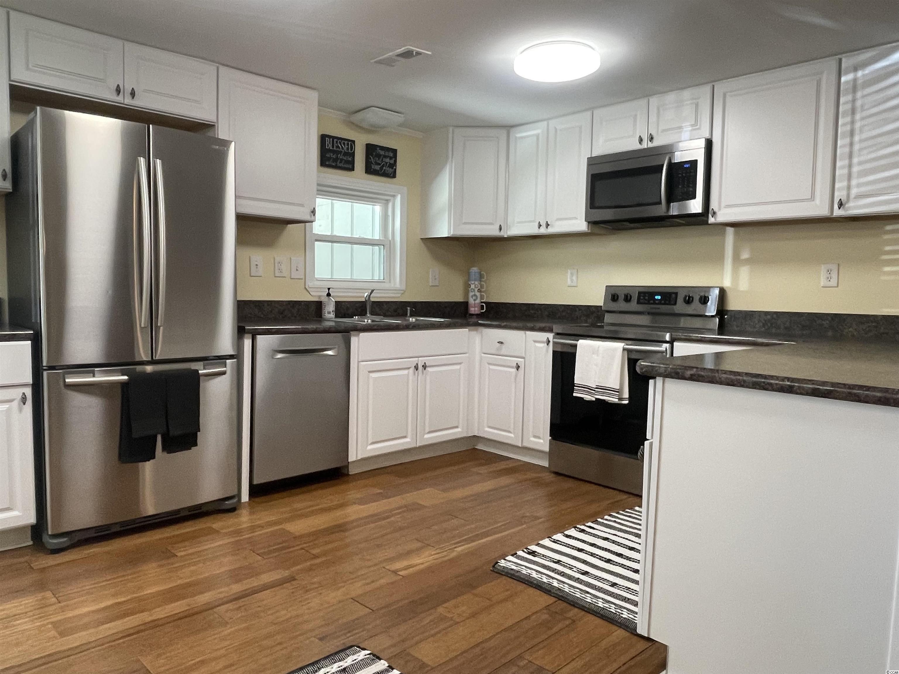 Expansive home perfectly situated close to park and indoor pool. Just a short golf cart ride to the beach. Many updates including HVAC. Hot water heater, washer and dryer new roof, windows, doors, bamboo flooring, kitchen cabinets, stainless appliances, remodeled bathrooms, and gutters. Can be used as a vacation rental. Oceanside village is a golf cart gated resort community consisting of 180 acres and an abundance of amenities, including private beachfront parking, indoor heated pool, 2 outdoor pools, splash park, hot tub, dog park, pickleball, bocce and tennis courts, playground, fitness center, library, ponds for fishing that are stocked every 2 years, large community center with year round activities of yoga, crafts, dances, and many wonderful ways to meet and greet along with the comfort of a gated community with 24/7 security. Short and long term rentals allowed.