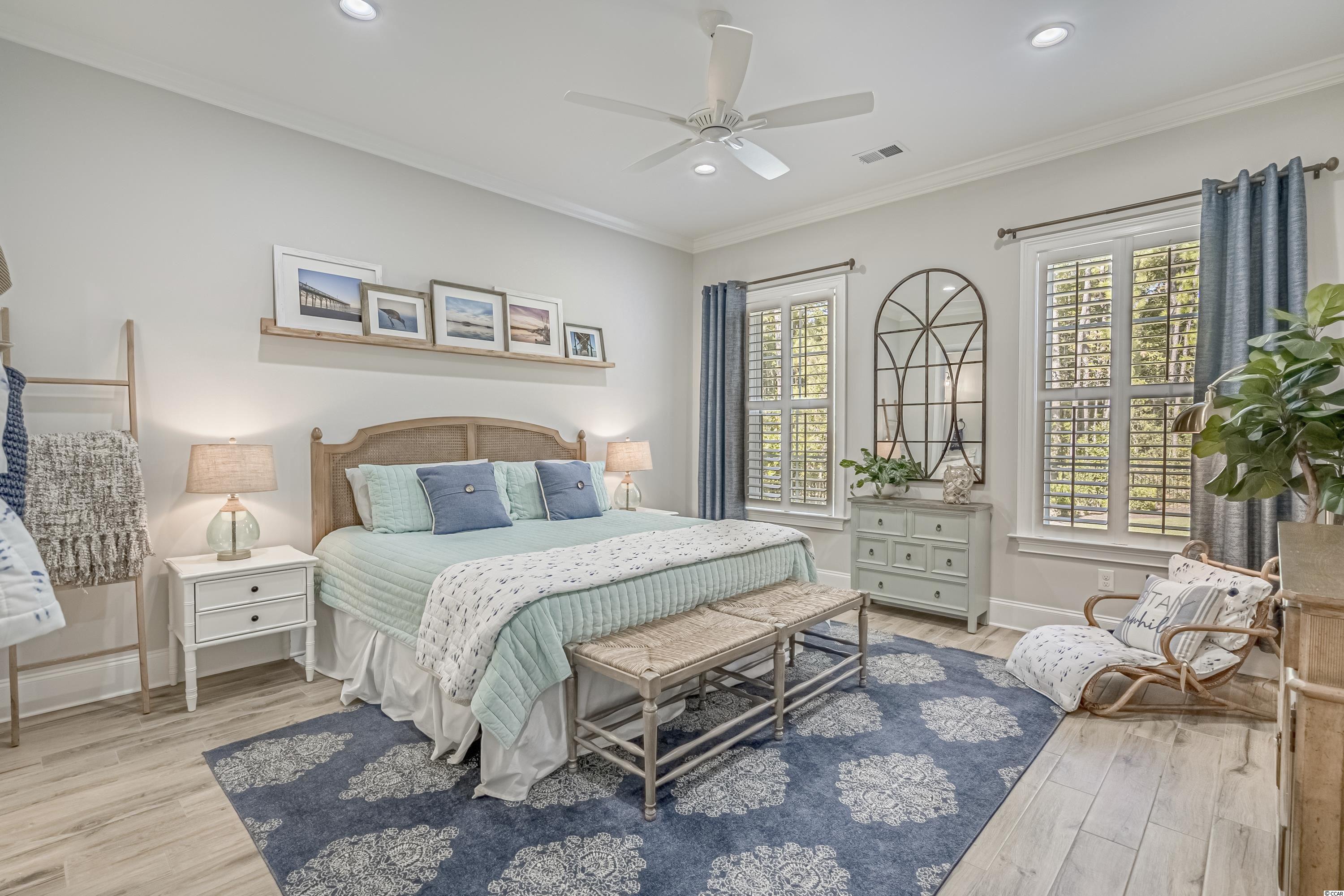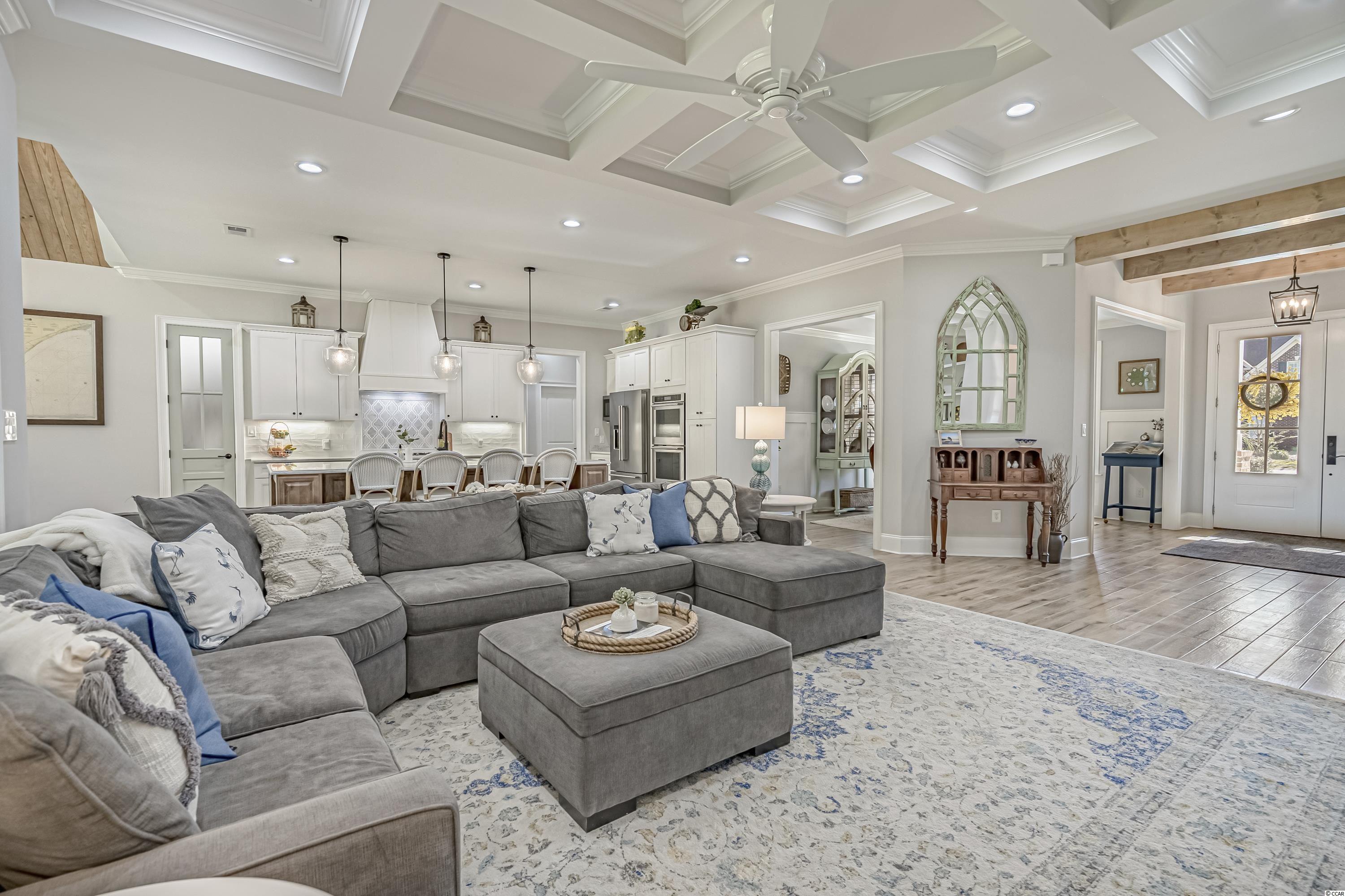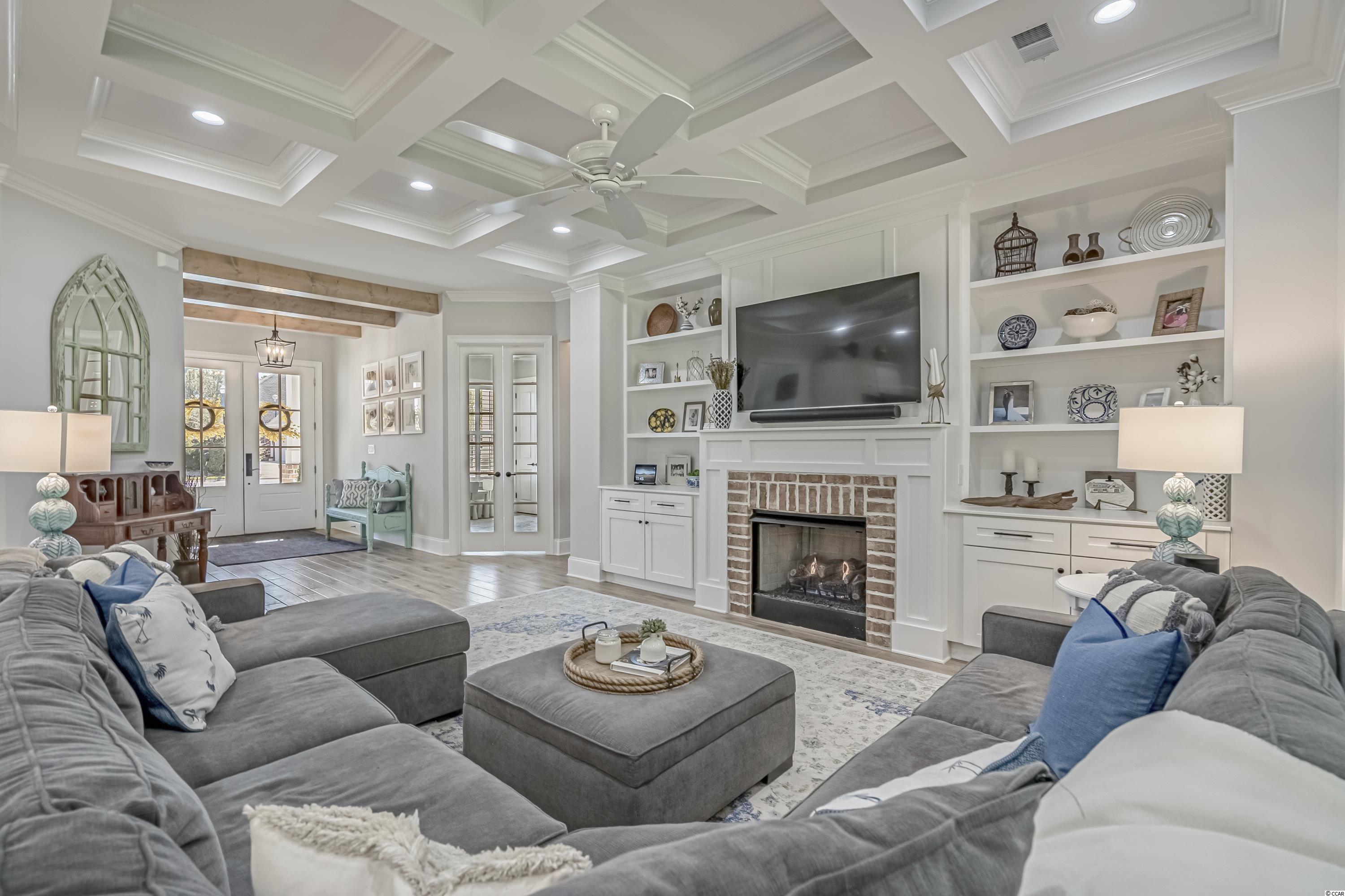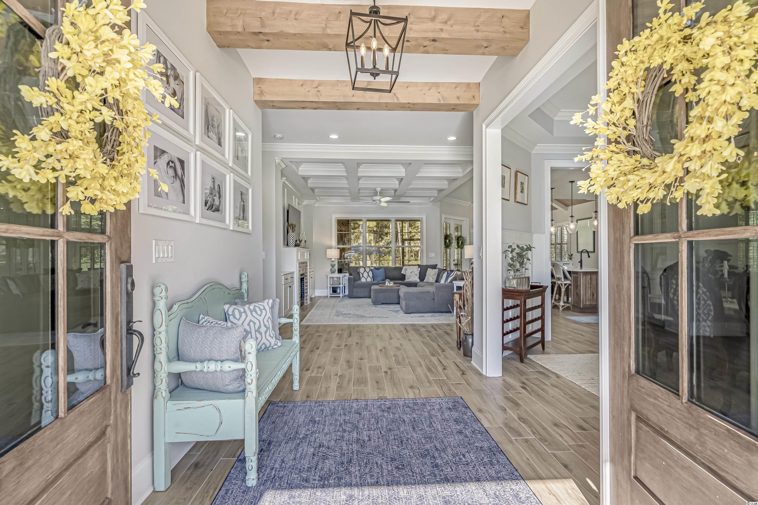 WOW! This impeccably maintained lowcountry home combines traditional elements with modern finishes for a balanced and cohesive design. You are greeted with 10 foot ceilings in the foyer, leading you to an open concept floor plan with custom details throughout. From the gas fireplaces with brick accents, cofferred ceilings and cathedral ceilings with timeless wood details, 10x5 island with quartz counters, bright windows welcoming the natural light, you find upgrades in every corner. A Guest suite, office/playroom, formal dining room, beautiful powder room, mudroom with thoughtful storage, and screened in patio leading to a large fenced in yard complete your first floor living. Walk up the beautiful staircase to the master suite, 3 more bedrooms with fantastic closet space, and 26x12 bonus room. This impeccable home was custom built only 2 years ago and love shines through every detail! Attached 2.5 car garage is large enough to keep long SUVs, a golf cart to whip around the community, and still allow plenty of storage. Plantation Lakes offers miles of beautiful lakes and walking paths, pools, tennis courts, and a community center. Throw your paddle board or kayak in the water and cruise your neighborhood any time! This community is just a couple miles from schools, shopping, dining, medical offices, and about 12 minute drive to the sparkling Atlantic Ocean.