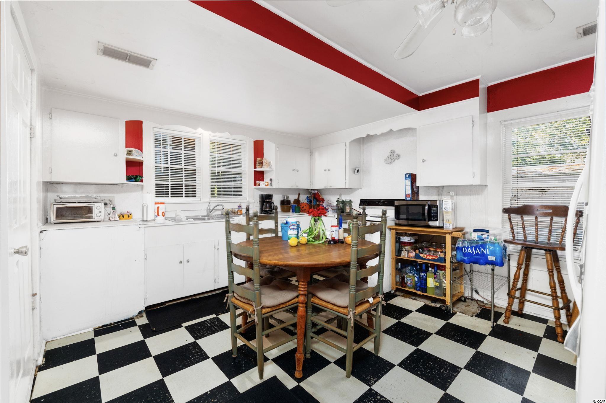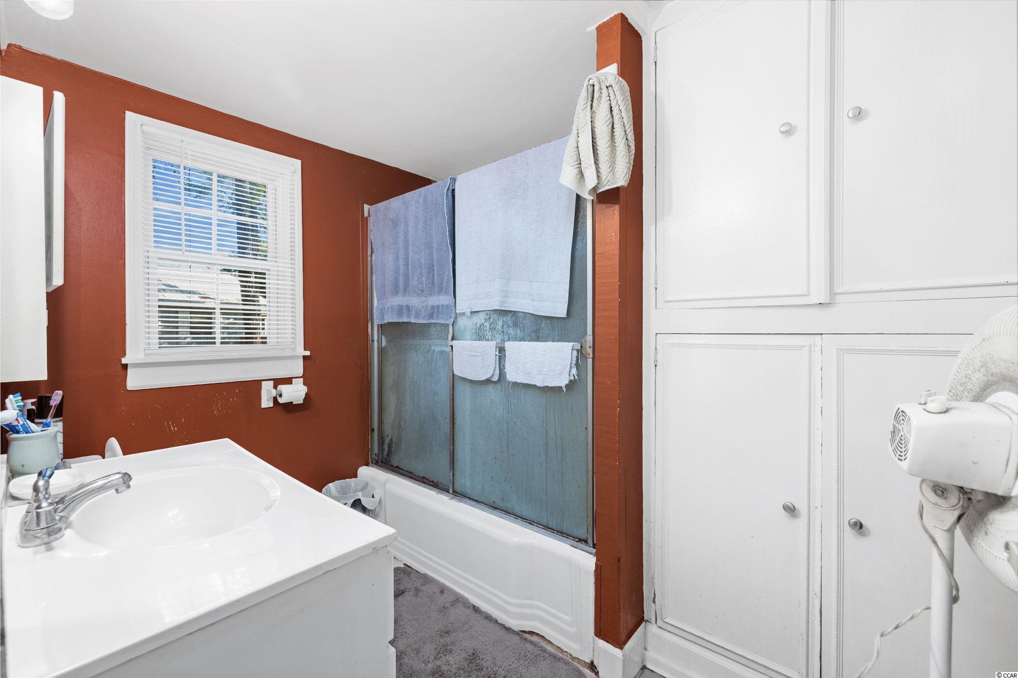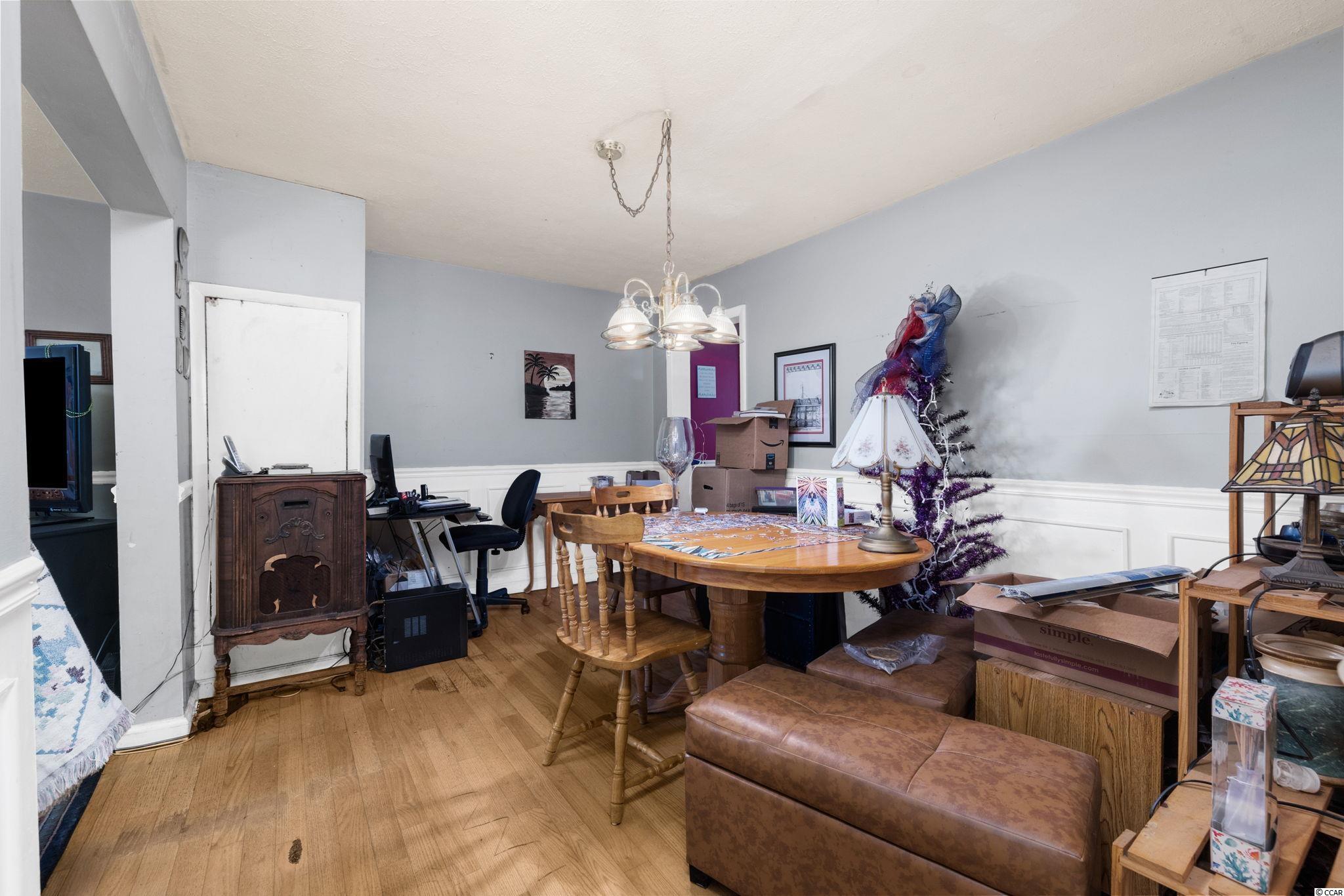 ESTATE SALE !! Check out this UNIQUE property located in the highly-desirable Murrells Inlet area only 1 mile from the famous Marshwalk (you can walk or take your golf cart to all of the fun and excitement in the Marshwalk area). This 0.30 acre lot is NOT located within an HOA. This property consists of 2 structures: The main house is a single-level 3 bedroom / 2 full bathroom home with a living room, formal dining room, kitchen, and front & rear porches. This structure was built in 1936. The brick flooring at the front door entry speaks to the era in which this home was built. There are wood floors in the living room and dining room, and carpeting in the 3 BR's. The primary bedroom has an en-suite bathroom with 12"" tile floors, tub/shower combo, and a marble sink top. There are ceiling fans in the BR's, kitchen, and living room. Behind the main home, is a deep 1-car garage with 2 apartments: On the ground floor is an efficiency / 1 BA apartment with a window-wall unit for heat/air. This apartment has laminate flooring, ceiling fan, and an en-suite bathroom with a shower, sink, commode, and a vanity area. The upstairs apartment is a 1 BR / 1 BA apartment with 12"" tile floors in the kitchen and living room, carpet in the BR, 6"" tile floors in the bathroom, crown molding throughout, and ceiling fans in the living room, dining area, and BR. The kitchen in this upstairs apartment has a stove/oven, microwave, refrigerator, and a spot for a dishwasher. There's also a bar counter with this kitchen. The bedroom in this apartment is large, has access to the HUGE rear porch, and also has an en-suite bathroom with 2 sinks, a shower, and a linen closet. The hot water heater in the main house is only 2 years old (WOW moment: The hot water heater that stopped working in 2020 was installed in 1949 - it lasted 71 years !!). The HVAC system in the main house is 3 years old. The HVAC system in the garage apartment upstairs is old and the age is unknown. There is 1 water meter for both structures, but there are 2 separate electric meters and 2 separate cable outlets - one each for the main house and the upstairs apartment above the garage. The garage and 2 apartments were built in approximately 1992 according to the seller. They are in good condition. The main house is functional but could use some updating so it's a ""fixer-upper"". The seller is not aware of any major issues with the property, but since it's an estate sale, it is being sold ""AS IS"" and is reflected in the low asking price. This is a great property that can become your coastal South Carolina sanctuary in an established area away from the hustle-and-bustle of the crowds. Whether you have live-in children or parents or just like some room to spread out, there's plenty of room for everyone here. Or if you want some additional rental income while living in one part of the property, you can do that as well. Versatility, price, and a fantastic location make this one a no-brainer.