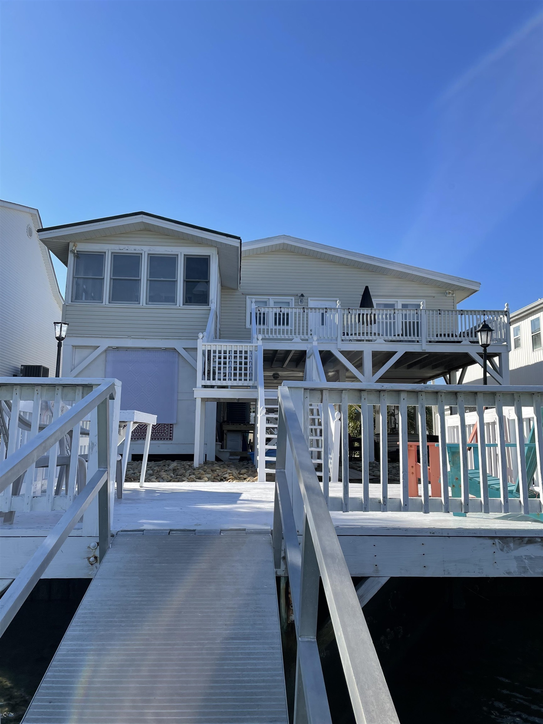 Owner Financing Available. This beautiful 5 bedroom and 4 bath channel home is now available and is being sold fully furnished. As you walk in the front door, you will be taken by the beauty of the high cathedral-stained wood ceilings. The white walls, lighted ceiling fans and elevated carriage lighting makes for a voluminous feeling in the living area. The kitchen is open to the living area and features a large breakfast bar. There are 4 bedrooms and 2 baths on this main living level. The master bedroom enjoys a private sunroom that looks over the channel and has access to the large rear balcony. All of the bedrooms are tastefully decorated and have direct access to a bathroom. From either the sunroom or the main living area you have access to a large back balcony overlooking the canal, a lower sun deck near the water and the floating dock. On the ground level there is lots of covered parking and there is an apartment with a private access. The apartment features a bedroom, a small kitchen, a living room, laundry access and a bathroom. Outside hot and cold shower. Large utility room for extra storage. Extra furniture in storage room coveys. Extra patio furniture conveys as well. Make your appointment to see this beautiful home. The roof is covered in Solar Panels and should produce enough electricity to take care of the entire bill all year long. Square footage is approximate and not guaranteed. Buyer is responsible for verification.