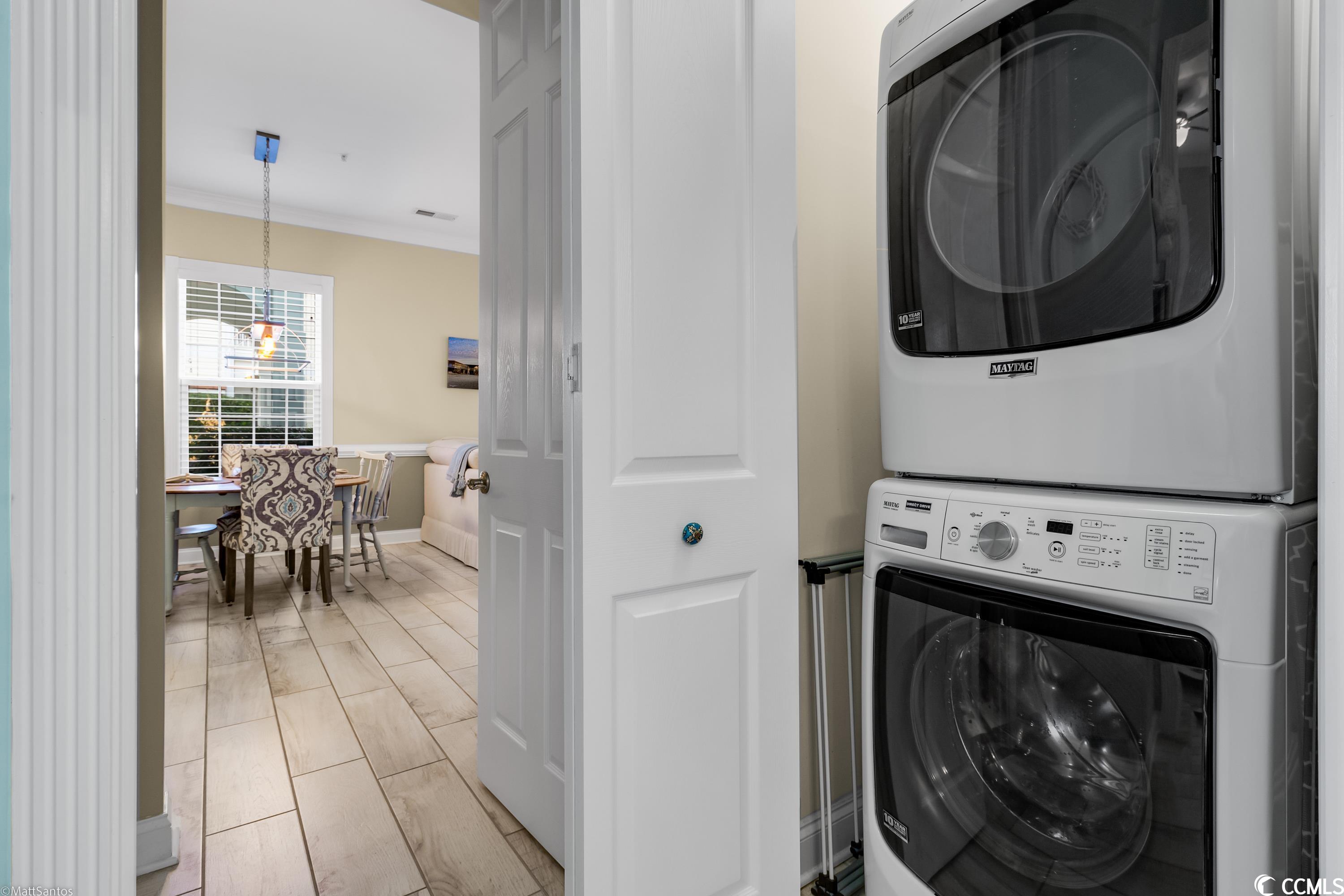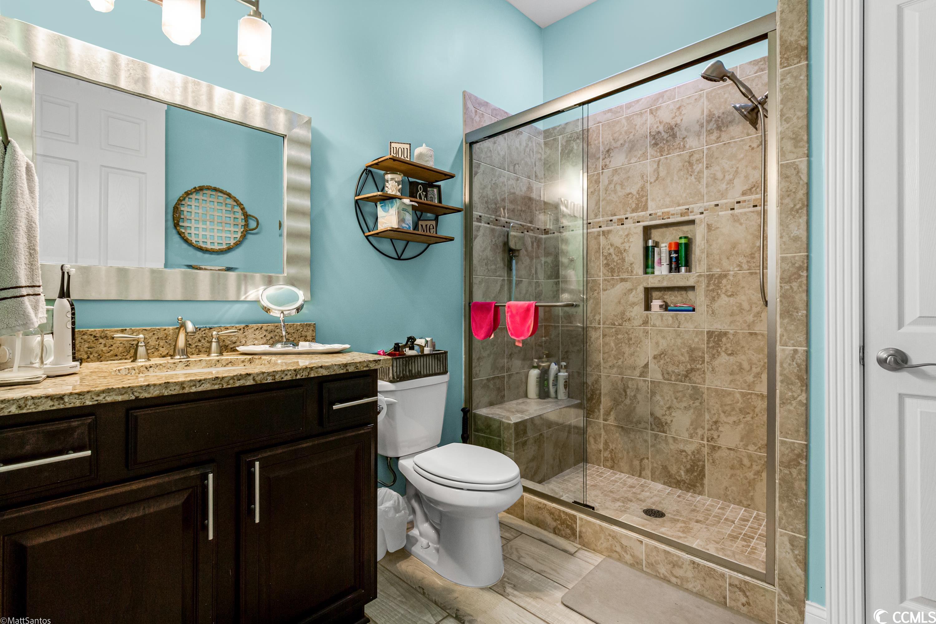 This gorgeous condo in Avian Forest is like no other, It was build in 2016 making it 10+ years newer than the other condos. it's a MUST-SEE! It has an open foyer plan; the tall ceilings are accentuated by the raised 8' doors. It has a screened in stone patio. It features a large open living space with a dining area and seating at the bar of the open kitchen. The kitchen has beautiful cabinets and stainless-steel appliances with an undermount sink and granite countertops. The star of the show is the wood look tile that has been added throughout the home. From the large master walk in shower to the walk-in master closet-built ins for staying organized this condo has every detail covered. It is move in ready. It's the perfect home for guests and out of town family to visit since it's a split floorplan including a built-in bar area to make guests feel right at home. You'll have no yard to maintain and best of all you are only a golf cart ride away from Lichfield by the sea's private beach, you have an amenity center to hang out or take a shower to wash off the sand before heading home, there's a tennis court and community pool as well. this unit includes its own private garage and additional parking spot.
