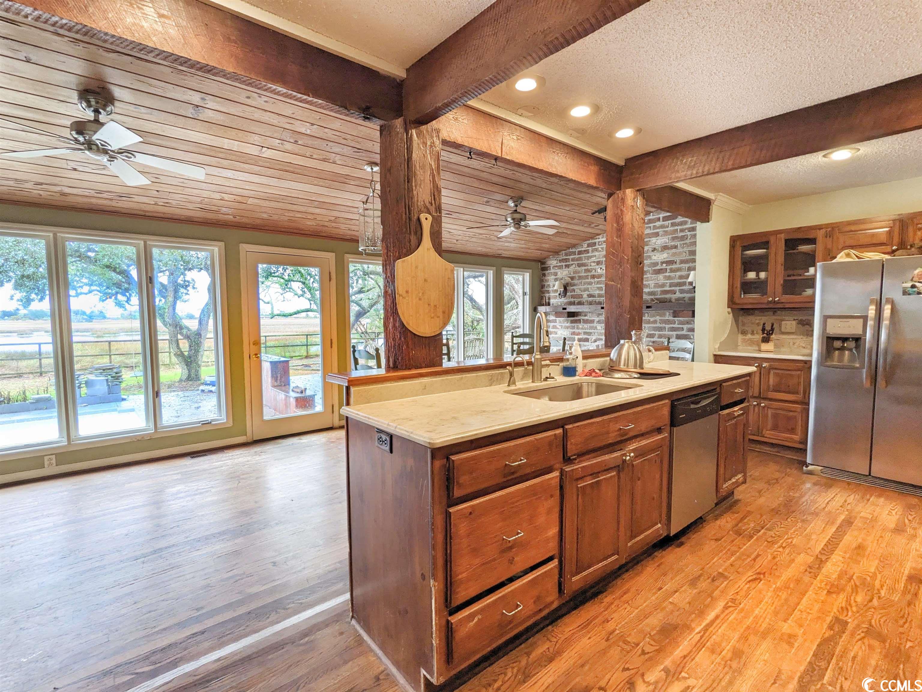 Creek house in Pawleys Island with stunning marsh views! This charming 5 bedroom (2 first floor bedrooms), 4 bath home features a fantastic kitchen that looks out at the creek. There are 3 brick fireplaces downstairs. Your private pool awaits you on hot summer days while barbequing on your deck overlooking the marsh. Conveniently located near grocery stores, restaurants, top-notch medical care, and attractions like the award-winning Brookgreen Gardens and Huntington Beach State Park. 70 miles north from Charleston and 20 miles south of Myrtle Beach means that entertainment is not far away! This is a must-see home with tons of character and charm.