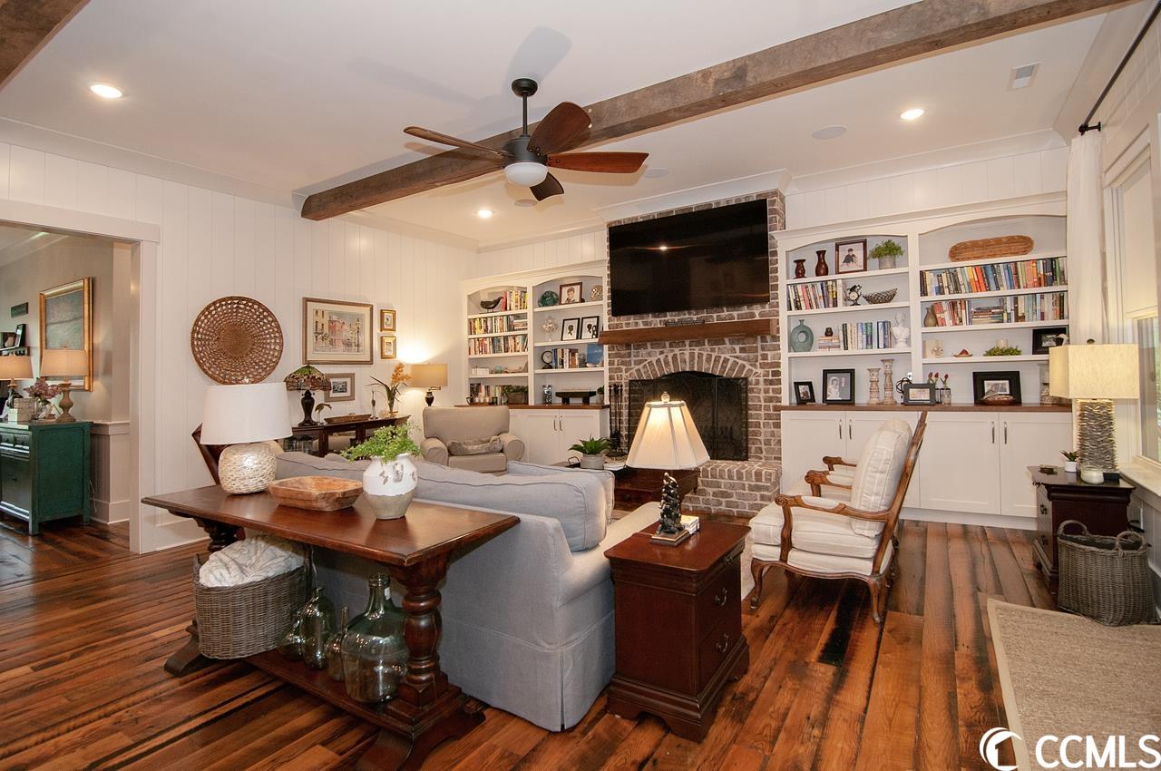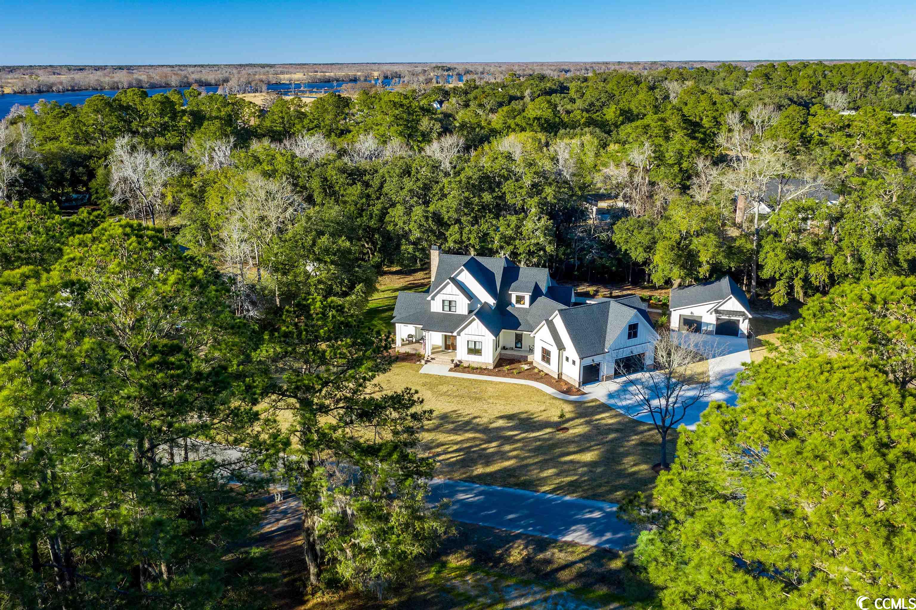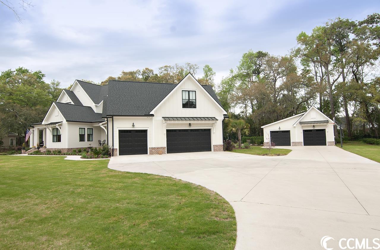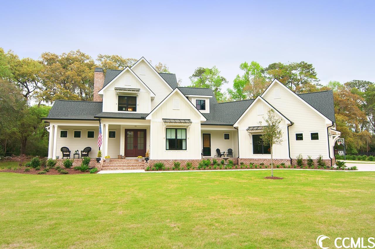 Lowcountry charm blends with contemporary elegance and modern conveniences in this beautiful home on one full acre with saltwater pool. Sweeping front lawn and lush backyard with mature live oaks and firepit gathering area. Welcoming foyer with wide front hallway leads to the heart of the home with open concept eat-in kitchen and living area featuring wood-burning fireplace as well as gorgeous hardwood floors and custom beams restored from 1880s dairy farm. Amazingly functional floor plan includes a butlers pantry in between the kitchen and formal dining room. Sleek gourmet kitchen boasts quartz counters, stainless steel appliances, two large pantries, center island with dual sinks and breakfast nook. The adjacent screened porch provides an accommodating outdoor living space overlooking the backyard and pool. Fabulous master suite is located on the first floor along with an office that could be used as a second bedroom. The second floor provides two more bedrooms one en suite, plus a full bath in the hallway. A separate stairwell leads to a fourth full bath and bonus room above the garage offering plenty of space for additional sleeping arrangements, fitness nook, TV den and walk-in closet, currently used as a second office. Additional home features include whole-house generator, Hardiplank exterior, gas-powered instant water heaters and two garages one 2-car over-sized attached and one 2-car climate-controlled detached. River Oaks Estates, off Waverly Road, provides a tranquil rural setting with close proximity to the Waccamaw River. No HOA. Convenient to schools, health care facilities, golf courses, unique shops and restaurants, as well as to the local beaches and Waccamaw River marinas and boat launches.