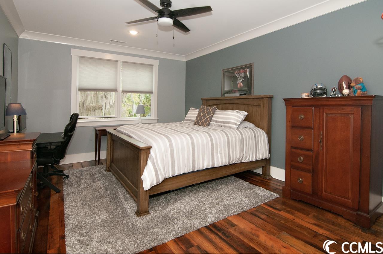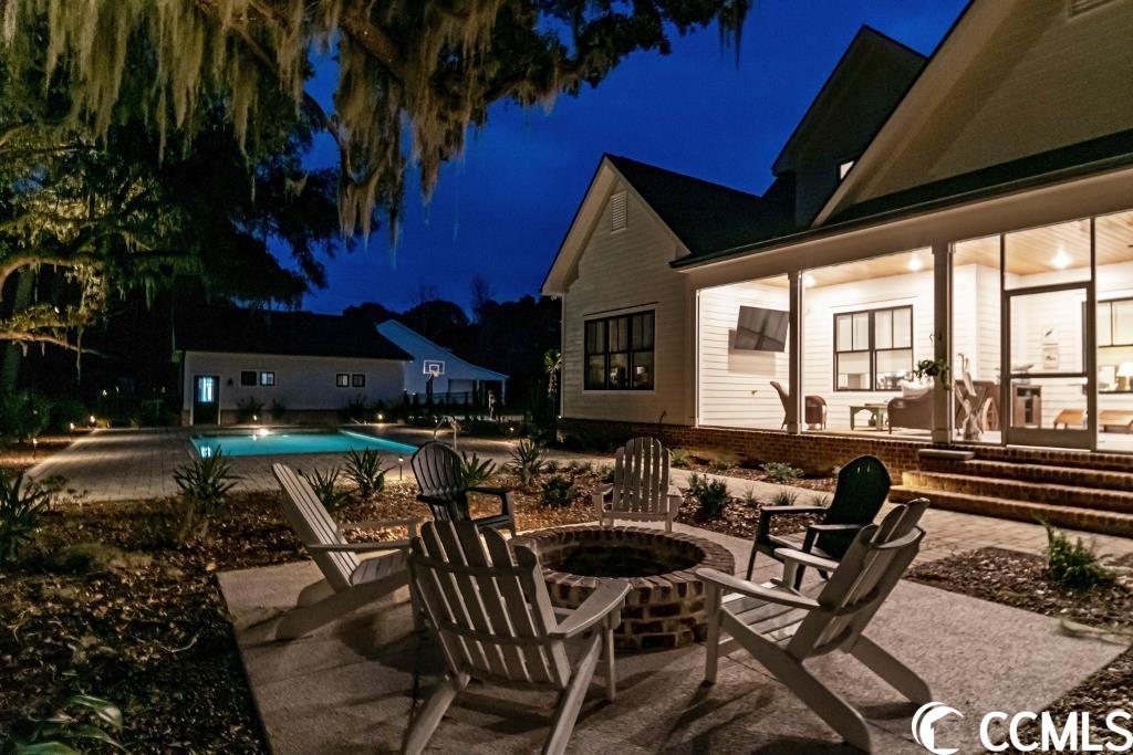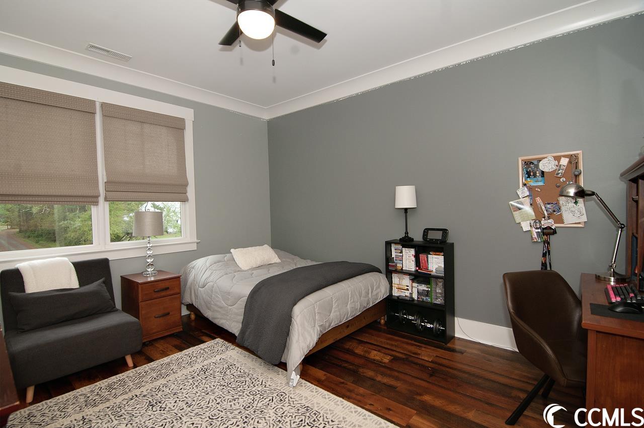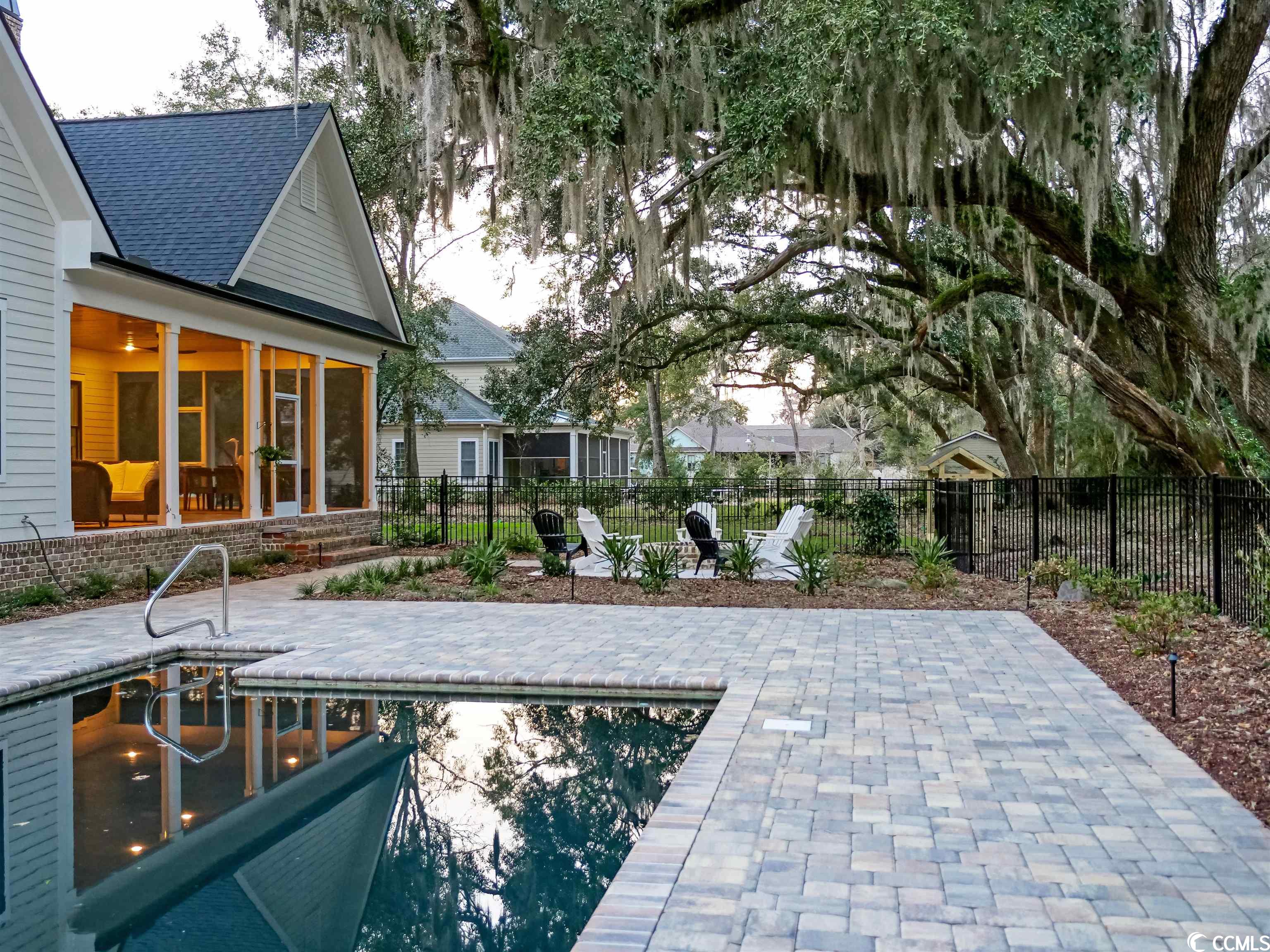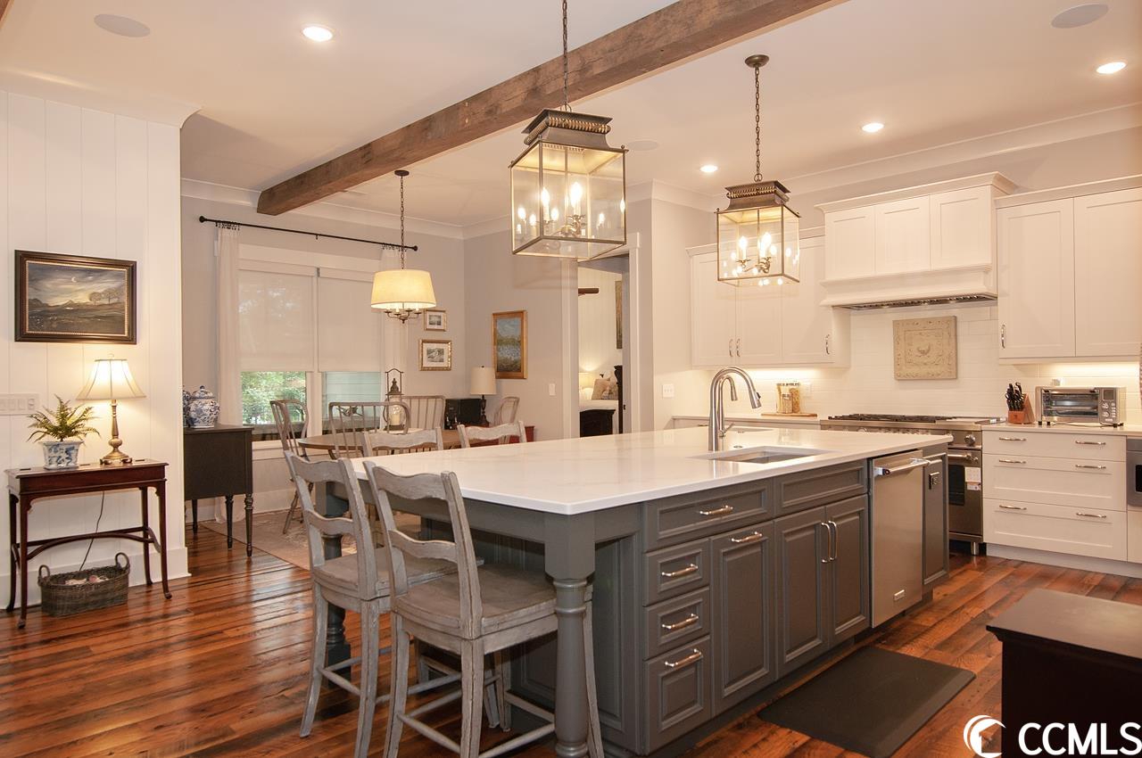 Lowcountry charm blends with contemporary elegance and modern conveniences in this beautiful home on one full acre with saltwater pool. Sweeping front lawn and lush backyard with mature live oaks and firepit gathering area. Welcoming foyer with wide front hallway leads to the heart of the home with open concept eat-in kitchen and living area featuring wood-burning fireplace as well as gorgeous hardwood floors and custom beams restored from 1880s dairy farm. Amazingly functional floor plan includes a butlers pantry in between the kitchen and formal dining room. Sleek gourmet kitchen boasts quartz counters, stainless steel appliances, two large pantries, center island with dual sinks and breakfast nook. The adjacent screened porch provides an accommodating outdoor living space overlooking the backyard and pool. Fabulous master suite is located on the first floor along with an office that could be used as a second bedroom. The second floor provides two more bedrooms one en suite, plus a full bath in the hallway. A separate stairwell leads to a fourth full bath and bonus room above the garage offering plenty of space for additional sleeping arrangements, fitness nook, TV den and walk-in closet, currently used as a second office. Additional home features include whole-house generator, Hardiplank exterior, gas-powered instant water heaters and two garages one 2-car over-sized attached and one 2-car climate-controlled detached. River Oaks Estates, off Waverly Road, provides a tranquil rural setting with close proximity to the Waccamaw River. No HOA. Convenient to schools, health care facilities, golf courses, unique shops and restaurants, as well as to the local beaches and Waccamaw River marinas and boat launches.