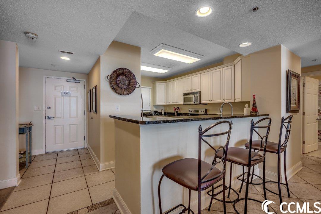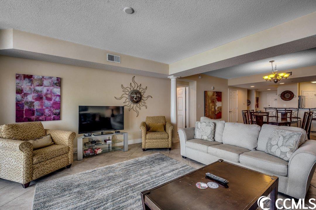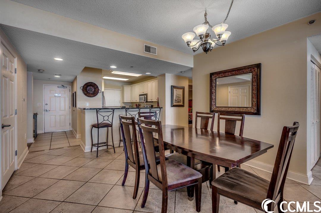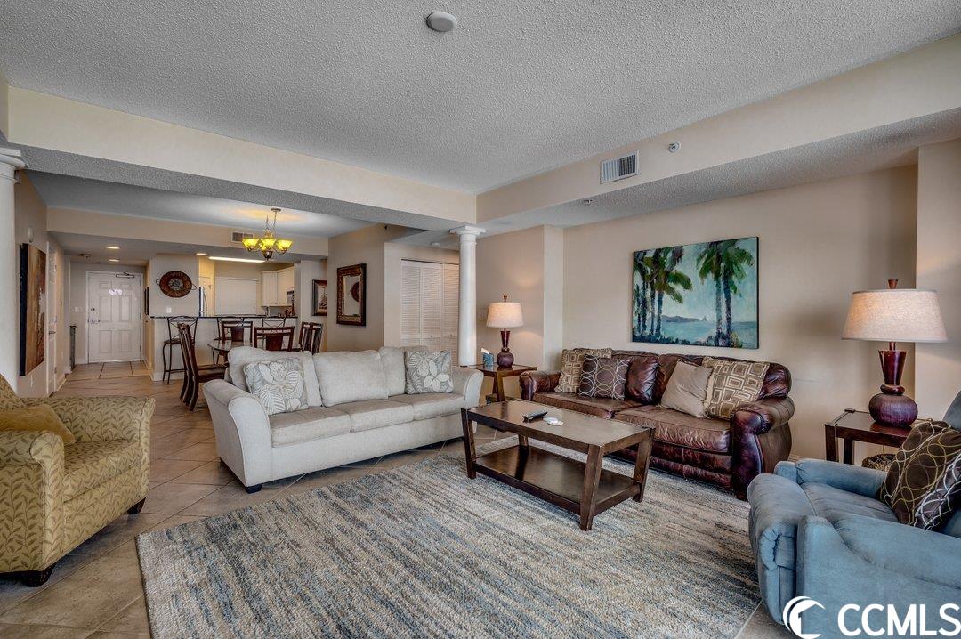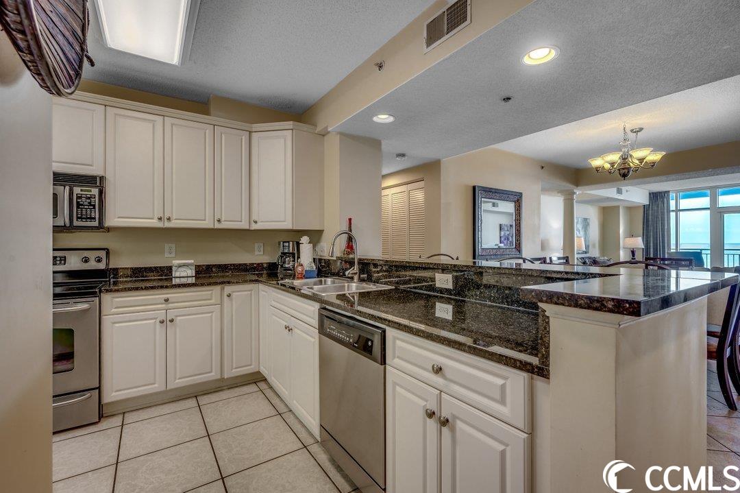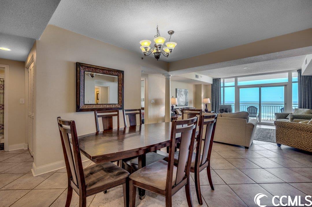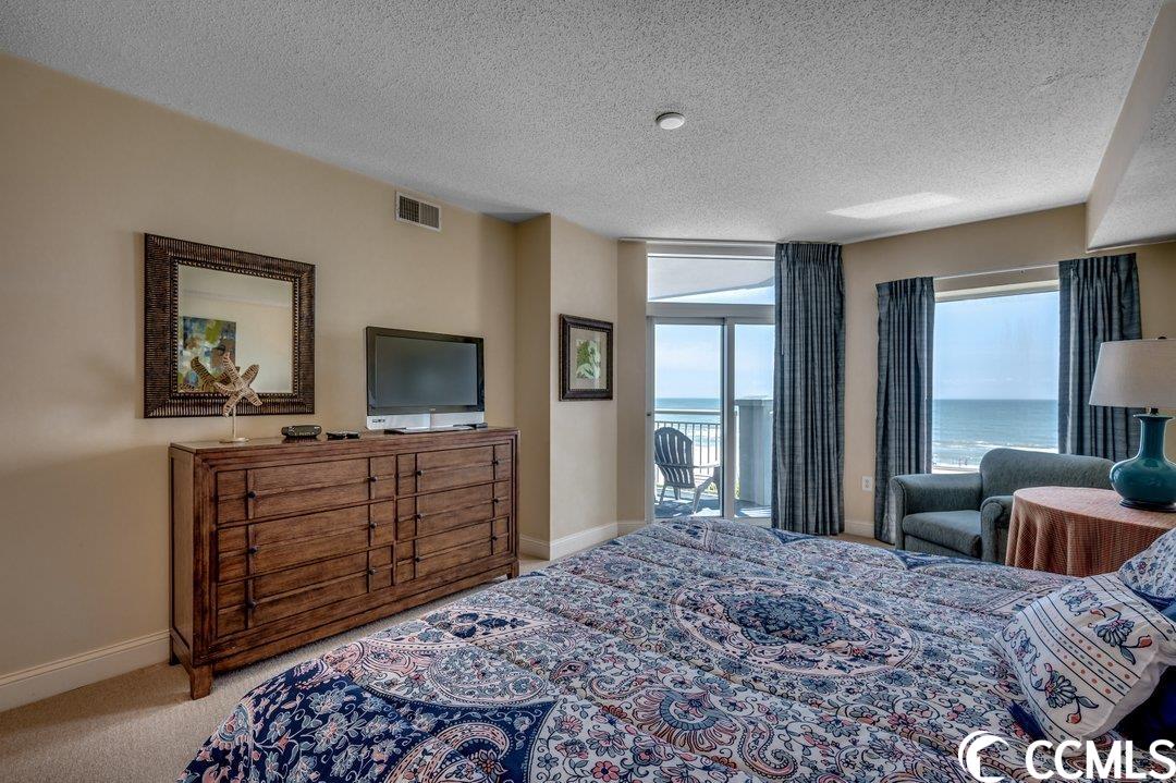 Huge direct oceanfront 4 bedroom 4 bathroom condominium in Ocean Blue. This is a rare listing. There are only 36 residences in this luxury building. Spectacular ocean views from the large balcony. The living room and two bedrooms are direct oceanfront. Nicely furnished and accessorized. Granite counter-tops in the kitchen and bathrooms. Stainless steel appliances in the kitchen. Washer/dryer for your convenience. The master bathroom features a double sink, a shower and a tub. This would make a wonderful primary residence, second home or vacation rental property. Ocean Blue amenities include climate-controlled enclosed corridors and an assigned parking spot for each unit (an unusual feature for oceanfront condo buildings). There's an outdoor pool and grilling area. Also, there are a number of indoor water amenities available for year-round use - a lazy river, another pool and hot tubs. To top it off, there is an exercise room. The south end location is very close to the restaurants and shops of Market Common, the Myrtle Beach International Airport, Coastal Grande Mall, Downwind Sails and the Myrtle Beach Boardwalk and just a couple of miles from Broadway at the Beach. The HOA fee includes water/sewer, unit electric, cable and internet, as well as building insurance. All information is deemed correct, but it is the responsibility of the buyers and their agent to verify all information.