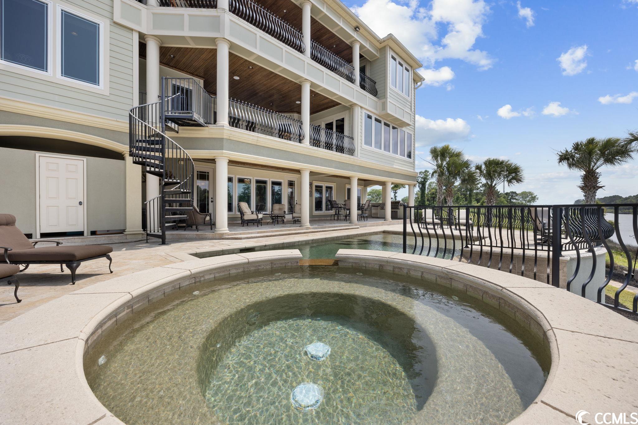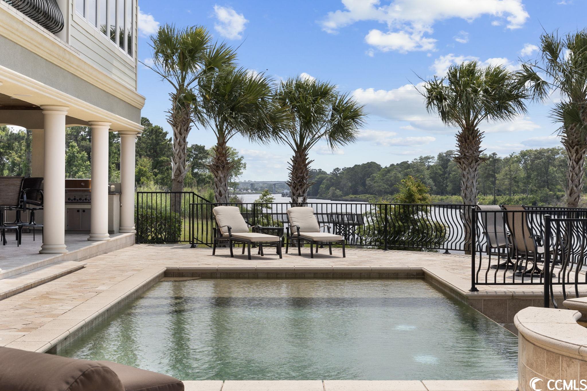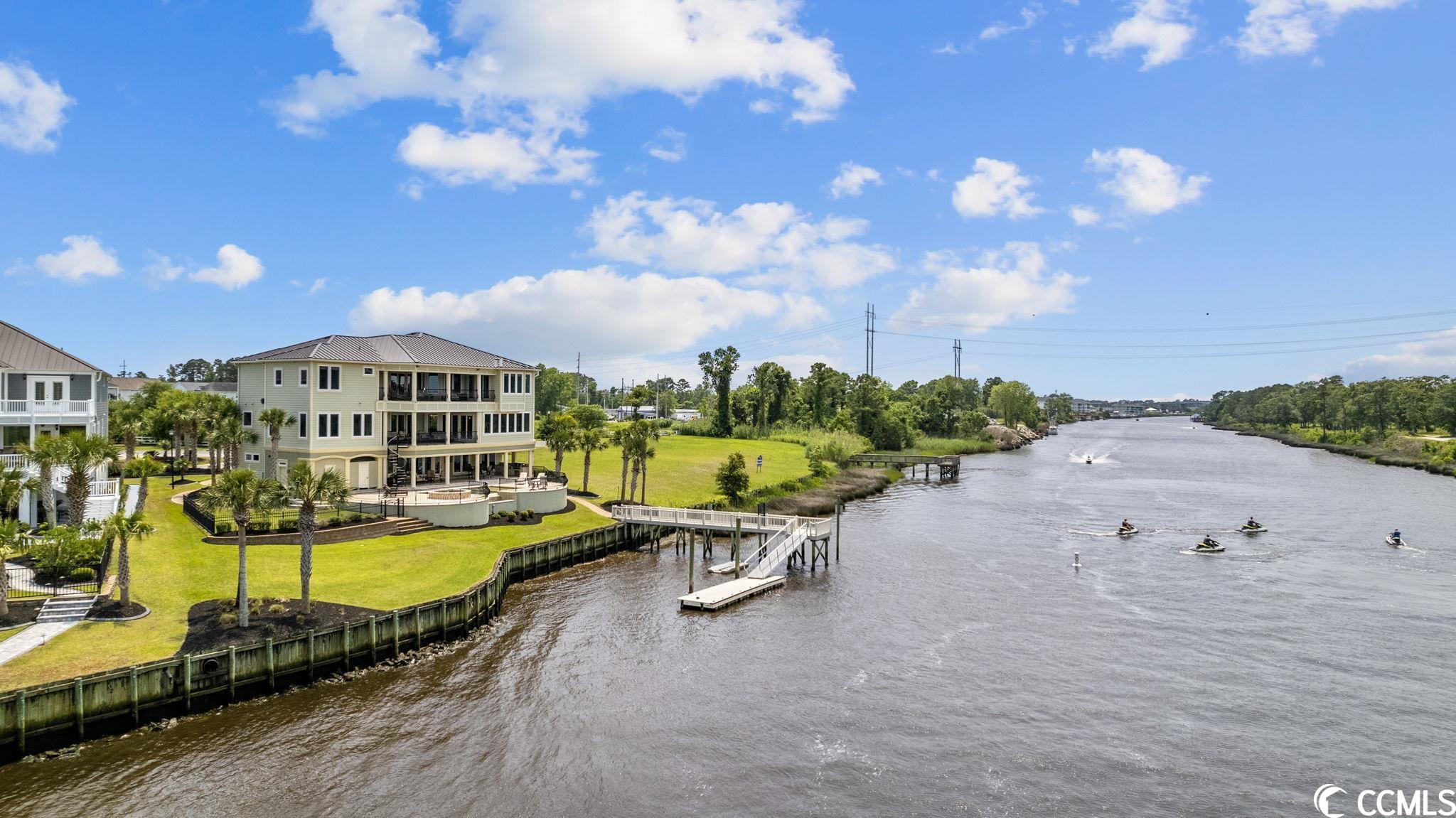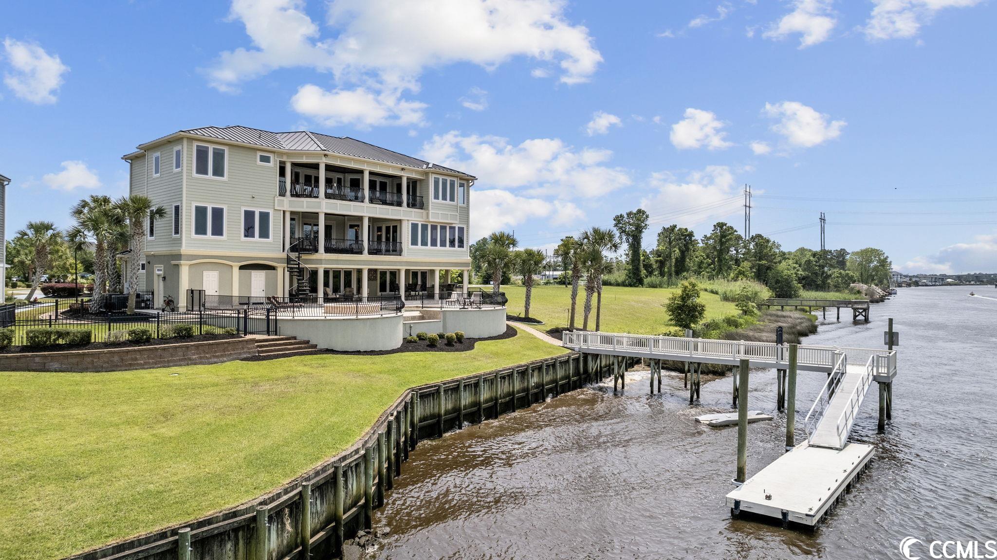 Presenting this luxurious custom-designed home located on the tranquil & scenic Intracoastal Waterway. Boasting an impressive layout with 5 bedrooms, including a private office, and 6 well-appointed bathrooms, this home is a testament to impeccable craftsmanship and elegance. Upon arrival, the expansive porches on all three levels greet you with awe-inspiring panoramic vistas of the waterway, setting the tone for a truly enchanting retreat. The epitome of relaxation and entertainment, this residence features a private heated, saltwater pool and hot tub overlooking the waterfront. Indulge in the finest technological advancements with the cutting-edge Leviton Smart Home System, offering effortless control of various property features. The grandeur of this home is accentuated by a custom-built spiral staircase adorned with a captivating domed mural and complemented by an elevator granting convenient access to all three floors. On the first level you will find a spacious great room offering a wet bar which is ideal for hosting family & friends. This level also offers a fullbathroom and one of the two laundry rooms for added practicality. The first-floor patio is completed with an outdoor kitchen that willseamlessly connect you to the sparkling pool, creating forever memorable moments. Continuing to the second level, you'll be captivatedby a host of upscale amenities and finishes. The custom kitchen offers the chef a place to imagine preparing wonderful meals, featuringGE Monogram appliances, granite countertops, and a butler's pantry for optimal storage. The master bath hosts dual vanity areas, alarge walk-in shower, a standalone tub, a gas fireplace, and separate his and her toilets. On the third floor, there are four guest en-suite bedrooms, each with a private bathroom. The home office is a versital space. There are tranquil Intracoastal views from all three levels on the covered porches and balconies hosting tongue and groove ceilings, ceramic tile, and custom railings. Everywhere you look this home has custom designed molding. There are two laundry rooms with three washers and three dryers, making laundry an easy chore. The waterfront living room offers a cozy gas fireplace. The tiled pool deck is surrounded by professionally landscaped area. An enviable feature of this property is its over 150 feet of Intracoastal Waterway frontage, accompanied by a private custom boat dock, catering to water enthusiasts and offering convenient access to the water. This piece of paradise is completed with a spacious 2-car split garage with additional storage space and a single-car garage for a golf cart. This home affords you easy access to the beach and golfing along with all of the other activities and happenings in North Myrtle Beach & Myrtle Beach including fun eateries, award winning off-Broadway shows, public fishing piers, and intriguing shopping adventures along the Grand Strand.Conveniently located to your everyday needs, including grocery stores, banks, post offices, medical centers, doctors offices, and pharmacies.