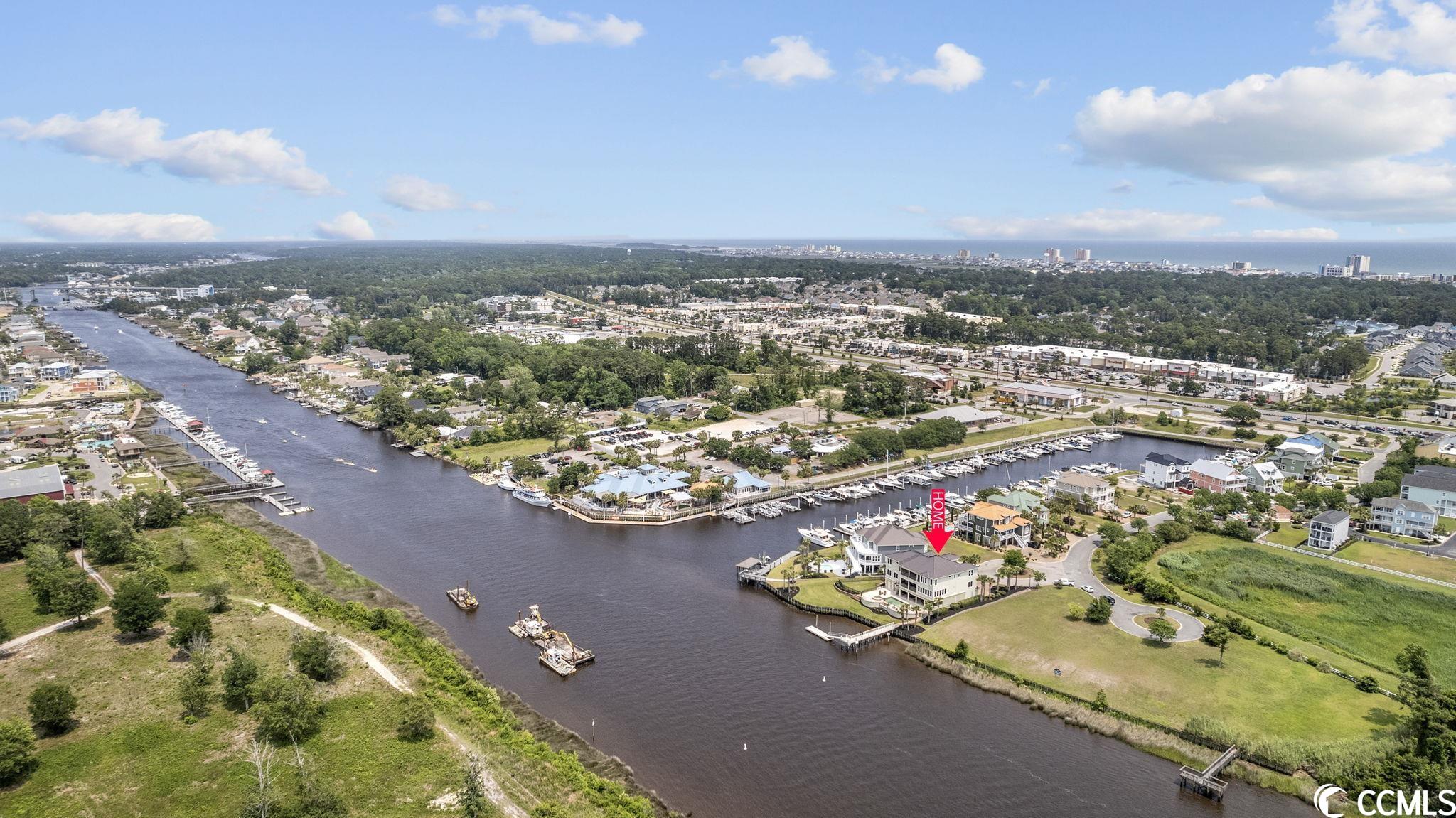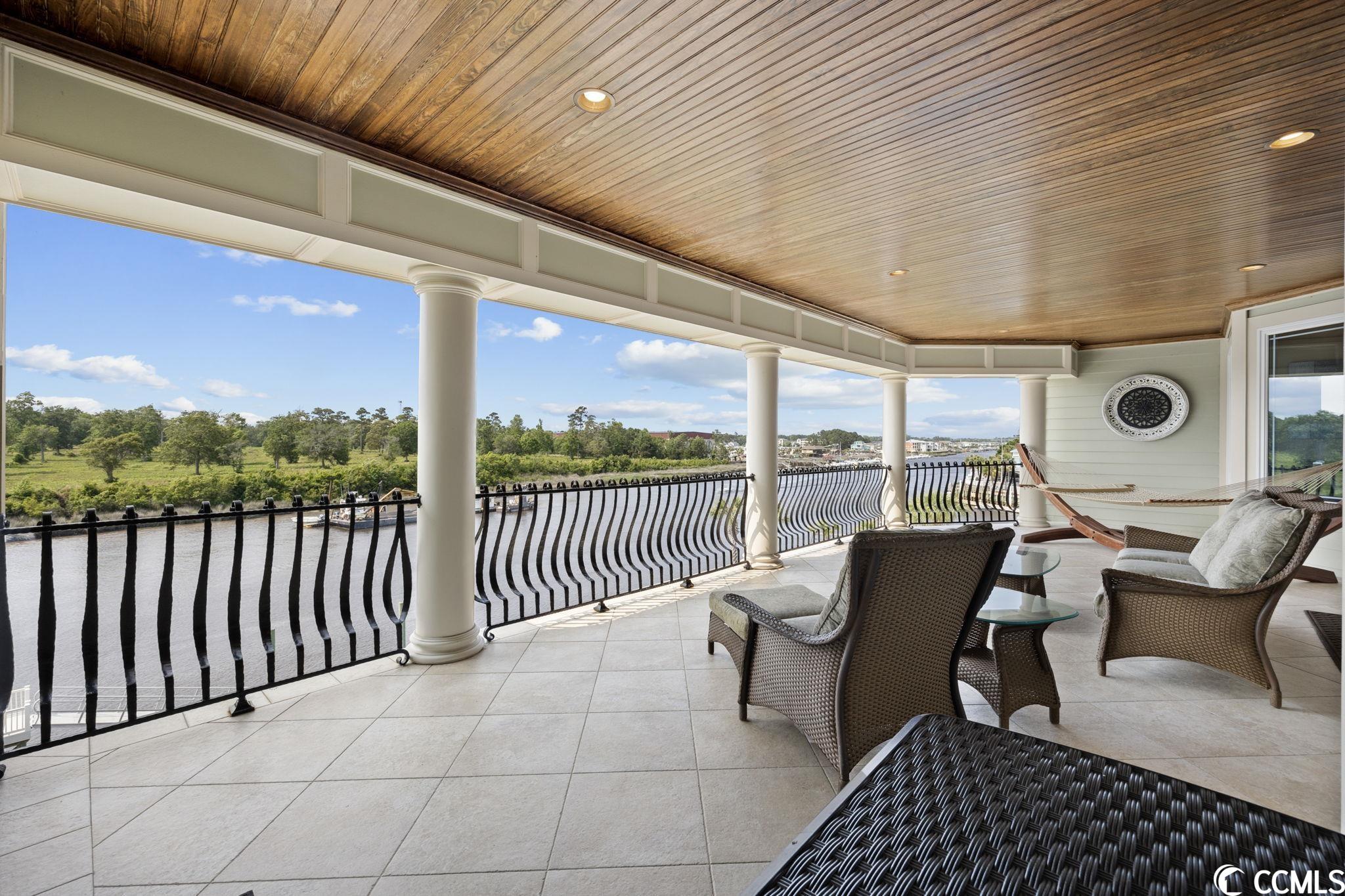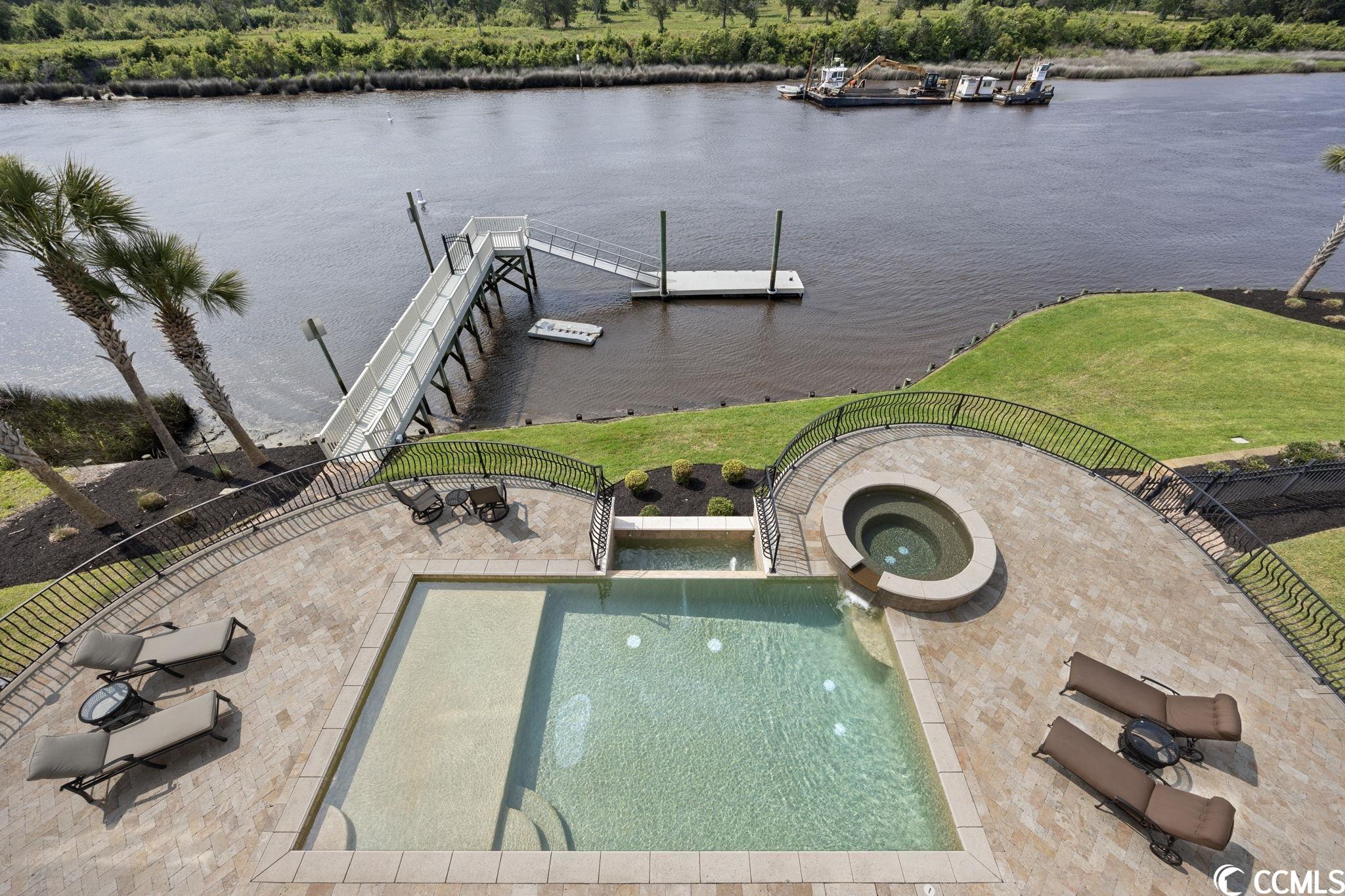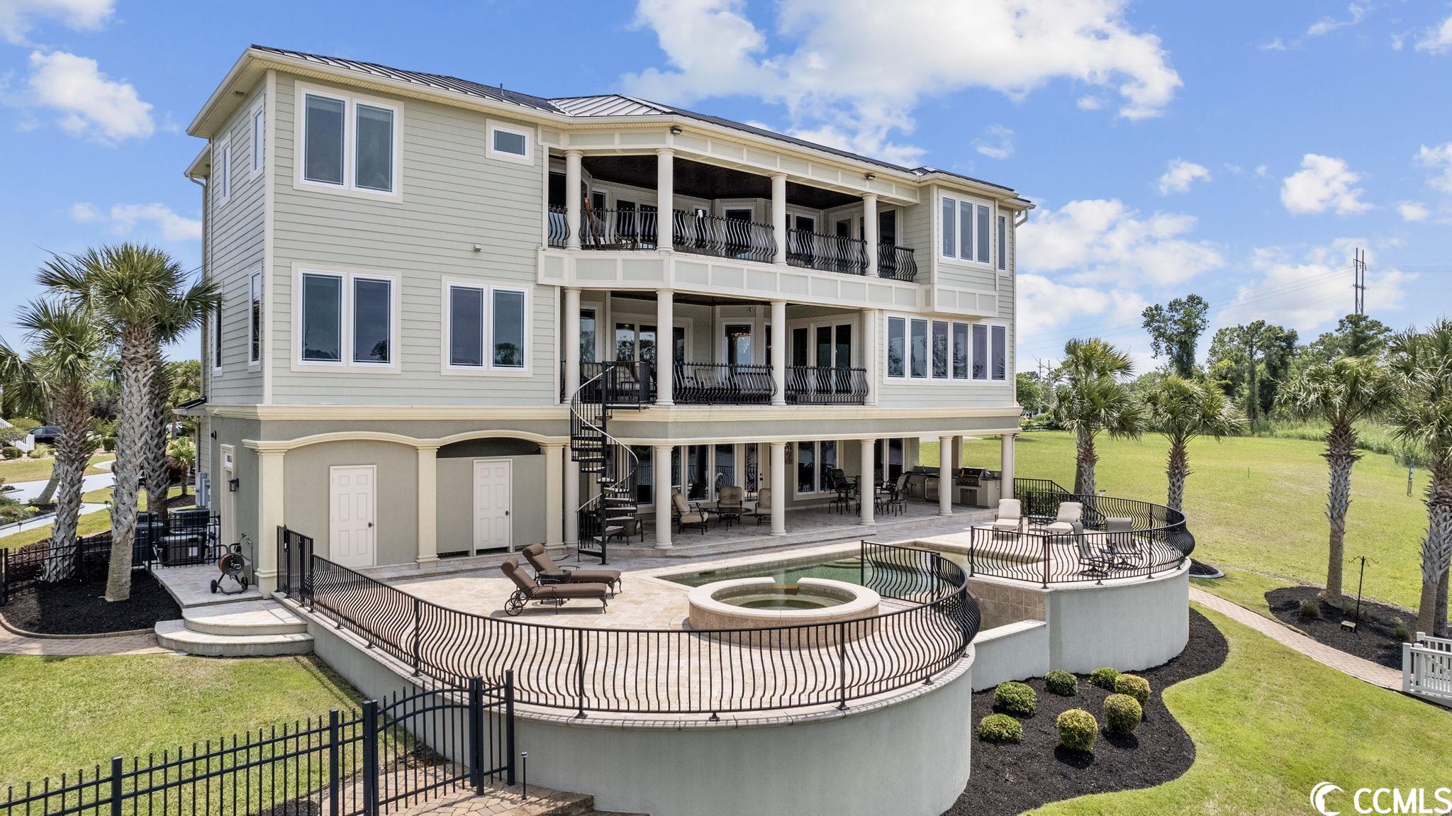 Presenting this luxurious custom-designed home located on the tranquil & scenic Intracoastal Waterway. Boasting an impressive layout with 5 bedrooms, including a private office, and 6 well-appointed bathrooms, this home is a testament to impeccable craftsmanship and elegance. Upon arrival, the expansive porches on all three levels greet you with awe-inspiring panoramic vistas of the waterway, setting the tone for a truly enchanting retreat. The epitome of relaxation and entertainment, this residence features a private heated, saltwater pool and hot tub overlooking the waterfront. Indulge in the finest technological advancements with the cutting-edge Leviton Smart Home System, offering effortless control of various property features. The grandeur of this home is accentuated by a custom-built spiral staircase adorned with a captivating domed mural and complemented by an elevator granting convenient access to all three floors. On the first level you will find a spacious great room offering a wet bar which is ideal for hosting family & friends. This level also offers a fullbathroom and one of the two laundry rooms for added practicality. The first-floor patio is completed with an outdoor kitchen that willseamlessly connect you to the sparkling pool, creating forever memorable moments. Continuing to the second level, you'll be captivatedby a host of upscale amenities and finishes. The custom kitchen offers the chef a place to imagine preparing wonderful meals, featuringGE Monogram appliances, granite countertops, and a butler's pantry for optimal storage. The master bath hosts dual vanity areas, alarge walk-in shower, a standalone tub, a gas fireplace, and separate his and her toilets. On the third floor, there are four guest en-suite bedrooms, each with a private bathroom. The home office is a versital space. There are tranquil Intracoastal views from all three levels on the covered porches and balconies hosting tongue and groove ceilings, ceramic tile, and custom railings. Everywhere you look this home has custom designed molding. There are two laundry rooms with three washers and three dryers, making laundry an easy chore. The waterfront living room offers a cozy gas fireplace. The tiled pool deck is surrounded by professionally landscaped area. An enviable feature of this property is its over 150 feet of Intracoastal Waterway frontage, accompanied by a private custom boat dock, catering to water enthusiasts and offering convenient access to the water. This piece of paradise is completed with a spacious 2-car split garage with additional storage space and a single-car garage for a golf cart. This home affords you easy access to the beach and golfing along with all of the other activities and happenings in North Myrtle Beach & Myrtle Beach including fun eateries, award winning off-Broadway shows, public fishing piers, and intriguing shopping adventures along the Grand Strand.Conveniently located to your everyday needs, including grocery stores, banks, post offices, medical centers, doctors offices, and pharmacies.