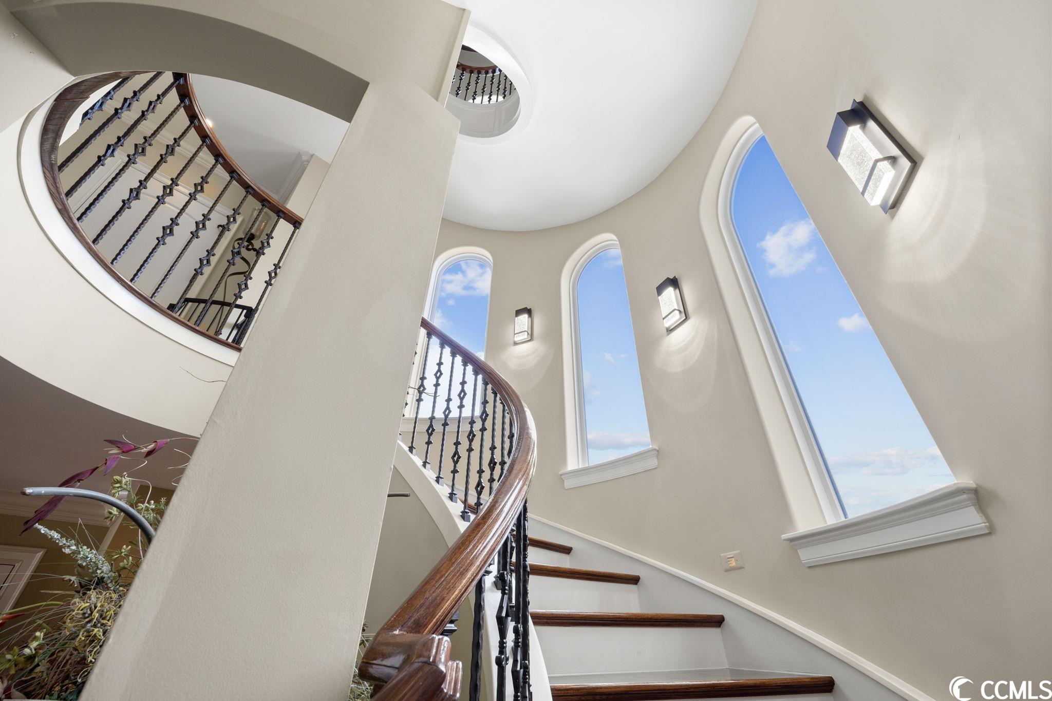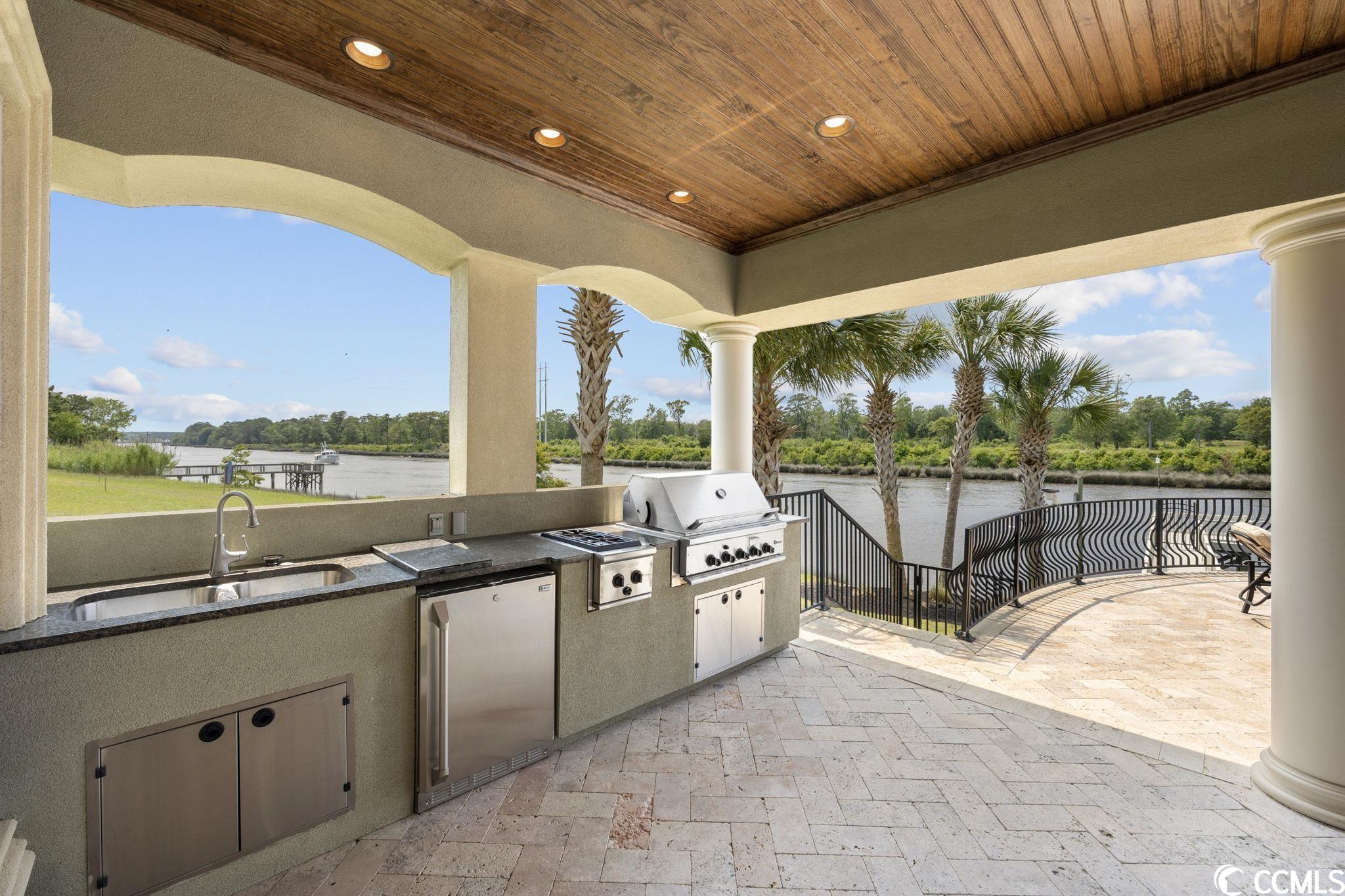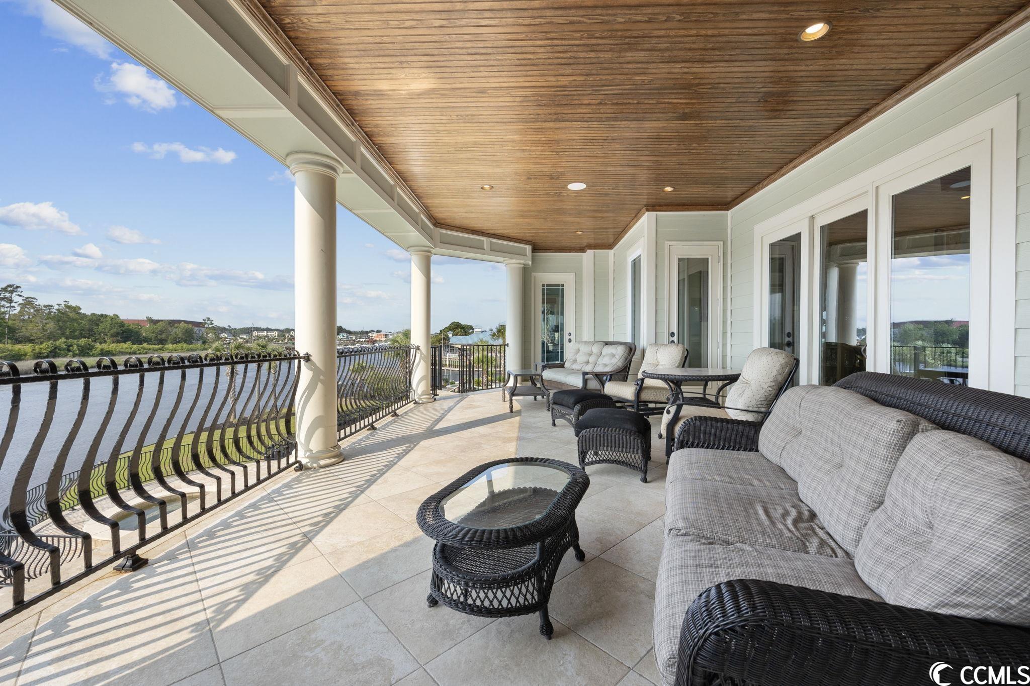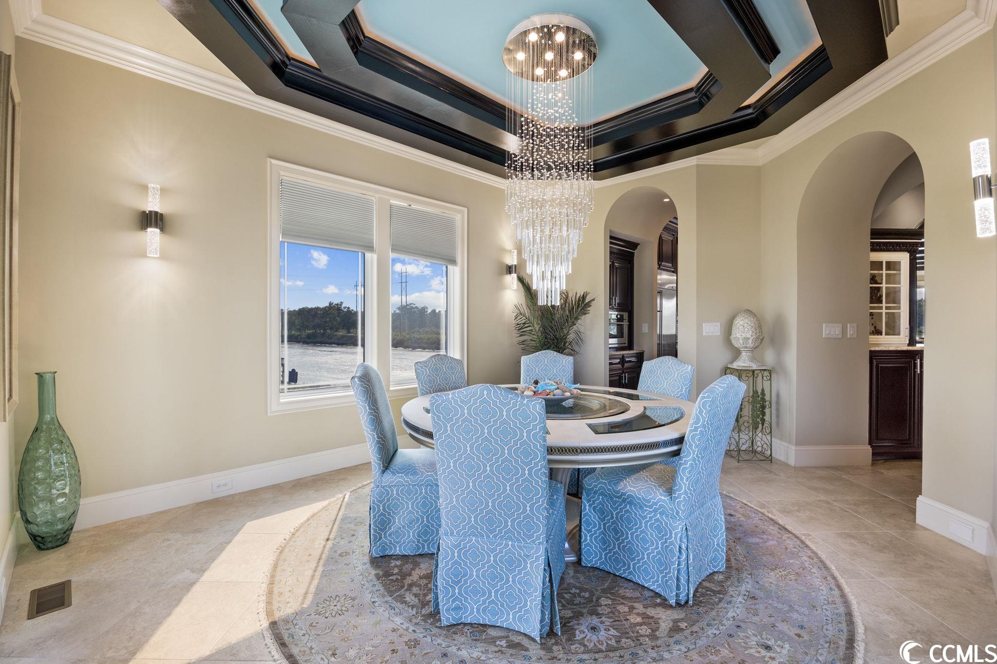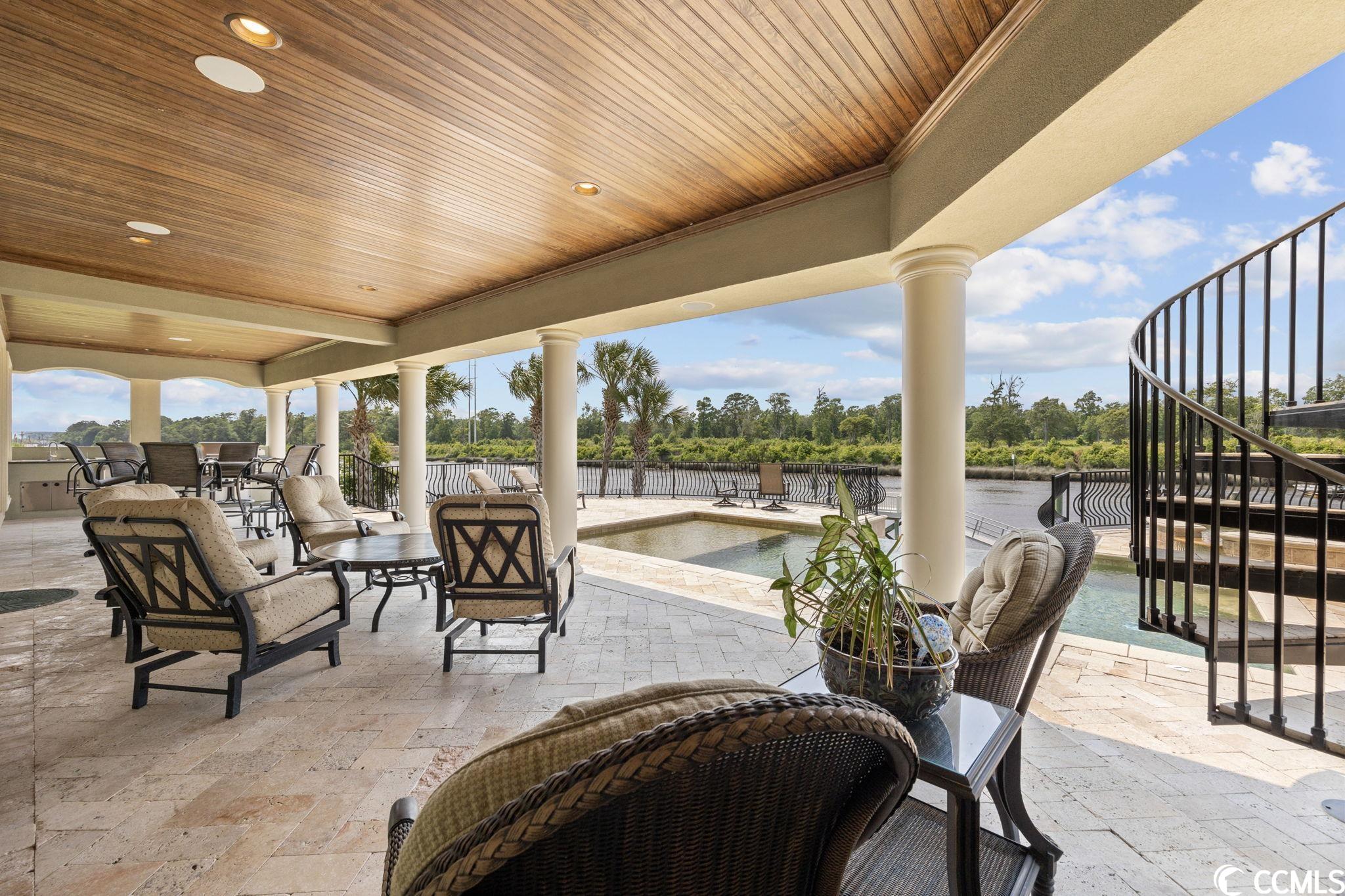 Presenting this luxurious custom-designed home located on the tranquil & scenic Intracoastal Waterway. Boasting an impressive layout with 5 bedrooms, including a private office, and 6 well-appointed bathrooms, this home is a testament to impeccable craftsmanship and elegance. Upon arrival, the expansive porches on all three levels greet you with awe-inspiring panoramic vistas of the waterway, setting the tone for a truly enchanting retreat. The epitome of relaxation and entertainment, this residence features a private heated, saltwater pool and hot tub overlooking the waterfront. Indulge in the finest technological advancements with the cutting-edge Leviton Smart Home System, offering effortless control of various property features. The grandeur of this home is accentuated by a custom-built spiral staircase adorned with a captivating domed mural and complemented by an elevator granting convenient access to all three floors. On the first level you will find a spacious great room offering a wet bar which is ideal for hosting family & friends. This level also offers a fullbathroom and one of the two laundry rooms for added practicality. The first-floor patio is completed with an outdoor kitchen that willseamlessly connect you to the sparkling pool, creating forever memorable moments. Continuing to the second level, you'll be captivatedby a host of upscale amenities and finishes. The custom kitchen offers the chef a place to imagine preparing wonderful meals, featuringGE Monogram appliances, granite countertops, and a butler's pantry for optimal storage. The master bath hosts dual vanity areas, alarge walk-in shower, a standalone tub, a gas fireplace, and separate his and her toilets. On the third floor, there are four guest en-suite bedrooms, each with a private bathroom. The home office is a versital space. There are tranquil Intracoastal views from all three levels on the covered porches and balconies hosting tongue and groove ceilings, ceramic tile, and custom railings. Everywhere you look this home has custom designed molding. There are two laundry rooms with three washers and three dryers, making laundry an easy chore. The waterfront living room offers a cozy gas fireplace. The tiled pool deck is surrounded by professionally landscaped area. An enviable feature of this property is its over 150 feet of Intracoastal Waterway frontage, accompanied by a private custom boat dock, catering to water enthusiasts and offering convenient access to the water. This piece of paradise is completed with a spacious 2-car split garage with additional storage space and a single-car garage for a golf cart. This home affords you easy access to the beach and golfing along with all of the other activities and happenings in North Myrtle Beach & Myrtle Beach including fun eateries, award winning off-Broadway shows, public fishing piers, and intriguing shopping adventures along the Grand Strand.Conveniently located to your everyday needs, including grocery stores, banks, post offices, medical centers, doctors offices, and pharmacies.