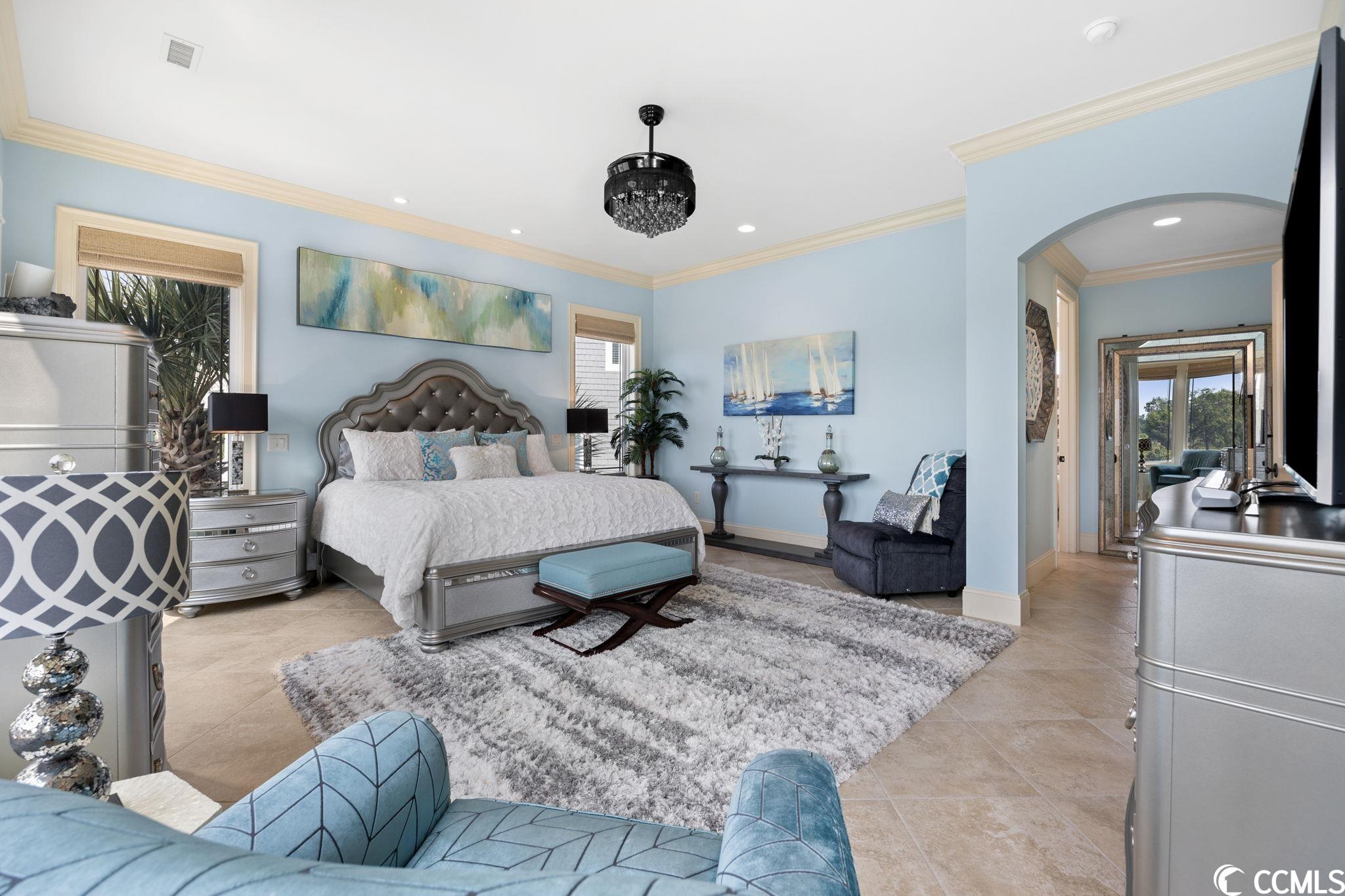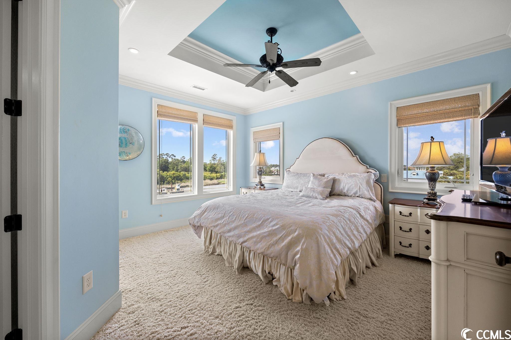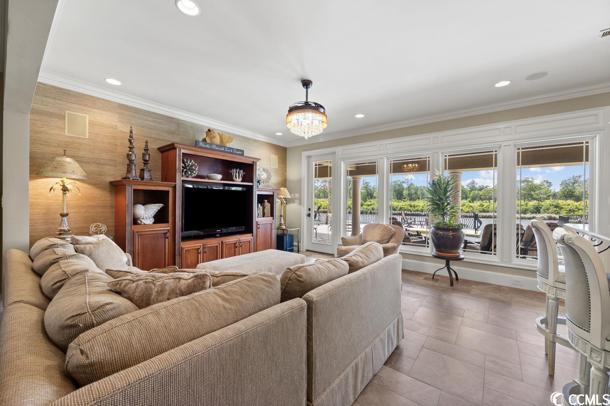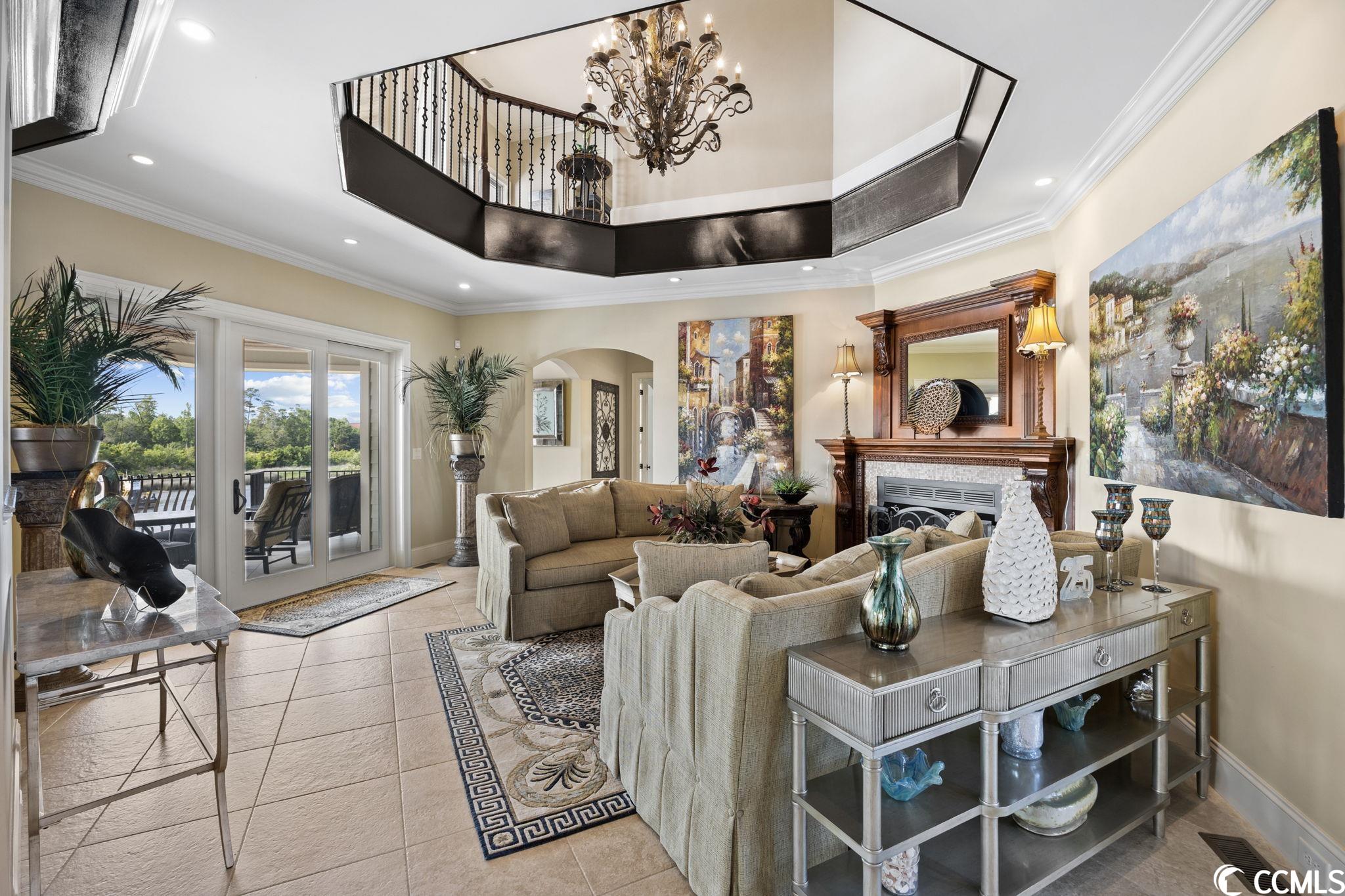 Presenting this luxurious custom-designed home located on the tranquil & scenic Intracoastal Waterway. Boasting an impressive layout with 5 bedrooms, including a private office, and 6 well-appointed bathrooms, this home is a testament to impeccable craftsmanship and elegance. Upon arrival, the expansive porches on all three levels greet you with awe-inspiring panoramic vistas of the waterway, setting the tone for a truly enchanting retreat. The epitome of relaxation and entertainment, this residence features a private heated, saltwater pool and hot tub overlooking the waterfront. Indulge in the finest technological advancements with the cutting-edge Leviton Smart Home System, offering effortless control of various property features. The grandeur of this home is accentuated by a custom-built spiral staircase adorned with a captivating domed mural and complemented by an elevator granting convenient access to all three floors. On the first level you will find a spacious great room offering a wet bar which is ideal for hosting family & friends. This level also offers a fullbathroom and one of the two laundry rooms for added practicality. The first-floor patio is completed with an outdoor kitchen that willseamlessly connect you to the sparkling pool, creating forever memorable moments. Continuing to the second level, you'll be captivatedby a host of upscale amenities and finishes. The custom kitchen offers the chef a place to imagine preparing wonderful meals, featuringGE Monogram appliances, granite countertops, and a butler's pantry for optimal storage. The master bath hosts dual vanity areas, alarge walk-in shower, a standalone tub, a gas fireplace, and separate his and her toilets. On the third floor, there are four guest en-suite bedrooms, each with a private bathroom. The home office is a versital space. There are tranquil Intracoastal views from all three levels on the covered porches and balconies hosting tongue and groove ceilings, ceramic tile, and custom railings. Everywhere you look this home has custom designed molding. There are two laundry rooms with three washers and three dryers, making laundry an easy chore. The waterfront living room offers a cozy gas fireplace. The tiled pool deck is surrounded by professionally landscaped area. An enviable feature of this property is its over 150 feet of Intracoastal Waterway frontage, accompanied by a private custom boat dock, catering to water enthusiasts and offering convenient access to the water. This piece of paradise is completed with a spacious 2-car split garage with additional storage space and a single-car garage for a golf cart. This home affords you easy access to the beach and golfing along with all of the other activities and happenings in North Myrtle Beach & Myrtle Beach including fun eateries, award winning off-Broadway shows, public fishing piers, and intriguing shopping adventures along the Grand Strand.Conveniently located to your everyday needs, including grocery stores, banks, post offices, medical centers, doctors offices, and pharmacies.