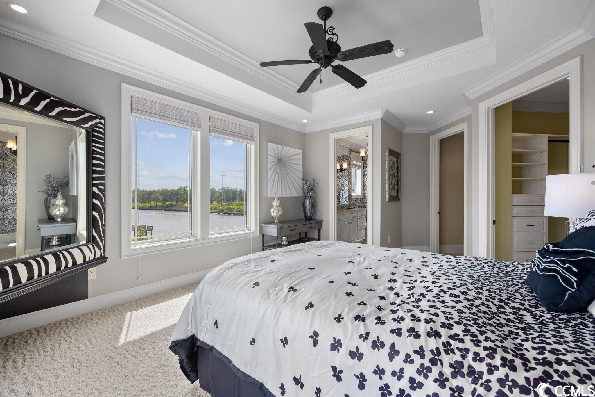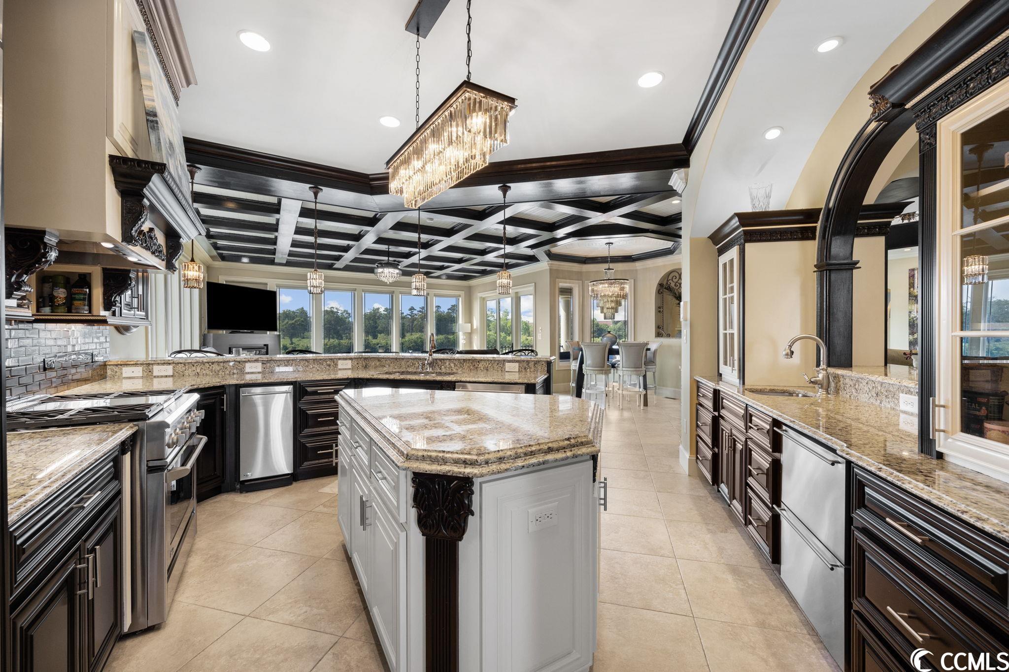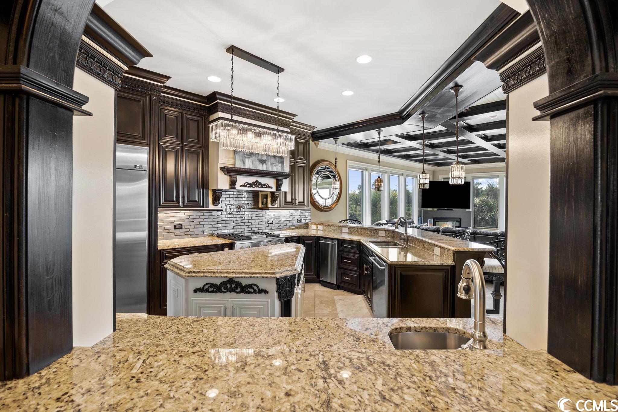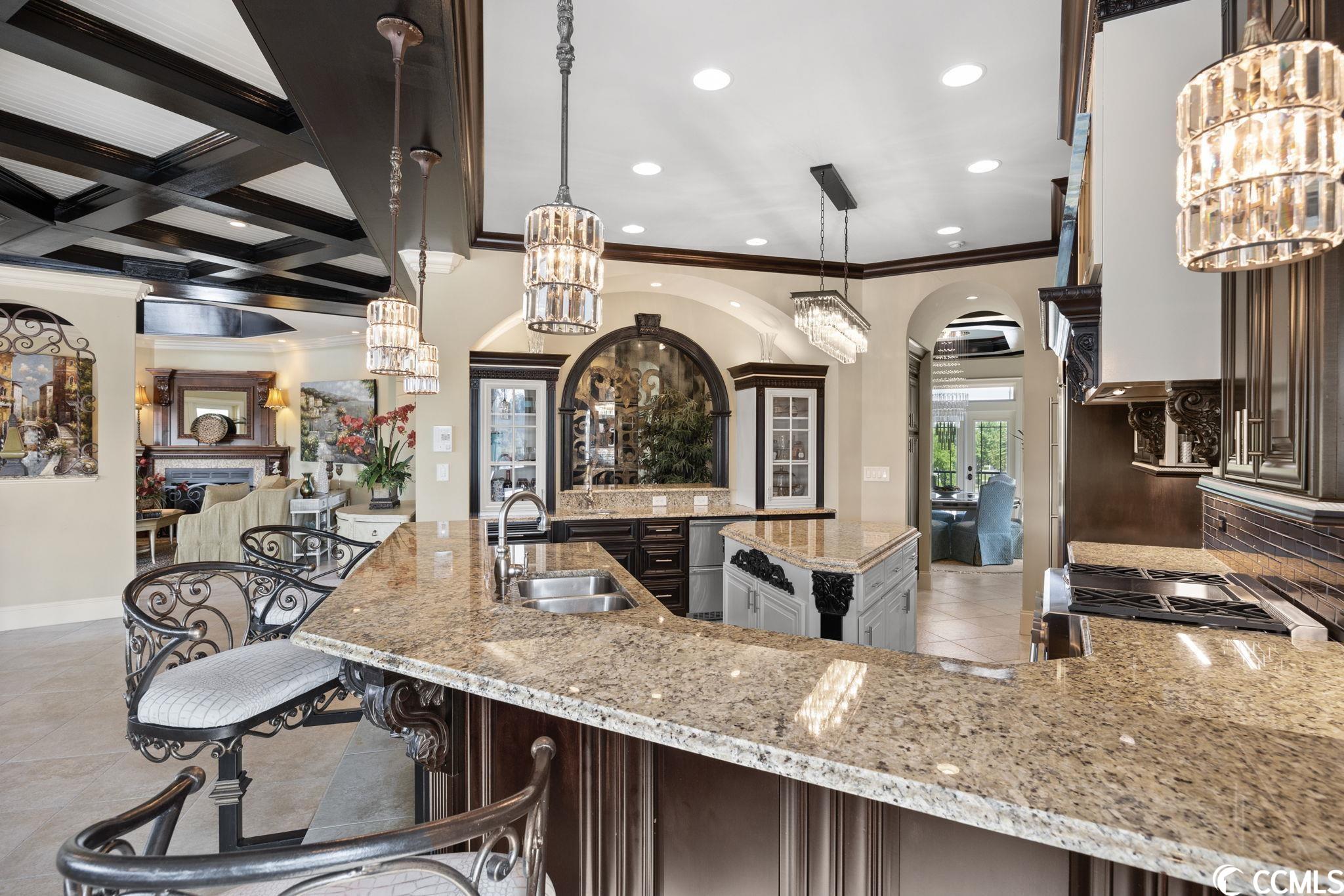 Presenting this luxurious custom-designed home located on the tranquil & scenic Intracoastal Waterway. Boasting an impressive layout with 5 bedrooms, including a private office, and 6 well-appointed bathrooms, this home is a testament to impeccable craftsmanship and elegance. Upon arrival, the expansive porches on all three levels greet you with awe-inspiring panoramic vistas of the waterway, setting the tone for a truly enchanting retreat. The epitome of relaxation and entertainment, this residence features a private heated, saltwater pool and hot tub overlooking the waterfront. Indulge in the finest technological advancements with the cutting-edge Leviton Smart Home System, offering effortless control of various property features. The grandeur of this home is accentuated by a custom-built spiral staircase adorned with a captivating domed mural and complemented by an elevator granting convenient access to all three floors. On the first level you will find a spacious great room offering a wet bar which is ideal for hosting family & friends. This level also offers a fullbathroom and one of the two laundry rooms for added practicality. The first-floor patio is completed with an outdoor kitchen that willseamlessly connect you to the sparkling pool, creating forever memorable moments. Continuing to the second level, you'll be captivatedby a host of upscale amenities and finishes. The custom kitchen offers the chef a place to imagine preparing wonderful meals, featuringGE Monogram appliances, granite countertops, and a butler's pantry for optimal storage. The master bath hosts dual vanity areas, alarge walk-in shower, a standalone tub, a gas fireplace, and separate his and her toilets. On the third floor, there are four guest en-suite bedrooms, each with a private bathroom. The home office is a versital space. There are tranquil Intracoastal views from all three levels on the covered porches and balconies hosting tongue and groove ceilings, ceramic tile, and custom railings. Everywhere you look this home has custom designed molding. There are two laundry rooms with three washers and three dryers, making laundry an easy chore. The waterfront living room offers a cozy gas fireplace. The tiled pool deck is surrounded by professionally landscaped area. An enviable feature of this property is its over 150 feet of Intracoastal Waterway frontage, accompanied by a private custom boat dock, catering to water enthusiasts and offering convenient access to the water. This piece of paradise is completed with a spacious 2-car split garage with additional storage space and a single-car garage for a golf cart. This home affords you easy access to the beach and golfing along with all of the other activities and happenings in North Myrtle Beach & Myrtle Beach including fun eateries, award winning off-Broadway shows, public fishing piers, and intriguing shopping adventures along the Grand Strand.Conveniently located to your everyday needs, including grocery stores, banks, post offices, medical centers, doctors offices, and pharmacies.