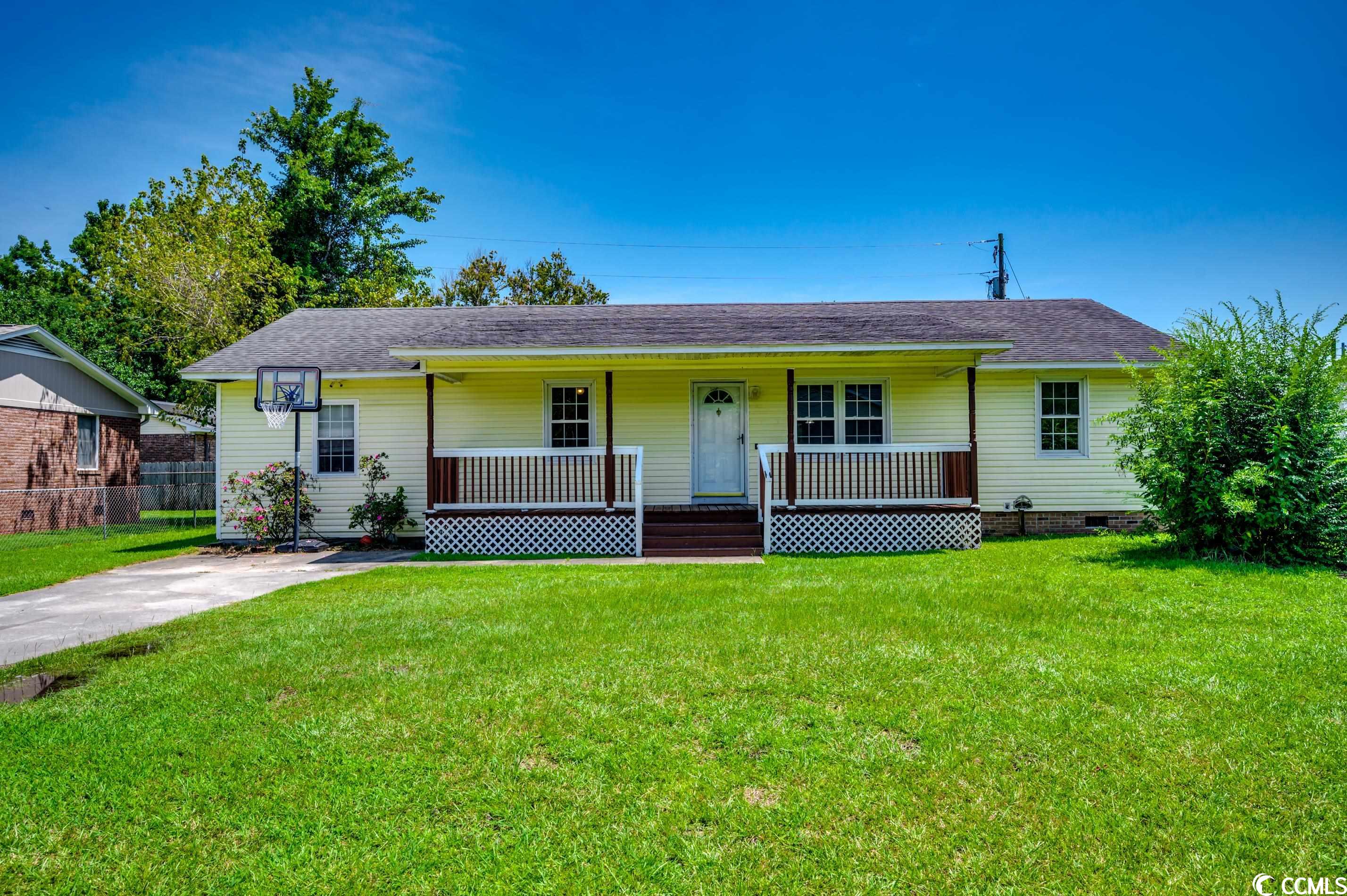 Home being offered in ""as is"" condition. This property is an excellent investment for a rental or move in and make it your own perfect place. You are greeted by a nice front porch just before walking into a spacious living room. The split bedroom plan offers privacy for you or your guests. Enjoy the open floorplan with the dining area allowing easy entertaining connecting the kitchen and living spaces. The back has so much to offer with a spacious covered porch and large fenced in backyard. Centrally located close to Market Common with easy access to the Myrtle Beach International Airport. This would be a perfect project for any handyman, do not miss out on this diamond in the rough. Square footage is approximate and not guaranteed. Buyers responsible for verification.