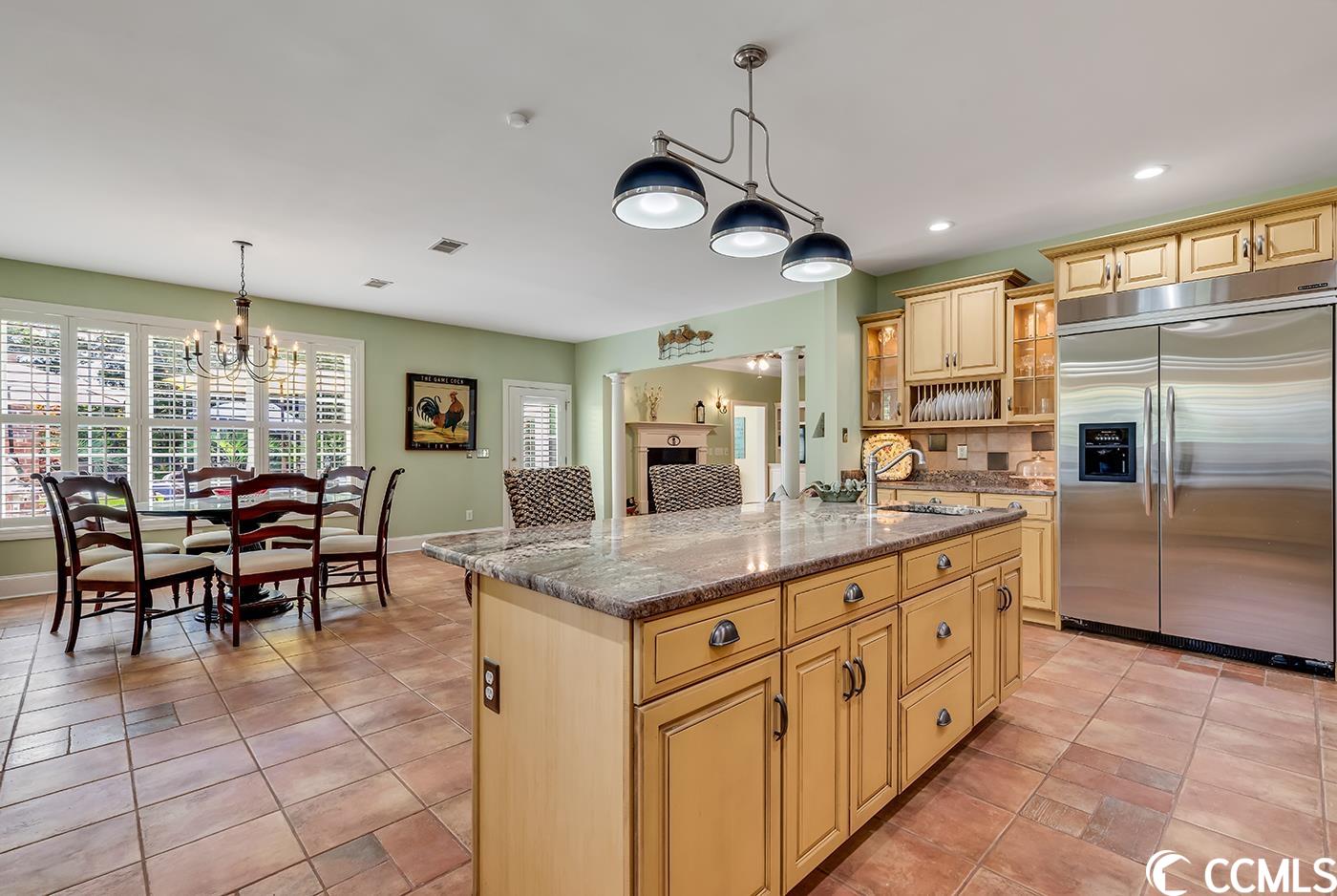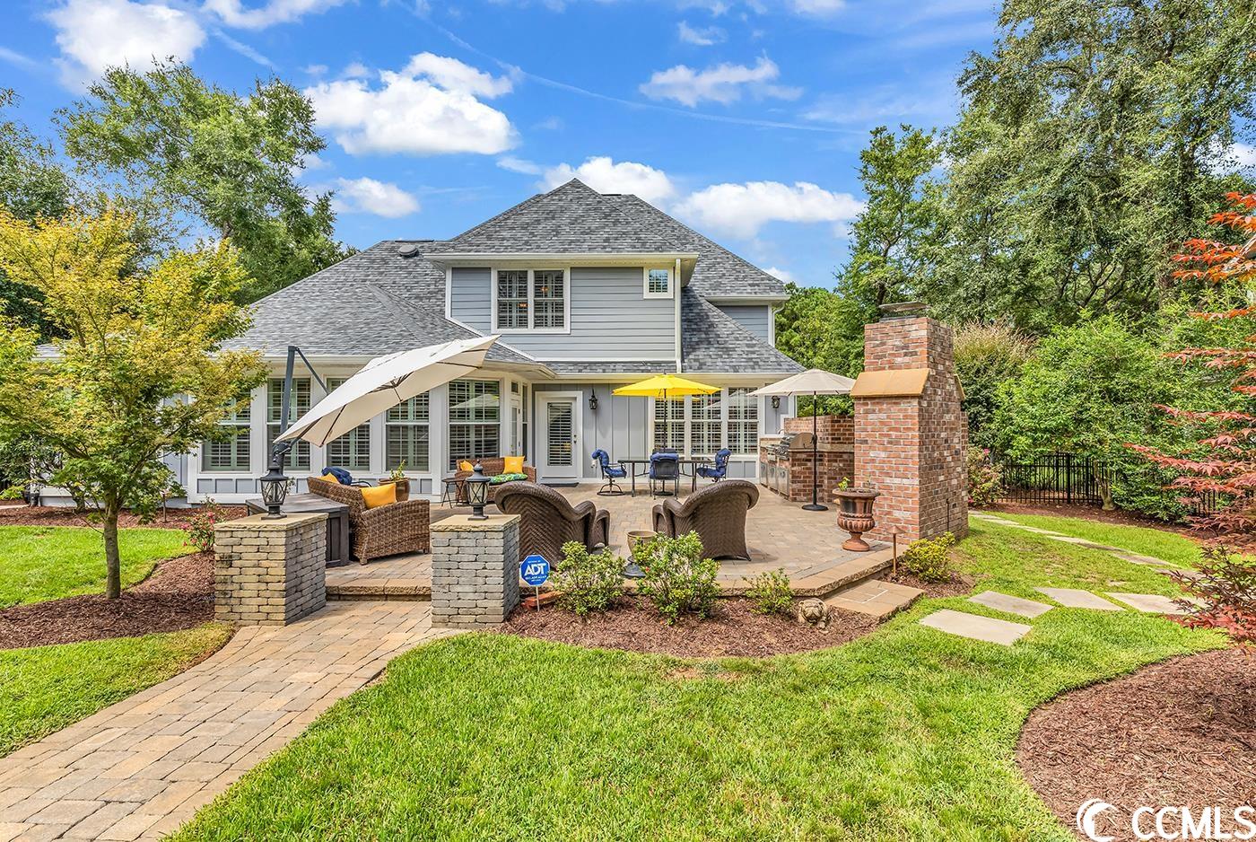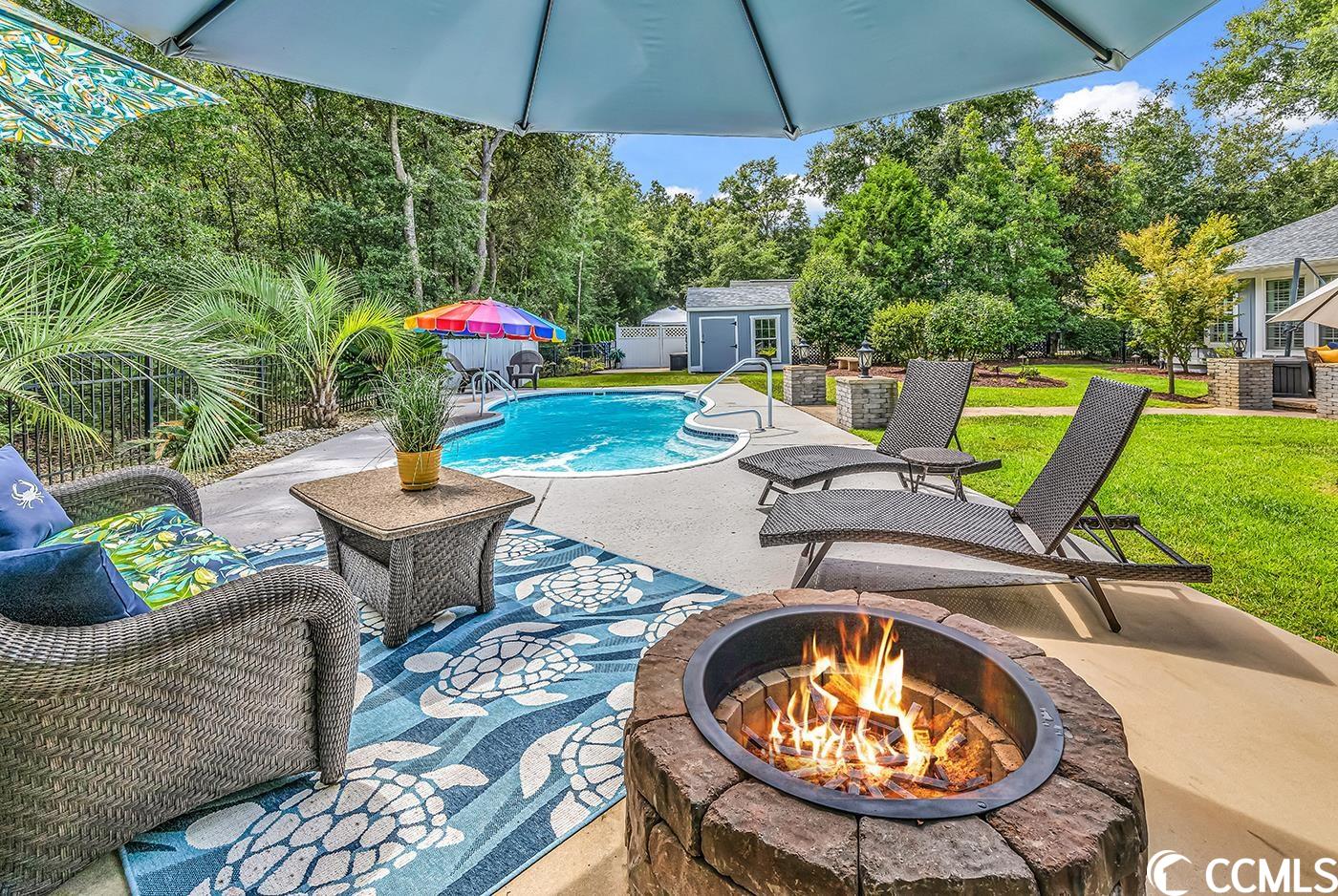 Very well maintained! Amazing custom built home offering 5 bedrooms, 3.5 baths, 3 car garage capability. Home only 5-10 minutes to beach, plantation shutters through out, new roof, siding, professionally landscaped with night lighting. Woman or man cave in third garage. Fenced in yard with nice outside patio and summer kitchen with stainless steel appliances, outside fireplace has stainless steel doors. Inviting salt water pool and pool shed. Pool has been maintained with new motor, salt cell and filtration system. Spacious gourmet kitchen with walk-in pantry. Home offers two living areas with primary bedroom on main floor. Double sided fire place in Carolina room. Upstairs has another primary bedroom, 2 additional baths with a 2023 remodeled hall bath and an office/study. Home also features a Central vacuum and is wired for surround sound. A must see home. Won't last long!