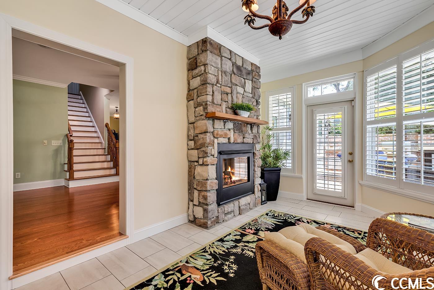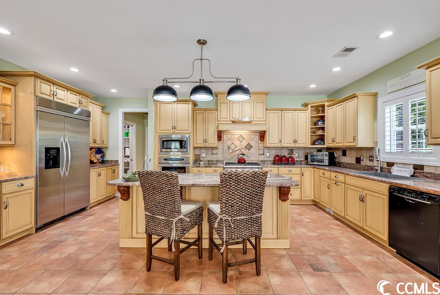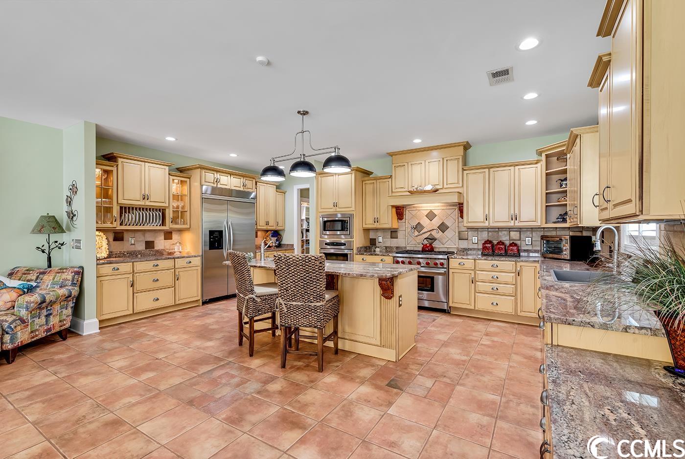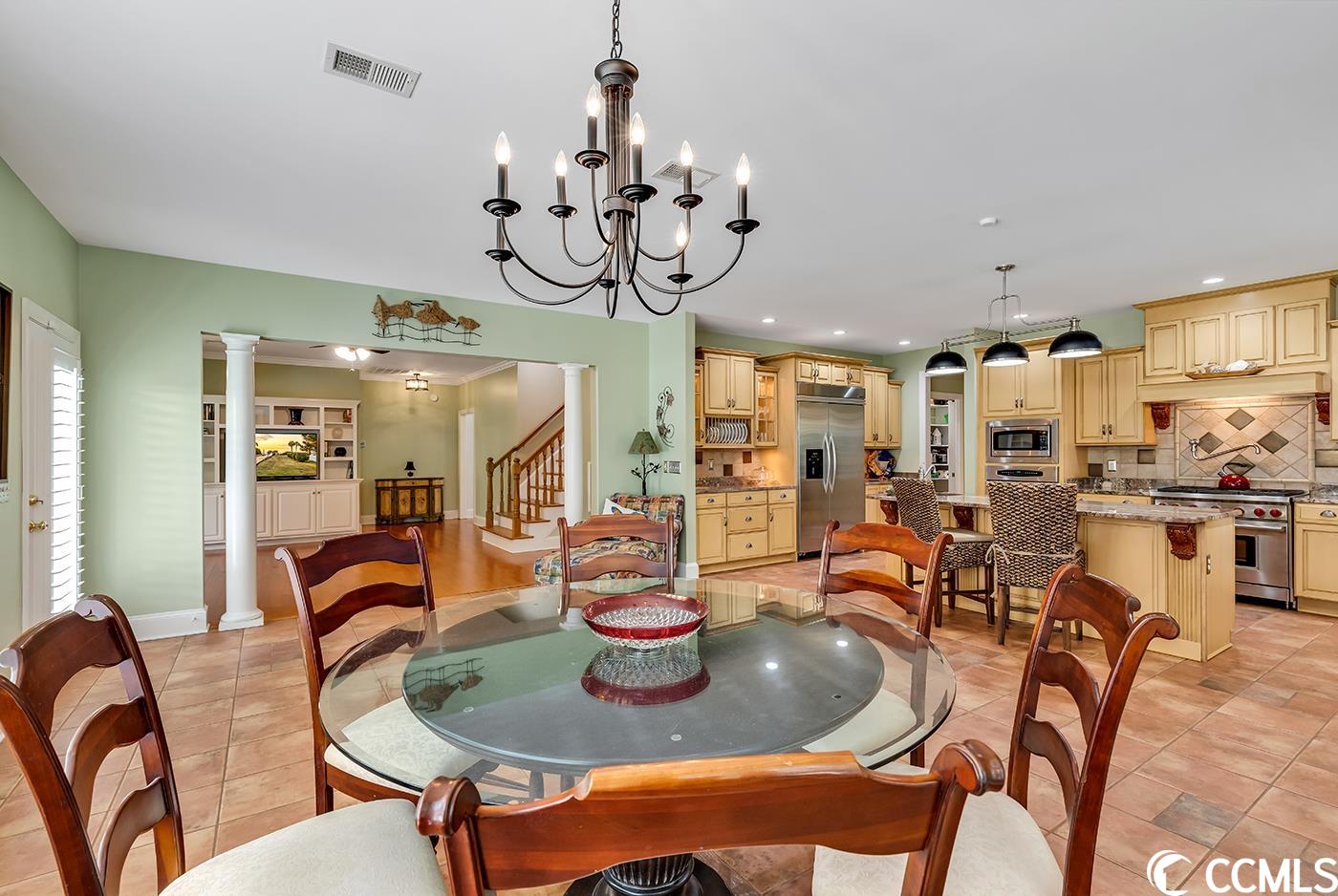 Very well maintained! Amazing custom built home offering 5 bedrooms, 3.5 baths, 3 car garage capability. Home only 5-10 minutes to beach, plantation shutters through out, new roof, siding, professionally landscaped with night lighting. Woman or man cave in third garage. Fenced in yard with nice outside patio and summer kitchen with stainless steel appliances, outside fireplace has stainless steel doors. Inviting salt water pool and pool shed. Pool has been maintained with new motor, salt cell and filtration system. Spacious gourmet kitchen with walk-in pantry. Home offers two living areas with primary bedroom on main floor. Double sided fire place in Carolina room. Upstairs has another primary bedroom, 2 additional baths with a 2023 remodeled hall bath and an office/study. Home also features a Central vacuum and is wired for surround sound. A must see home. Won't last long!