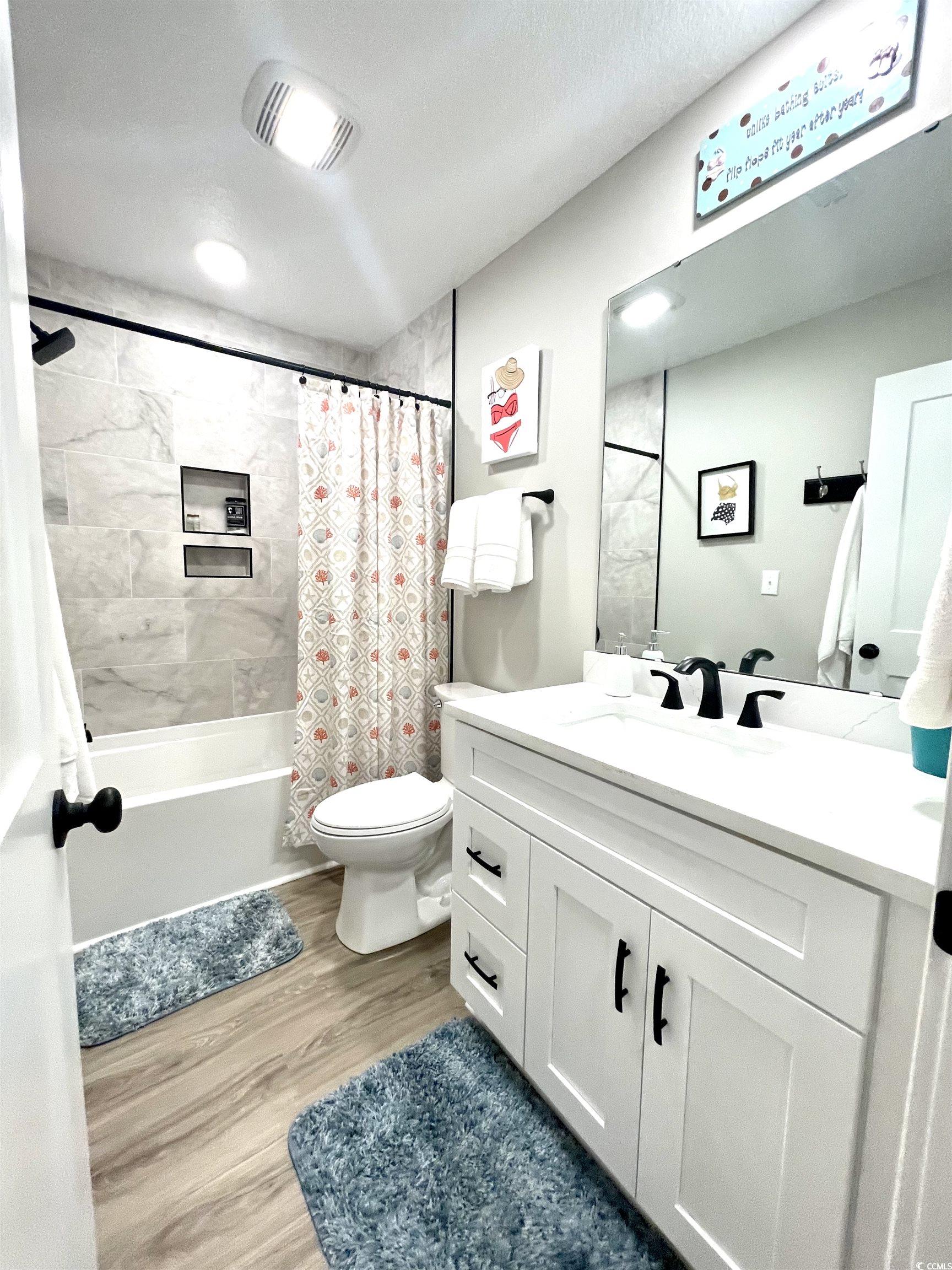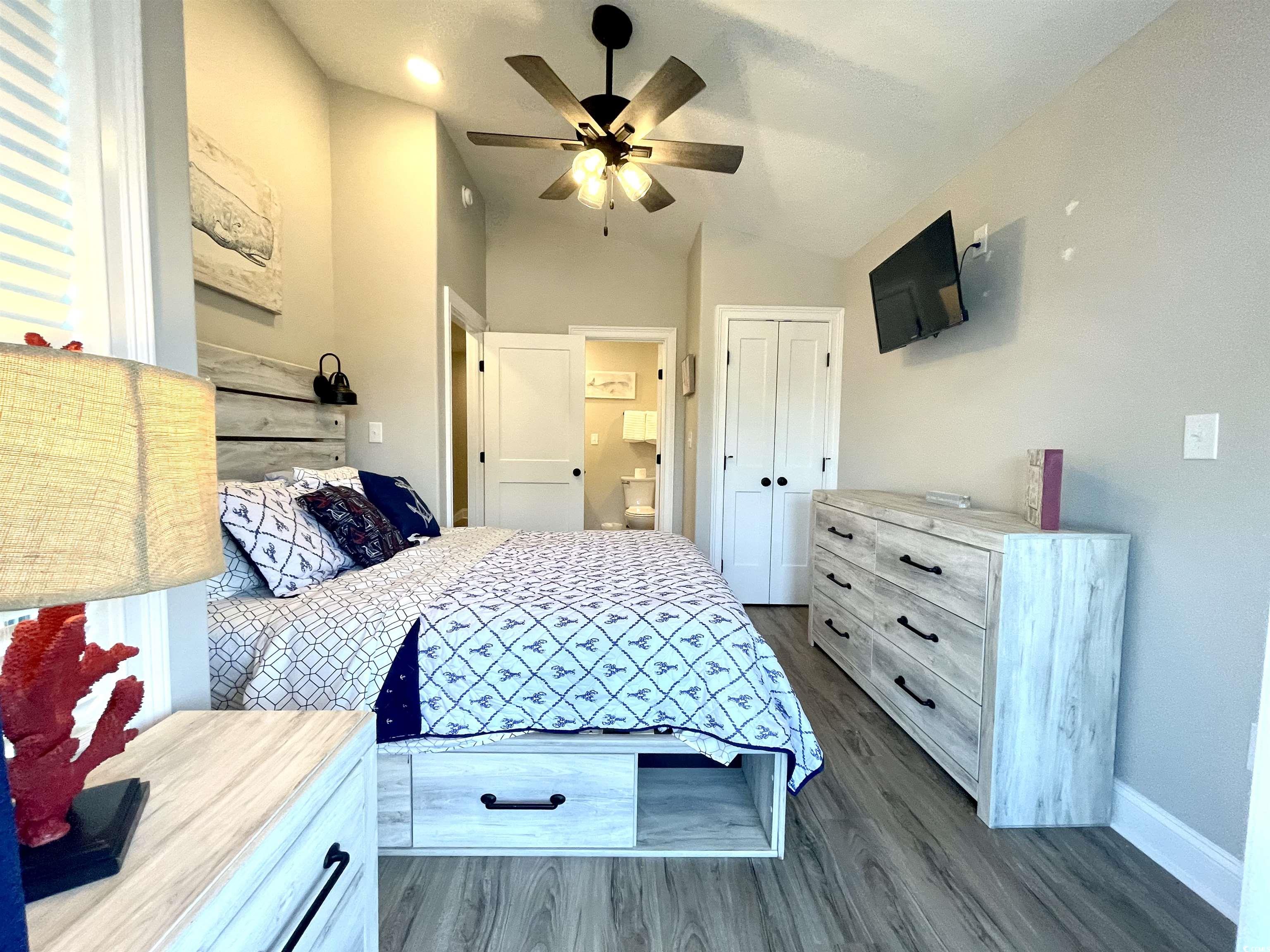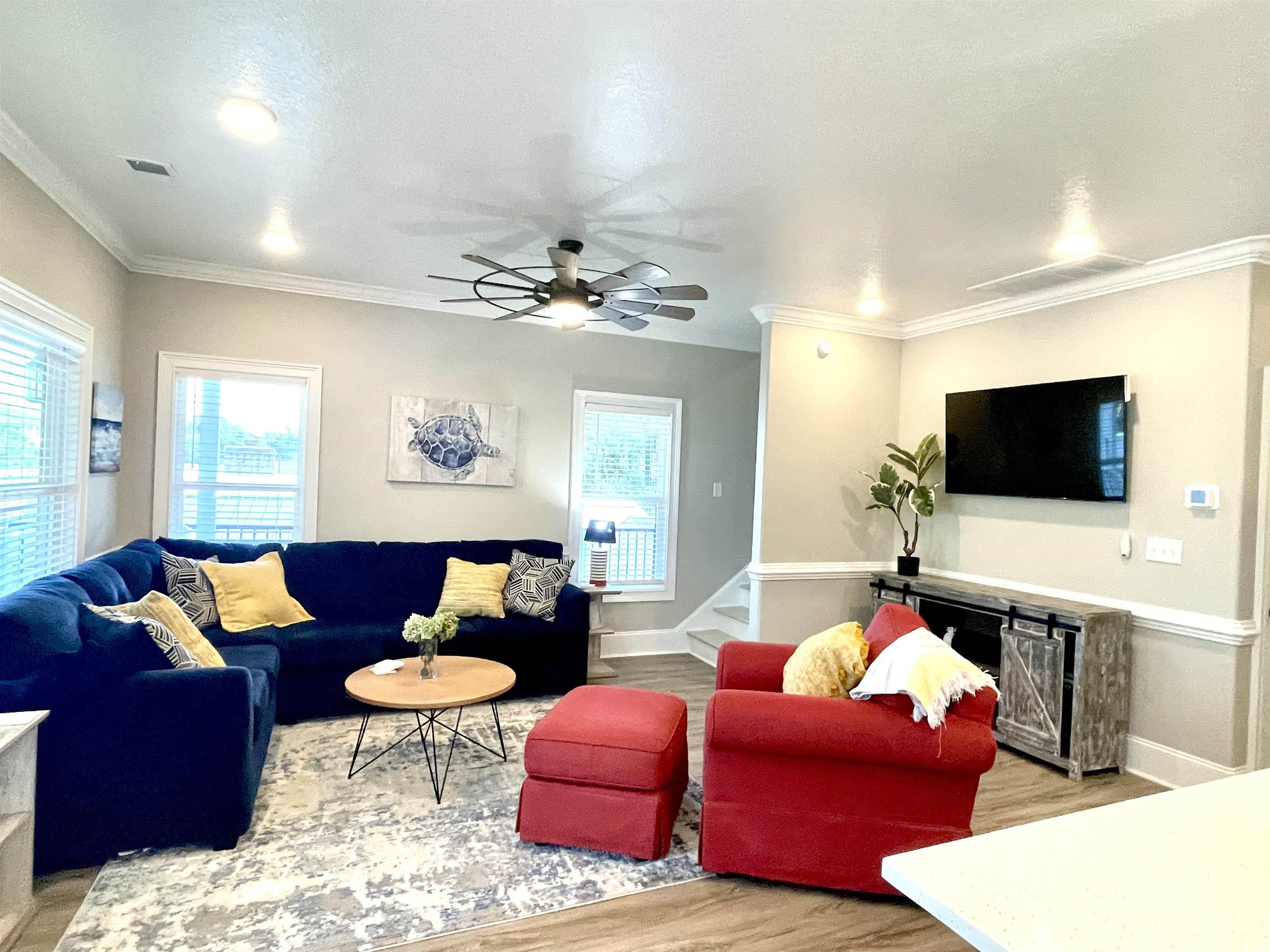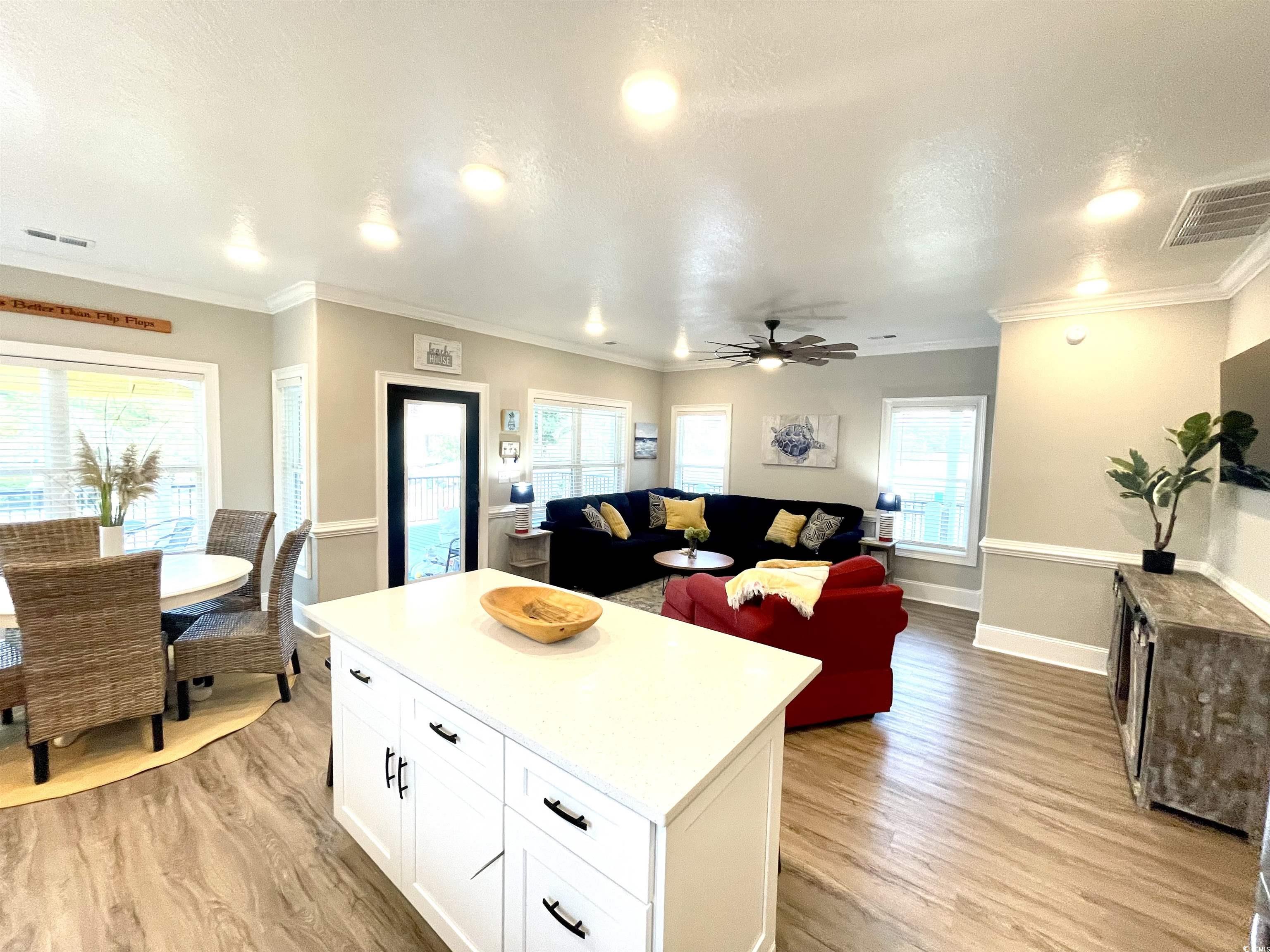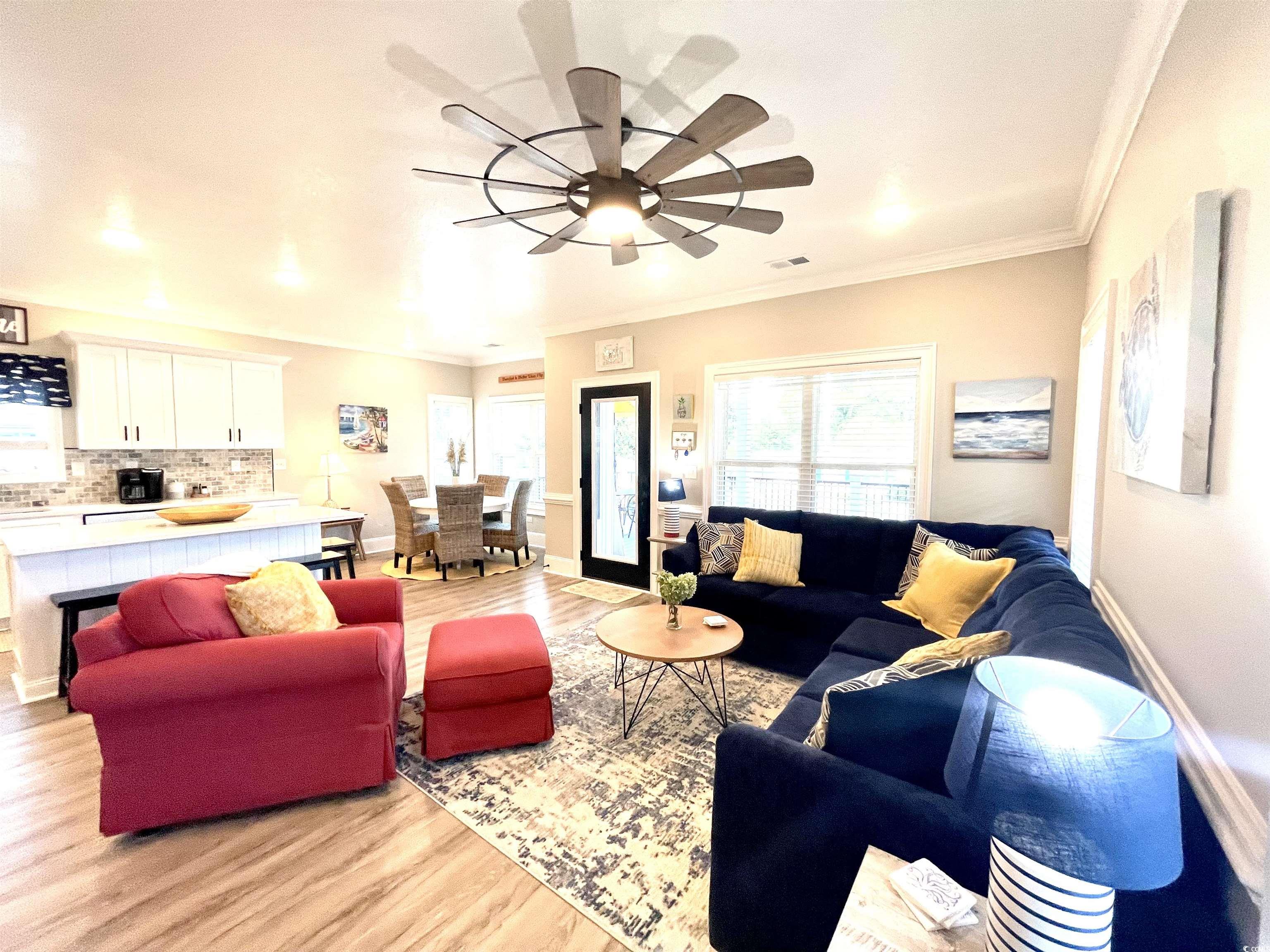your dream home just came back on the market. Introducing ""Putt-ing on the Beach!"" This Unique new construction home, completed in 2023, is virtually maintenance free and sits on an extra large double lot (by my count parking for 12). An easy walk to the beach, park and Rec center. Well-appointed with loads of upgrades including a private, 7 hole, putt-putt green in the front. Ditch the lawn mower because this home is surrounded by astroturf. 5 bedrooms, 4 1/2 baths with 1445 SQUARE FEET OF PORCHES that were constructed with Trex composite decking, another low maintenance feature (Double front and side covered porches). Walk through the front door and fall in love with the attention detail. Bright furnishing and decor, hand chosen to bring the beach indoors. The gourmet kitchen features staggered white cabinets with crown molding, solid surface counter tops, a large center island with seating for 4 and Samsung appliances. The owner's suite is located on the first floor and boasts a beautiful walk-in shower, dual vanities and built in cabinets for extra storage. Walk upstairs and you will find 2 bedrooms to the rear of the home each with vaulted ceilings and share the hall bathroom. To the front of the upstairs, you will find 2 master suites each with its own private bathroom, vaulted ceilings and French doors that lead out to the massive upper deck with views for days. Luxury vinyl plank flooring though-out, which is not just aesthetically pleasing but also durable and waterproof. A 2002 Club Car with new batteries will convey with home. Ocean Lakes family Campground has top-of-the-line amenities, include both an indoor and outdoor pool, lazy river, dump zone for your toddlers, arcade, mini golf, dog park, and private access to the beach. Voted best family campground year after year and winning numerous trip adviser awards and still family owned. Ocean Lakes has a full summer schedule for all ages and a full winter schedule to meet all your retirement dreams as well. Come and take a look today. Welcome home!