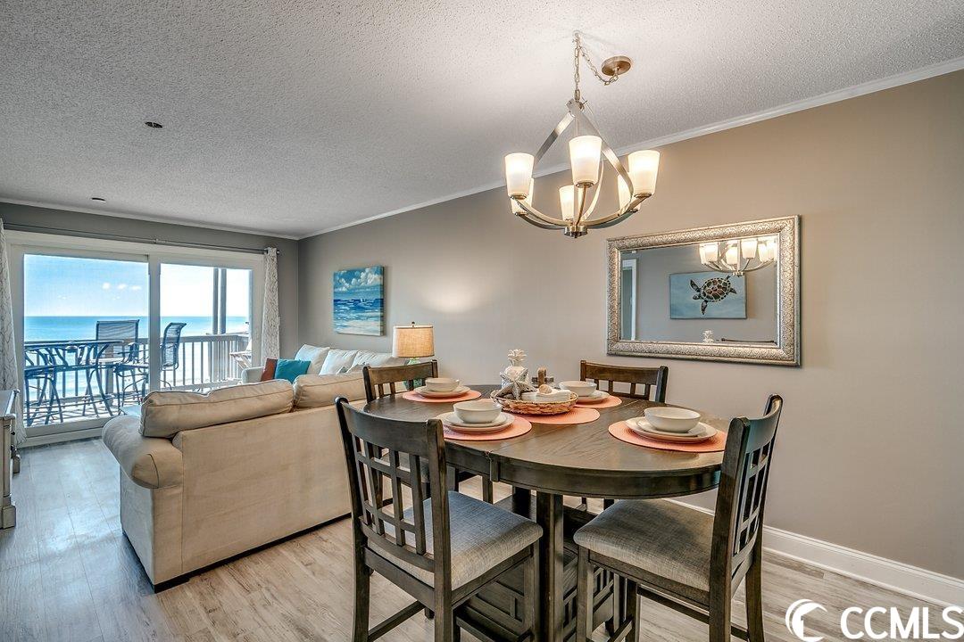 Paradise at the beach in this 3BD/3BA fully-furnished oceanfront condo in Garden City that hasn't been a rental since 2015! Wake-up to that beautiful sunrise and ocean breeze every day! Beautifully appointed kitchen was remodeled in 2018 with new shaker-style soft close cabinets, quartz countertops, tile backsplash, undercabinet lighting and stainless appliances. Easy-care newer vinyl floors from the front door to the rear slider. Updated furniture in the living room and dining area. The master bedroom offers a view of the ocean and ensuite bath with new vanity and light fixture and tile floor. The front bedroom offers a queen bed with ensuite bath has new vanity, toilet, shower, light fixture and tile floor. The 2nd guest bedroom with full trundle/twin bunk bed is adjacent to the 3rd full bath with new vanity, toilet, light fixture and tile floor. Additional features include crown molding throughout, whole-house surge protector, HVAC replaced 2022, water heater replaced 2018. HOA replaced the sprinkler lines in the hallways in Fall 2022. There is the ability to add a stacked washer/dryer unit in the front bedroom/bathroom after closing -- ask your agent for details. Interior unit sprinkler heads to be replaced in October 2023 - assessment already paid by Seller. There's a storage closet on the lower level near the stairwell for all your beach toys. This gorgeous unit is updated and ready for you to bring your suitcase and relish your life at the beach!