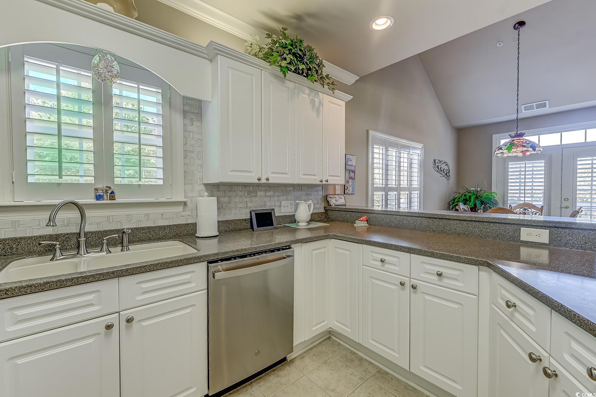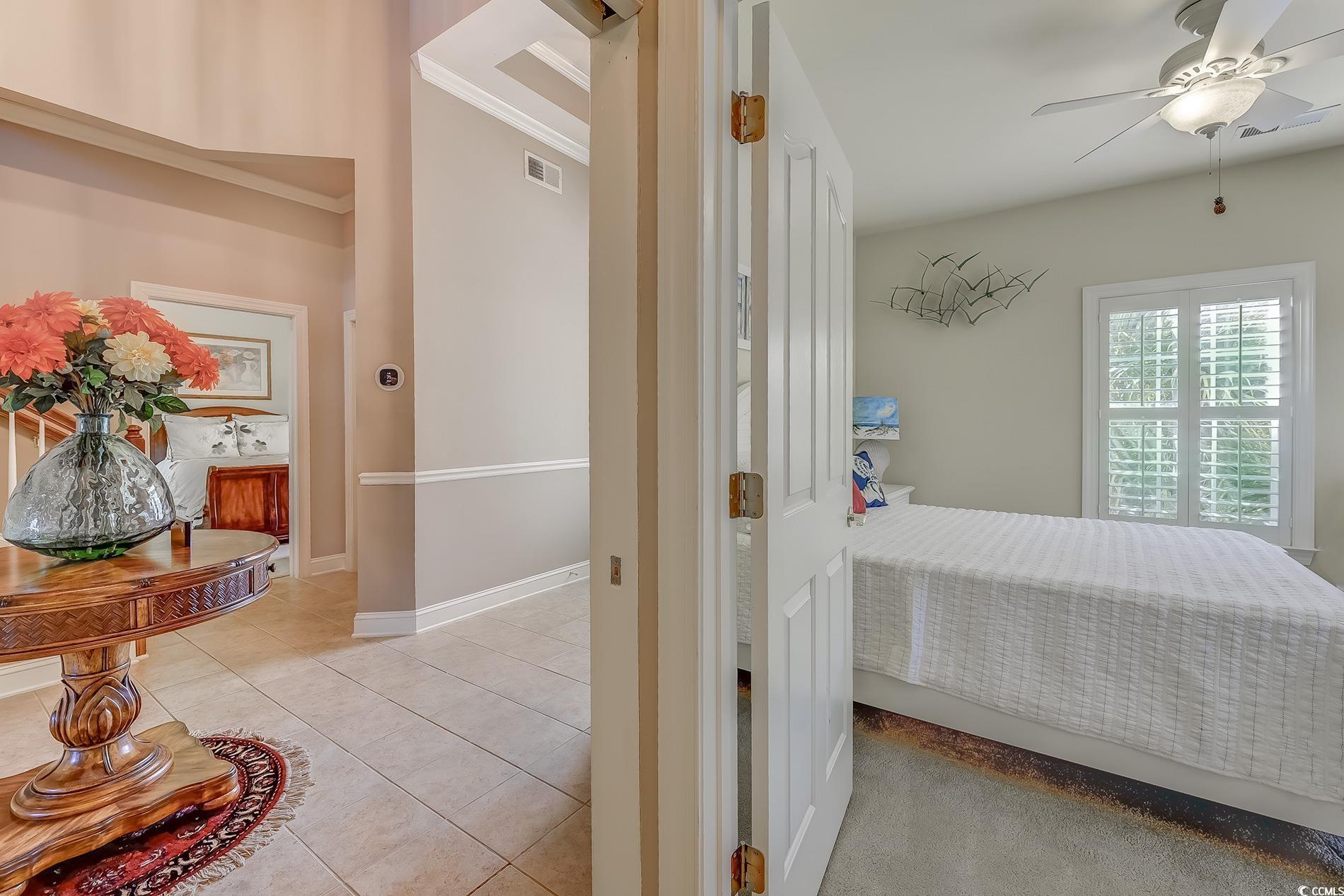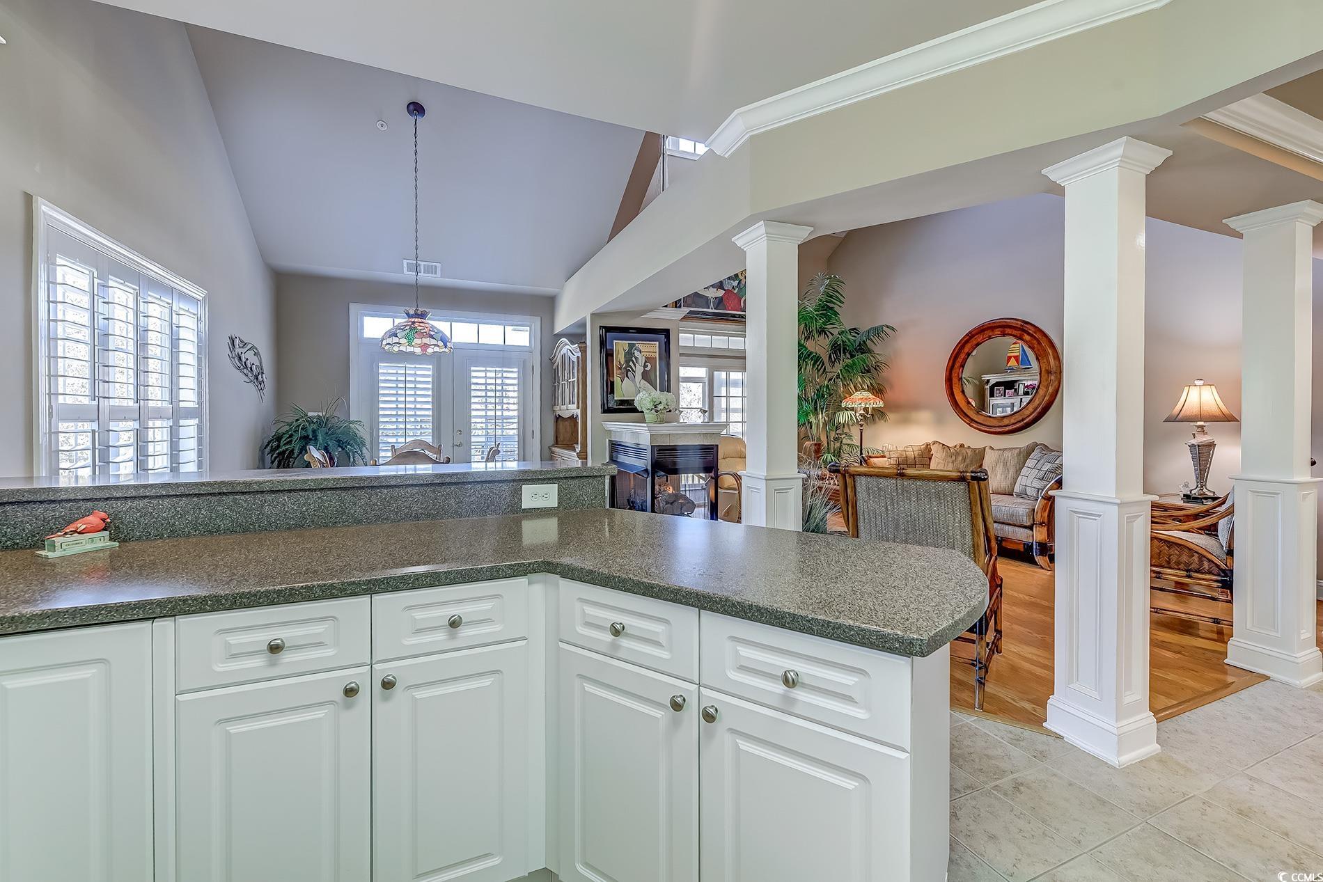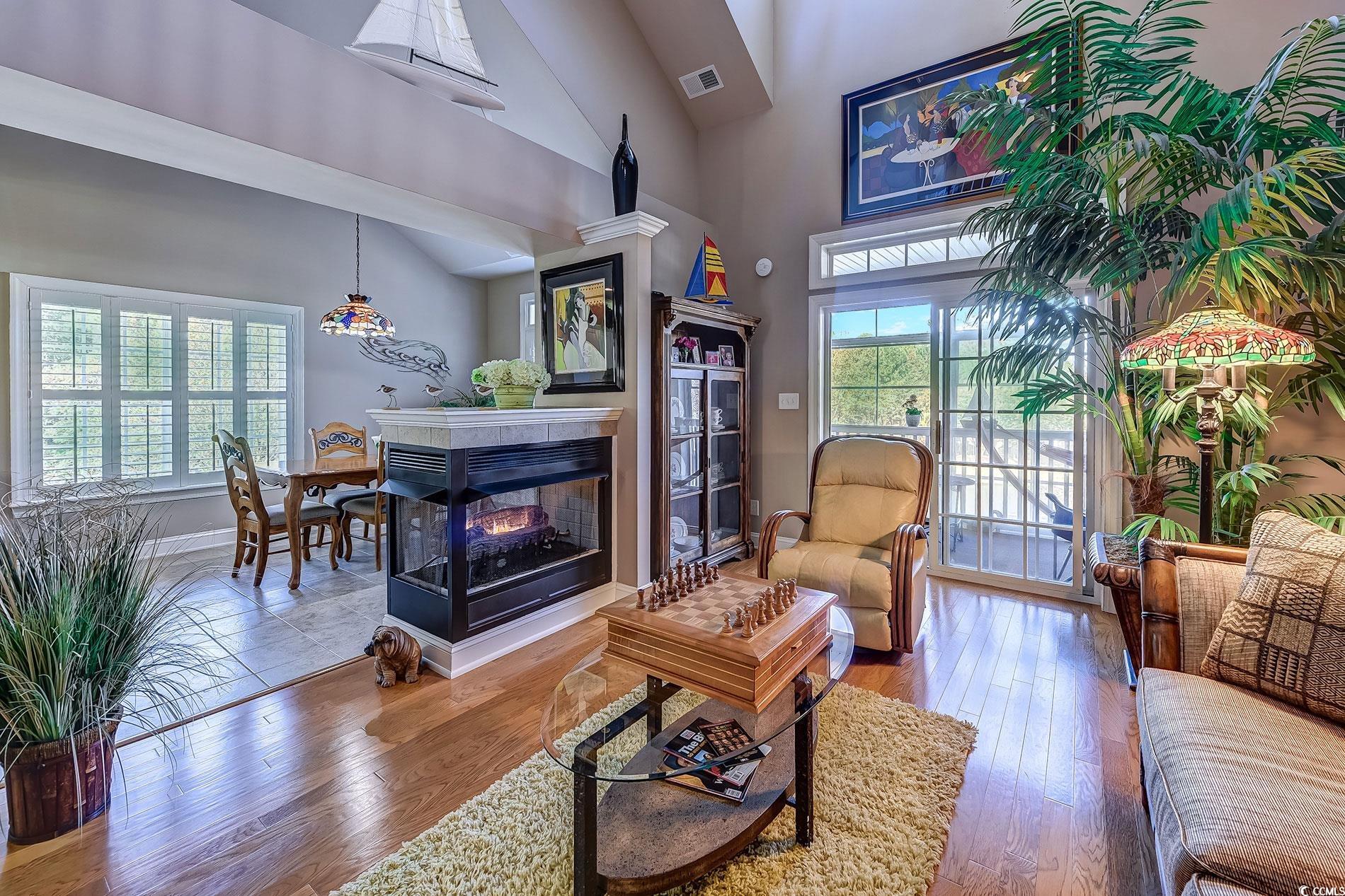 Immaculate, well-maintained luxury 4 bedroom, 3 bath, end unit condo, located in the prestigious gated community of the Villas at the International Club. The owners of this meticulously maintained home are the only ones who have lived in this condo since it was built.The condo was used as a second home for many years. Extremely spacious features include entering in the foyer with a breathtaking, vaulted cathedral ceilings, multiple tray ceilings and white plantation shutters throughout the house. The kitchen has updated appliances, new backsplash, Corian countertops, plenty of cabinets, counter space and a pantry. Preparing dinner in the kitchen, entertaining in the dining room or living room you can enjoy the three sided fireplace. This is an extremely open floor plan with able outdoor space and plenty of natural light. With access to the large back porch from your living room and master bedroom you can enjoy the beautiful pond view with a lighted fountain at night. Enjoy year around with the three season windows. There is also an open deck off of the dining room with stairs to the yard.The covered front porch includes security, motion lighted stairs.The master bedroom offers tray ceilings, a large walk-in closet, with access to the balcony. The master bath is very spacious and also features a Jetted tub, double vanities and walk in shower. The first floor also features 2 more spacious bedrooms one being a en suite.The Laundry room is on the first floor with plenty of storage space. Upstairs, one more bedroom with an en suite and a walk in closet. Across the hallway, ""a loft area, great space for a cozy chair and a good book"" is a bonus room being used as a family room. Looking for storage? There are two doors that lead to two large floored attic spaces for lots of storage. This condo is close to the villas pool which HOA has made it available for sunning & socializing year around. Stores, restaurants, the beach, golfing, boating are but minutes away. This would make a great second home or permanent residence. Close to Hospitals, shopping, and the Murrells Inlet Marshwalk, Huntington Beach State Park, and Brookgreen Gardens. Schedule a showing today!