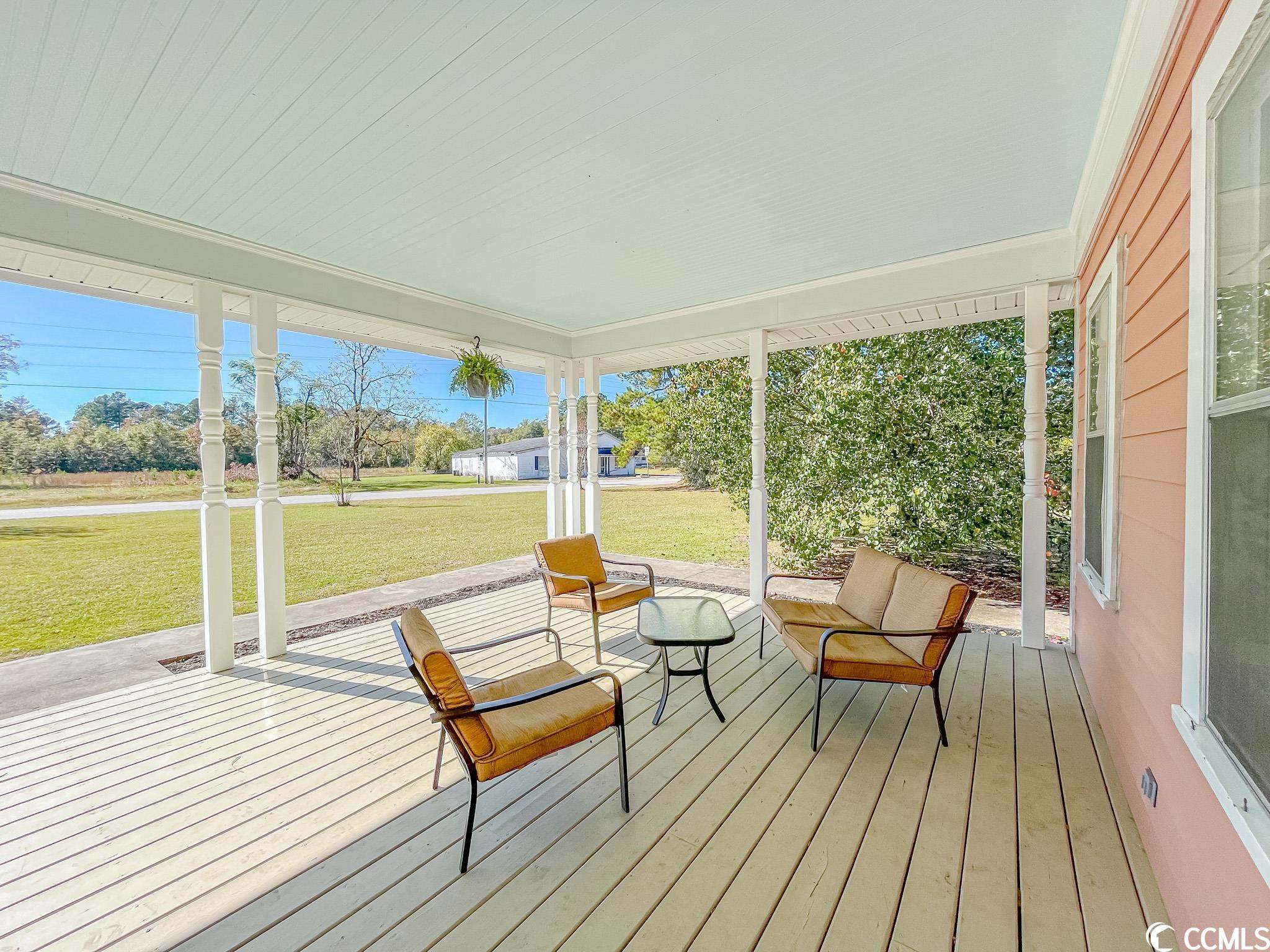 Single level Low Country style home with over 2700 heated sq feet of living space and located in the rural section of Georgetown county. This 2.45 acres offers a large garden spot, fenced pony pasture with metal hay barn, a 30 x 50 insulated metal building for all your tools, lawn equipment and such and has 110 and 220 voltage and a 12 x 16 storage shed. This spacious home features Oak hardwood flooring, thick molding around door frames, 4th bedroom/flex space could be perfect for an office, eat in kitchen with granite counter tops, Kenmore smooth top stove with side bread pan oven, Bosch dishwasher and large formal dining area. Large master suite with smooth ceilings, ceiling fan, custom built full overlay cream color bathroom cabinets, granite counter tops, double sink, claw tub, decorative walk-in tile shower and walk-in closet with built in shelving. Other features include vaulted pine ceiling Carolina room with glass sliders overlooking large concrete patio, extra attic storage, large laundry area with side deck area, gutters, front and back roll up doors in Metal building. Owner's favorite characteristics are the 30 x 15 front porch sitting at late afternoon and watching the sun set skies or having morning coffee in the Carolina room as she marvels at all the birds as the sun rises.