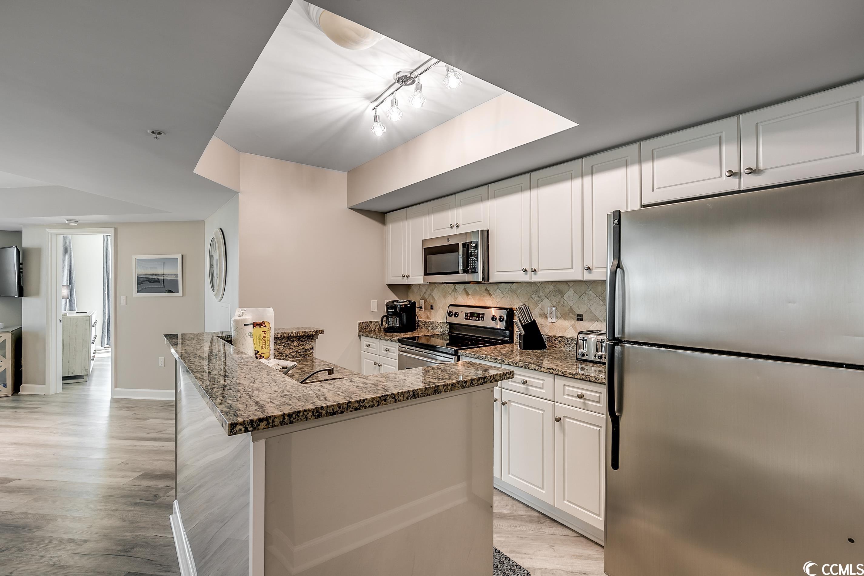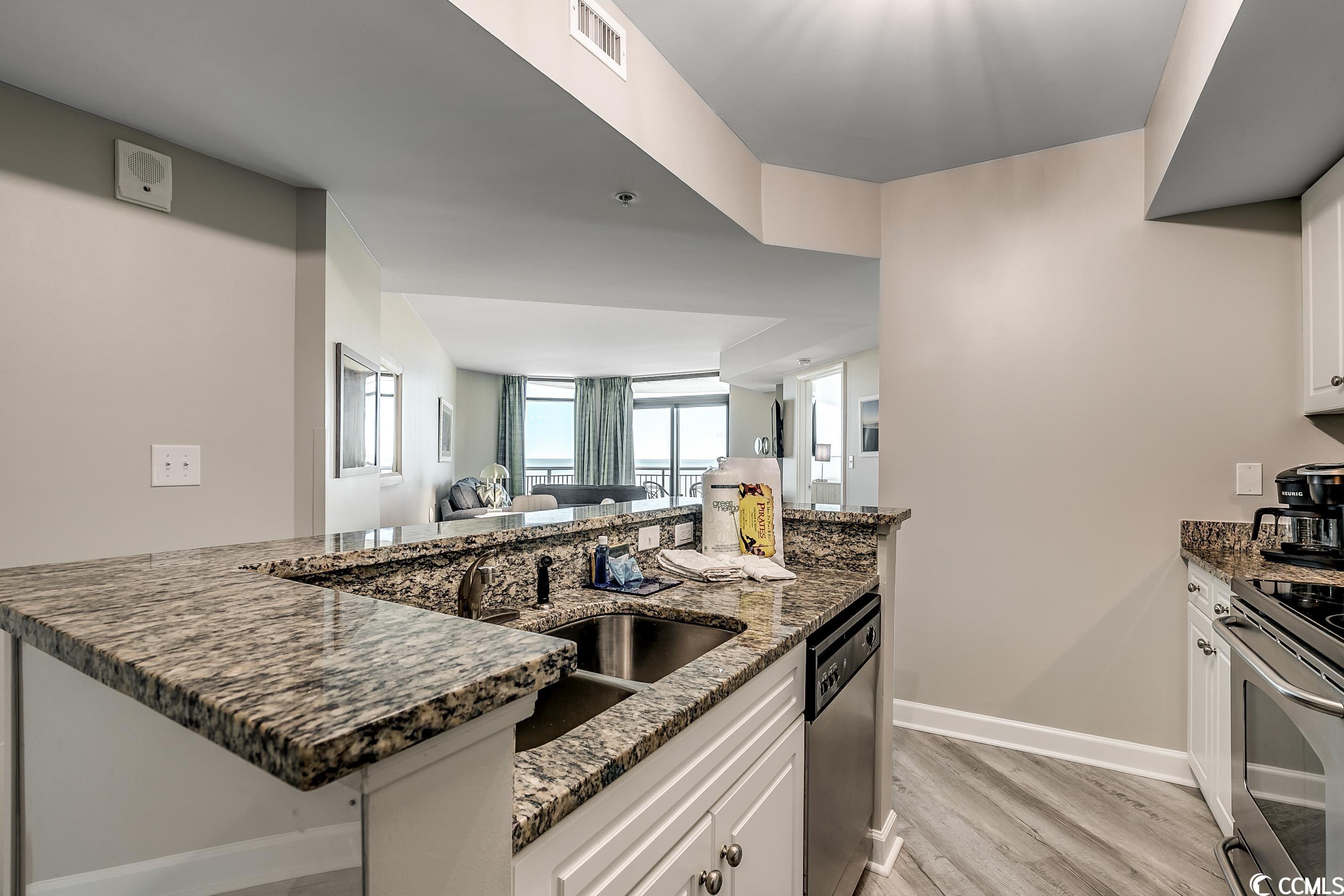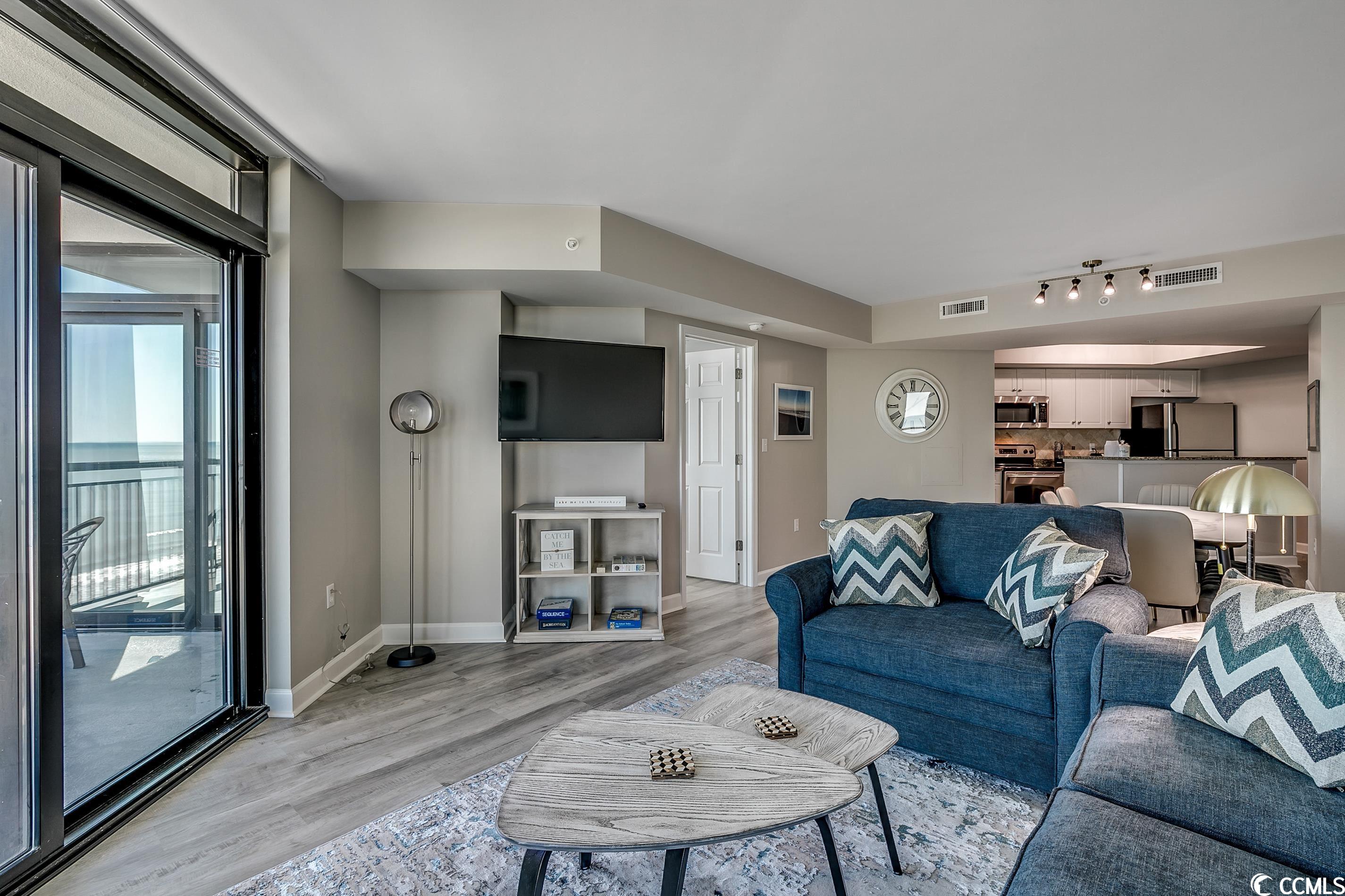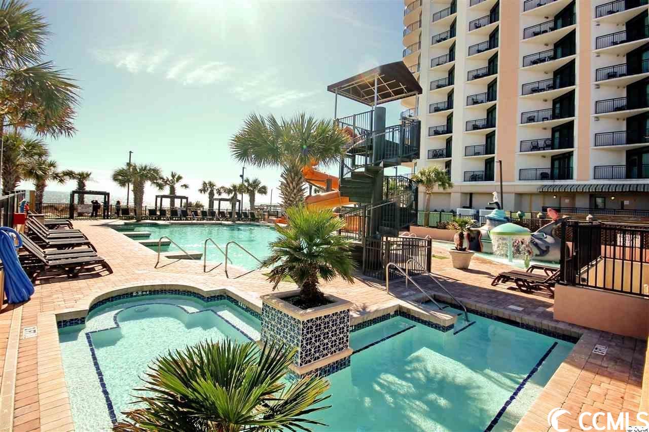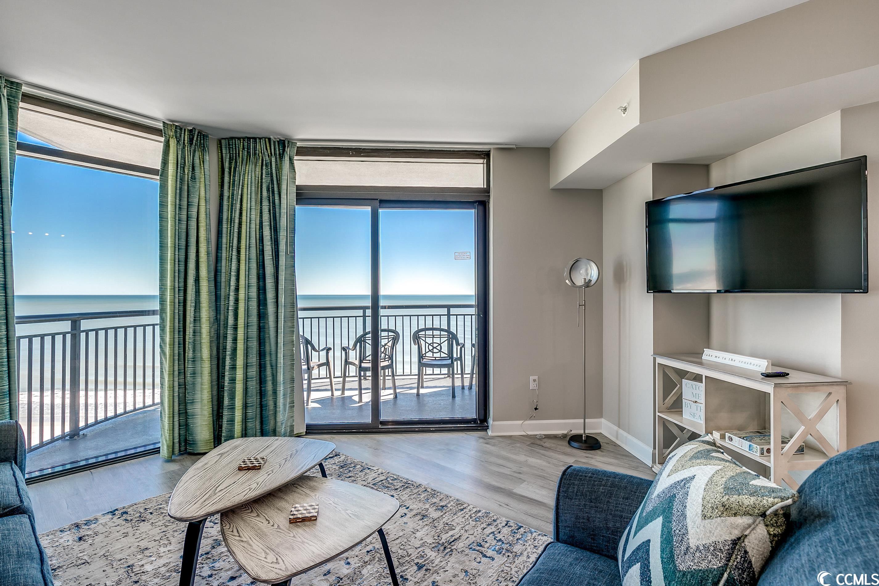 Amazing oceanfront 4 BR corner unit at The Caribbean Resort with spectacular ocean and northern coastline views. Unit has been completely upgraded with luxury vinyl plank flooring, paint, decor and furniture! Ocean front access to the balconies off the living room and master bedroom which share a huge wrap-around balcony. Two other bedrooms also have private ocean view balconies. Condo also has a new HVAC system, washer / dryer and microwave! Amenities include: water park, indoor/outdoor pools, hot tub, lazy river, tiki bar, gift shop and much more! Excellent location walk to shops, restaurants, and entertainment. Great rental income! Don't miss this opportunity!!!