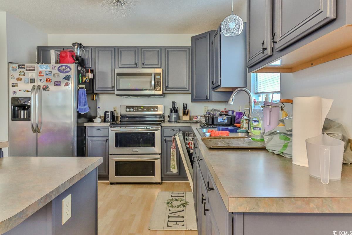 Welcome to 4314 Bayshore Dr, a charming 4-bedroom, 3-bathroom raised beach house in the heart of Little River, where coastal living meets convenience. The best part? No HOA restrictions to cramp your style! Step into the open and bright living room, where easy flow defines the main area, flooded with an abundance of natural light. The stylish kitchen boasts stainless steel appliances, including a convenient double oven, a practical work island, and a welcoming breakfast barperfect for both casual meals and entertaining guests. The master bedroom features a spacious walk-in closet and large windows that invite the outdoors in. The master bathroom offers a vanity and a roomy walk-in shower. But that's not allon the ground level, discover a full in-law suite with a bedroom, full bathroom, kitchen, living room, and laundry hook-up. This versatile space adds both flexibility and privacy, making it ideal for guests, extended family, or even as a rental opportunity. Take a moment to unwind on the front porch, a great spot to soak in the sights and sounds of the welcoming neighborhood. In the backyard, a covered patio beckons for entertaining or simply enjoying the outdoors, and a convenient storage shed adds practicality to your living space. Situated just off Hwy 17, this residence offers easy access to The Intracoastal Waterway, Cherry Grove Beach, Barefoot Landing, Tanger on 17, excellent golfing opportunities, shopping, dining, and entertainment. Embrace the coastal lifestyle and make 4314 Bayshore Dr your new home, book your showing today!