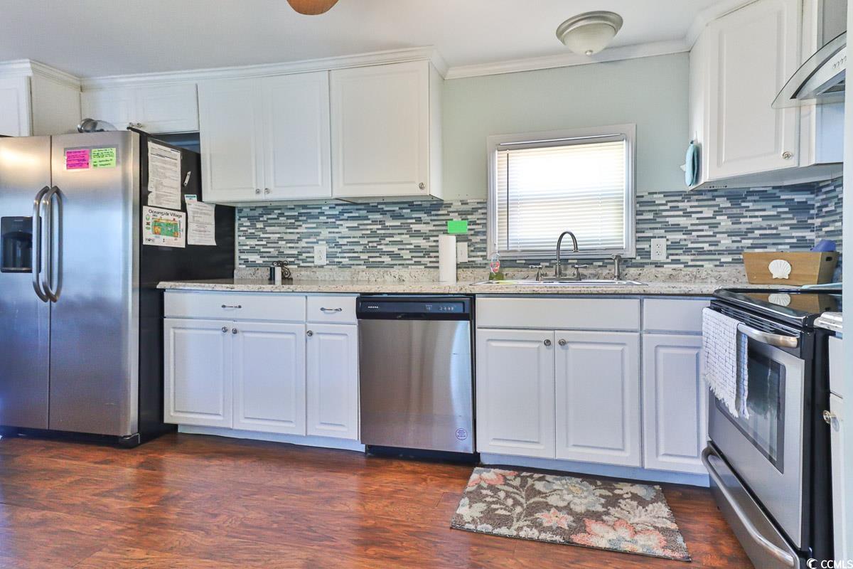 Welcome to 275 Flamingo Ct in the coveted Oceanside Village community of Surfside Beach an enticing 3-bedroom, 2.5-bathroom abode that awaits your investment dreams, vacation retreats, or permanent coastal residence. Nestled within the secure embrace of a private gated community, this charming home beckons you to embrace the beach lifestyle. Upon entering, the living room is generously bathed in natural light, creating a welcoming and bright ambiance. The kitchen boasts stylish stainless steel appliances, an abundance of counter space, and ample cabinet storage, providing a delightful space for culinary adventures. In addition to the inviting living areas, the home features three spacious bedrooms, ensuring comfortable living for family and guests. A designated laundry room, complete with a separate entrance, adds to the convenience and practicality of this coastal haven. For outdoor enthusiasts, the front porch offers a perfect spot to immerse yourself in the sights and sounds of the charming neighborhood. Meanwhile, the side porch extends your living space outdoors, ideal for entertaining or simply unwinding. An additional bonus is the outdoor shower, enhancing convenience. Oceanside Village epitomizes the best of coastal living with its wealth of amenities, including a refreshing pool area, tennis courts, a clubhouse, and private community beach parking and access. Conveniently situated near Business 17, this location not only situates you within a beach community but also within minutes of The Murrells Inlet Marshwalk, Brookgreen Gardens, The Market Commons, The Intracoastal Waterway, renowned golf courses, abundant shopping options, diverse dining experiences, and vibrant entertainment venues. Don't miss out on this opportunity, book your showing today!