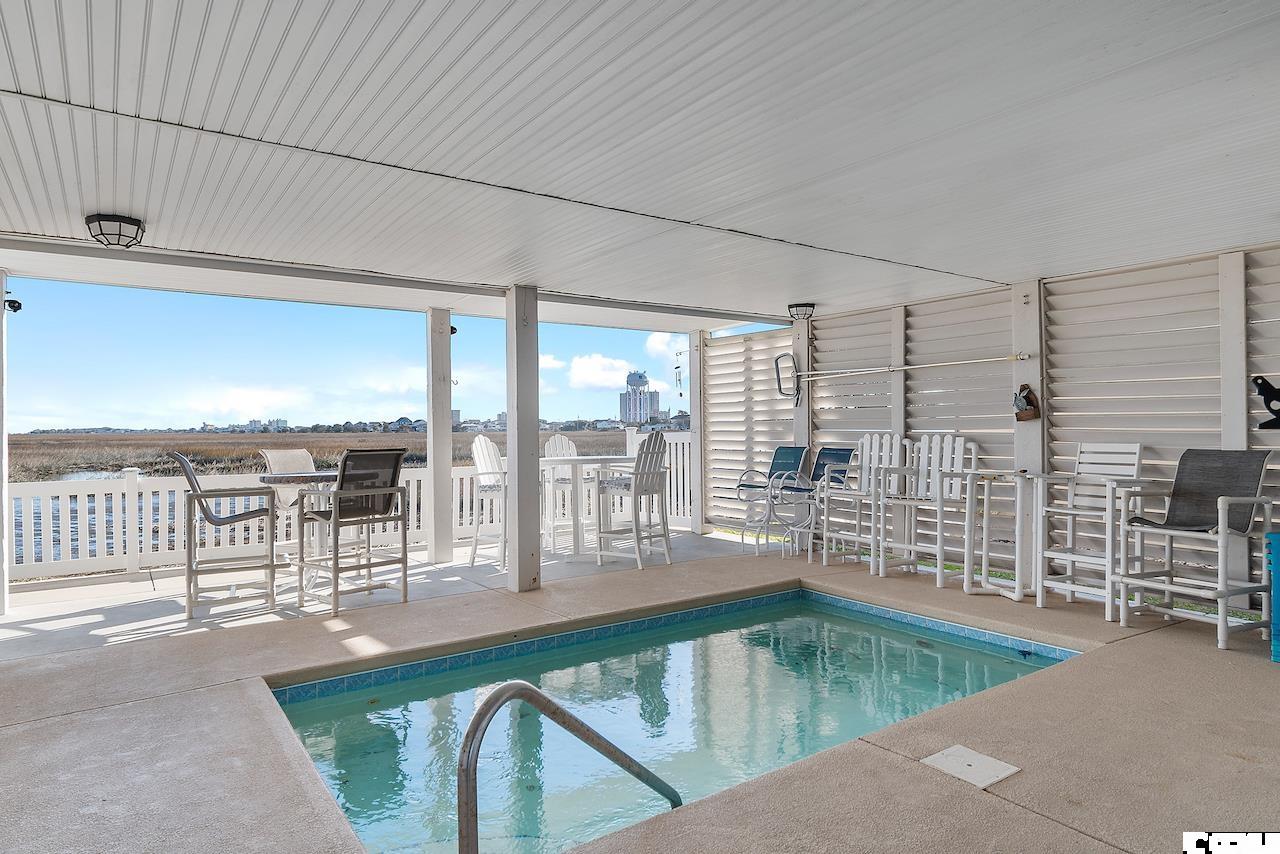 Behold! The ultimate Cherry Grove retreat! Nestled on the Marsh and just a skip away from the sandy beaches in Cherry Grove, this raised beach house is the stuff of dreams. With 5 bedrooms and 4 full baths, it's perfect for the whole gang. This beauty sleeps 14 people!! Main floor is completely open for optimal entertaining. Every floor boasts an enchanting balcony to take in the amazing sunsets, while the private pool beckons you to take a dip. Did we mention the private elevator? Plus, hardwood floors and granite countertops make it a real swanky joint. Oh, and let's not forget the luxurious first-floor master bedroom. Can we move in already?