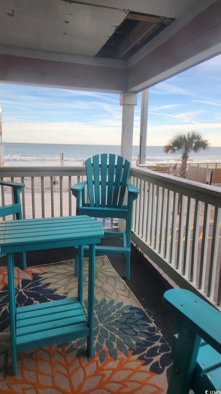 Do you want to wake up in your bed in your beautifully furnished master bedroom, open your eyes and see and hear the waves of the Atlantic Ocean? That exactly what you can do if you make this condo your own!! Units in this building do not become available very often so now is your chance to own your happy place! This unit comes fully furnished so just bring your suitcase and you will be ready to call this place home. New LVP (Luxury Vinyl Plank) flooring was installed just last year as well as a new HVAC unit. The building received a new roof in 2022. There is a large storage area on the ground level of the building assigned to each unit for their personal use and storage. Parking spaces available under the building and this unit is just one flight of stairs up on the first floor. As stated above, units in this building do not become available for sell very often. This building only has 18 units. There is an HOA and it includes the expenses for maintenance, insurance, water, sewer, trash, cable, internet and other fees shared by other homeowners. Your electricity is a separate bill. You will need to secure insurance for the contents of your unit separately as well. The three bedrooms are furnished with quality furniture and bedding. There is a king bed in the spacious master bedroom along with a private bath. There is also a door leading out to the deck from the master bedroom for easily accessibility to the beautiful view. The second bedroom has a queen bed along with bunks, twin over twin. The third bedroom also has a queen bedroom with bunks, twin over full. There is an extra room for sitting or enjoying some peace and quiet or even a children's den with a television. There is a futon in this room if extra sleeping space is needed. The kitchen is fully furnished and offers up-to-date appliances and other needed kitchen items. Come see for yourself why this unit is so unique and how close your are to the beach. Just a few steps and your toes will be in the sand. This would be an excellent rental property for investment property, however, the current owner did not have the unit on a rental program. Don't wait to view this property. It won't be available long.