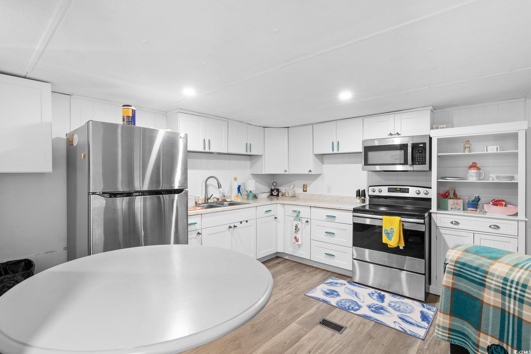 If you want a piece of the beach life that is walking distance to the ocean, then you must see this totally renovated 3 bedroom, 2 bath home in Garden City. The recent upgrades include new flooring, plumbing & kitchen cabinets/countertops that were installed in 2022. All you need is a key for the fully furnished home. The spacious master bedroom features 2 closets and private bathroom. Enjoy the sunsets on your spacious front porch or the climate controlled Carolina room. The home features two large storage sheds for your golf cart and personal workshop. The deep lot gives you plenty of parking space. Close to all beaches, shopping, restaurants, & attractions Garden City beach has to offer.