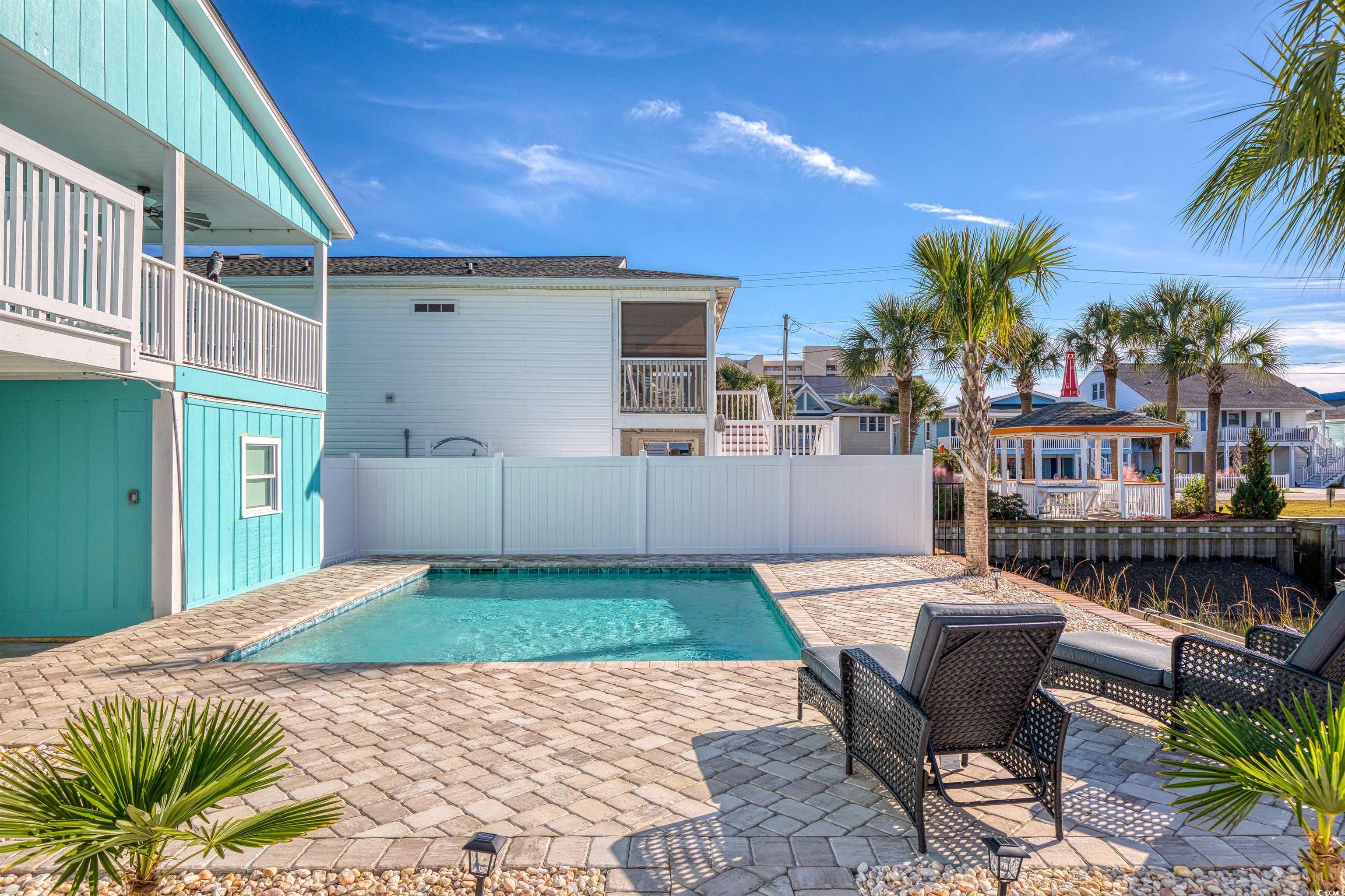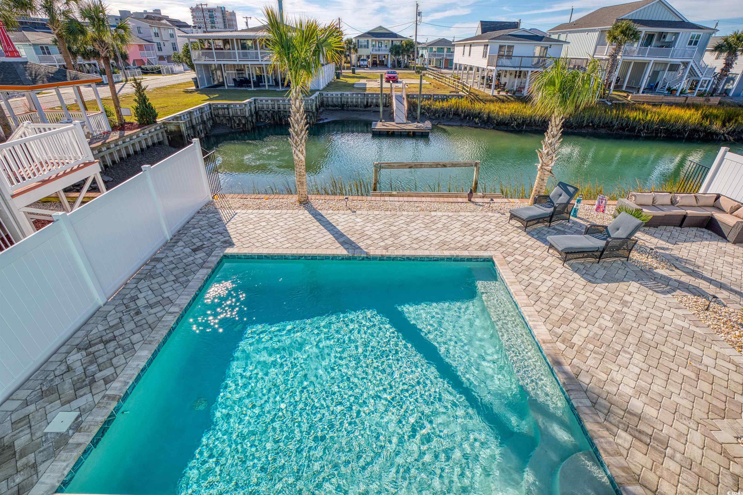 Completely renovated and updated, fully furnished and appointed, 5 bedroom, 4 bathroom, channel home close to the beach in the Cherry Grove section of North Myrtle Beach. This wonderful home has so much to offer inside and out and includes a nice pool (with pool heater and cooler), pavers with tropical landscaping, recently painted inside and outside, garage and storage space, front porch, rear porch with views of channel and pool, outdoor living space, 1 car (or golf cart) garage with storage, covered and uncovered, outdoor shower, LVP and tile flooring throughout, crown molding, flat ceilings, new fixtures throughout, sheetrock walls, new kitchen cabinets, granite countertops, new high end stainless steel appliances, backsplash, replaced doors and windows, new toilets throughout, new vanities, master suite, tiled walk in shower, heated mirror, and mounted flat screen TVs. Downstairs (ground level) has a bedroom, full bathroom, and a living area. All this in a great location.