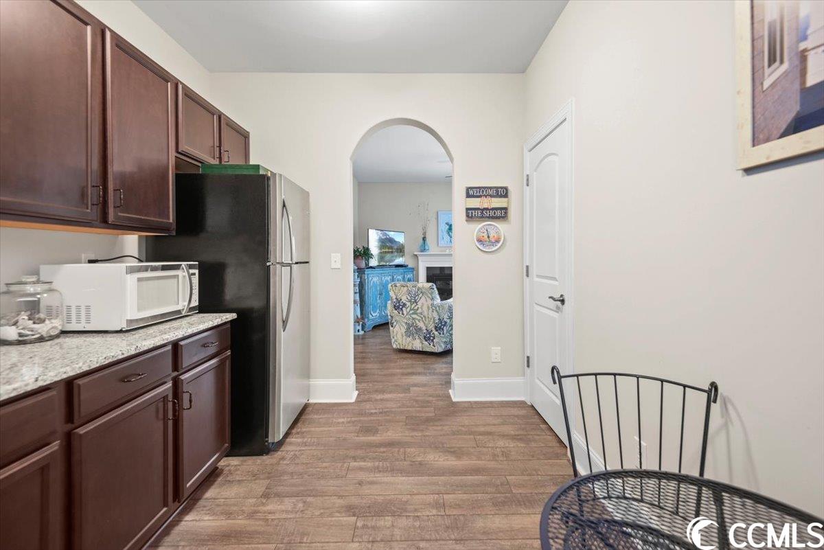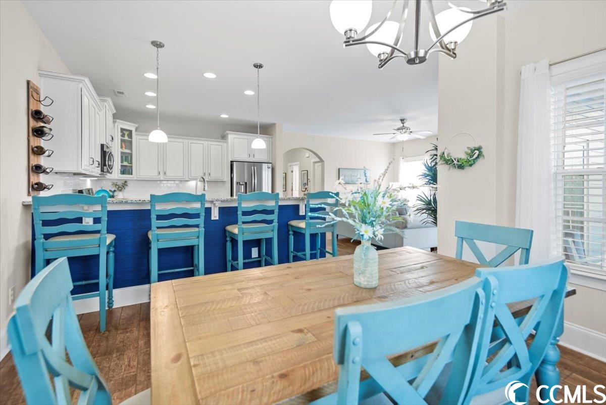 Welcome to your dream coastal retreat in the heart of North Myrtle Beach's Ocean Hill Community! This stunning 5-bedroom, 5.5 bathroom residence, built in 2018, awaits those seeking luxury, comfort, and privacy all while being just 2 blocks from the sandy beaches! Spanning three floors of living space, this residence is equipped with an elevator for easy access. This first floor boasts a cozy family room, a full bathroom, a bedroom, and a convenient kitchenette! On the second floor, an open floor plan welcomes you with a seamless flow between the kitchen, living, and dining areas. The kitchen boasts granite countertops, stainless steel appliances, a gas range, ample countertop and cabinet space, and a breakfast bar. Additionally, this level offers a large utility room, a powder room, and an en suite for added convenience. The primary suite is located on the third floor and boasts tray ceilings, a large walk-in closet, and a spacious bathroom with an oversized custom tile shower. Also on the third level of this home you will find two additional en suites and an office. There are balconies located on every level of this home, and you can even get a peak of the ocean from the third floor balcony. The outdoor space has been thoughtfully designed and is a true dream. Whether you're seeking a primary residence, a second home, or an investment property, this home ticks all the boxes. With its prime location and proximity to the beach and North Myrtle Beach's attractions, schedule your showing today to experience coastal living at its finest!