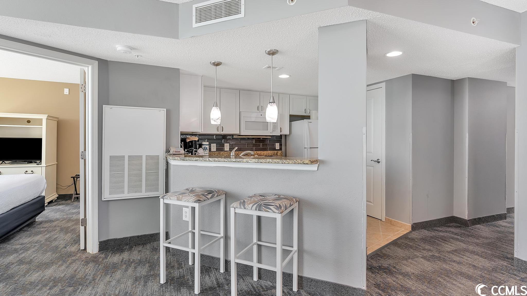 Avista Resort 3 BR/3 BA oceanfront corner unit. Within the last 3 years new beds, new TV's, new vanities with granite countertops, all new furniture, drapes, carpet, stackable W/D and tile backsplash and cabinets in the kitchen. This unit is a rare corner unit and priced to sell. Avista amenities include indoor/outdoor pools, lazy rivers, kiddie pool & hot tubs, onsite fitness center, full-service restaurant, lounge area and bar. Convenient to restaurants, shopping, golf, and entertainment!