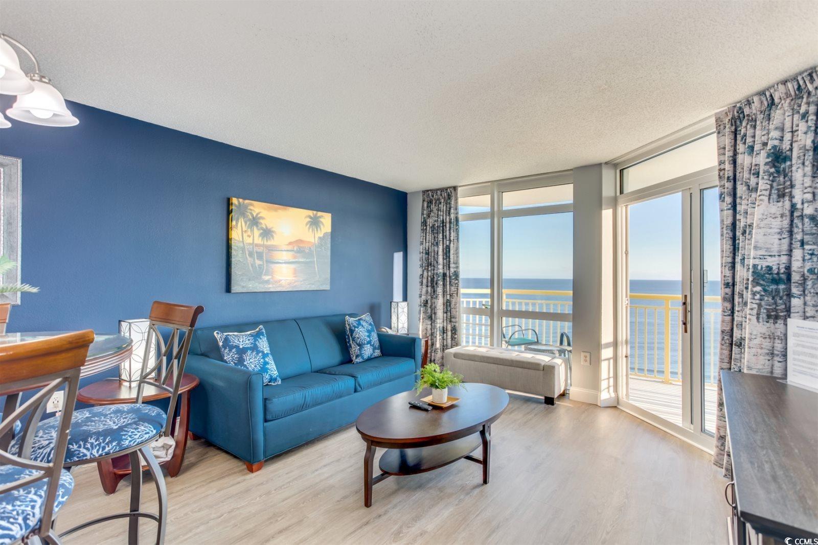 Enjoy breathtaking ocean sunrises from the comfort of the primary bedroom, living room, or your private balcony. From the common area balcony, you and your guests can also take in spectacular sunsets. This updated and well-appointed 2 bedroom, 2 bath oceanfront condo on the 14th floor offers stunning, panoramic views of the coastline. The spacious layout sleeps 10 and is furnished for your utmost enjoyment. Beyond your door, the Baywatch resort provides exceptional amenities, including lazy rivers, pools, Jacuzzis, on-site dining, a tiki bar, and more. All utilities, cable, and internet are included in the HOA fees. Discover the ultimate beach lifestyle you've been missing. Owner is a Licensed SC Realtor.