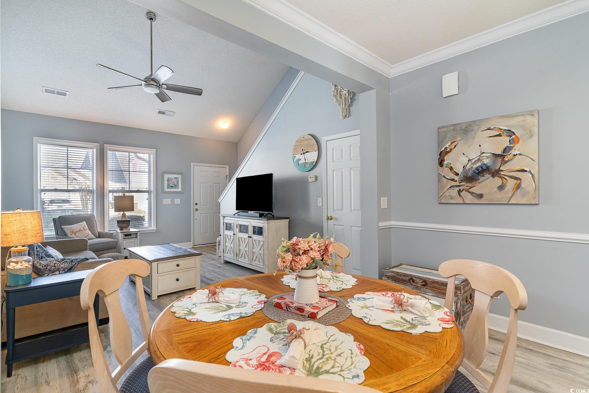 Walk to TPC from this delightful 3-bedroom, 3.5 bathroom home in the sought-after Prince Creek area of Murrells Inlet! This charming property boasts a fantastic layout, offering a ground-level primary suite for tranquility and 2 spacious bedrooms upstairs, ensuring comfortable separation of space. Recent renovations include fresh paint, stunning LVT flooring, new ceiling fans throughout creating a modern and inviting atmosphere. Not to mention a brand new roof that was installed in November of 2023. Beyond the inviting interior, this peaceful and well-insulated home provides the added benefits of: A tranquil sunroom - a perfect spot to soak up the sun and enjoy your morning coffee, A sparkling community pool - ideal for refreshing dips on hot summer days, private garage - perfect for parking your car and storing all your beach gear. This 'Golfers Haven"" is in fantastic condition & the location is highly coveted.Don't miss out on this opportunity to own your slice of paradise! Contact me or your real estate agent today!